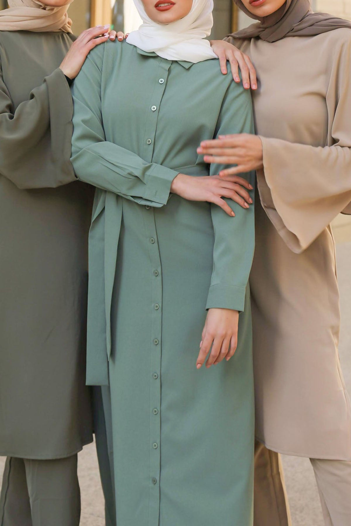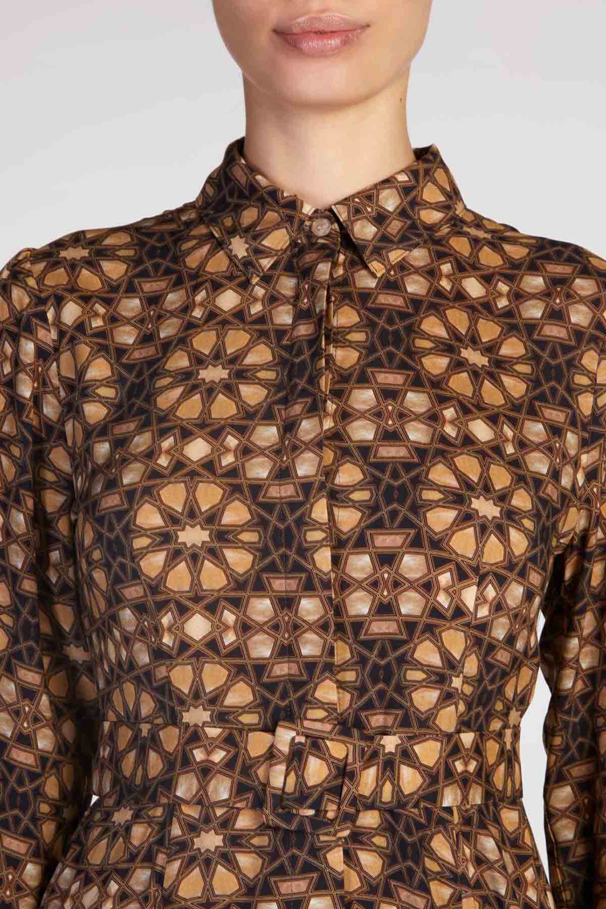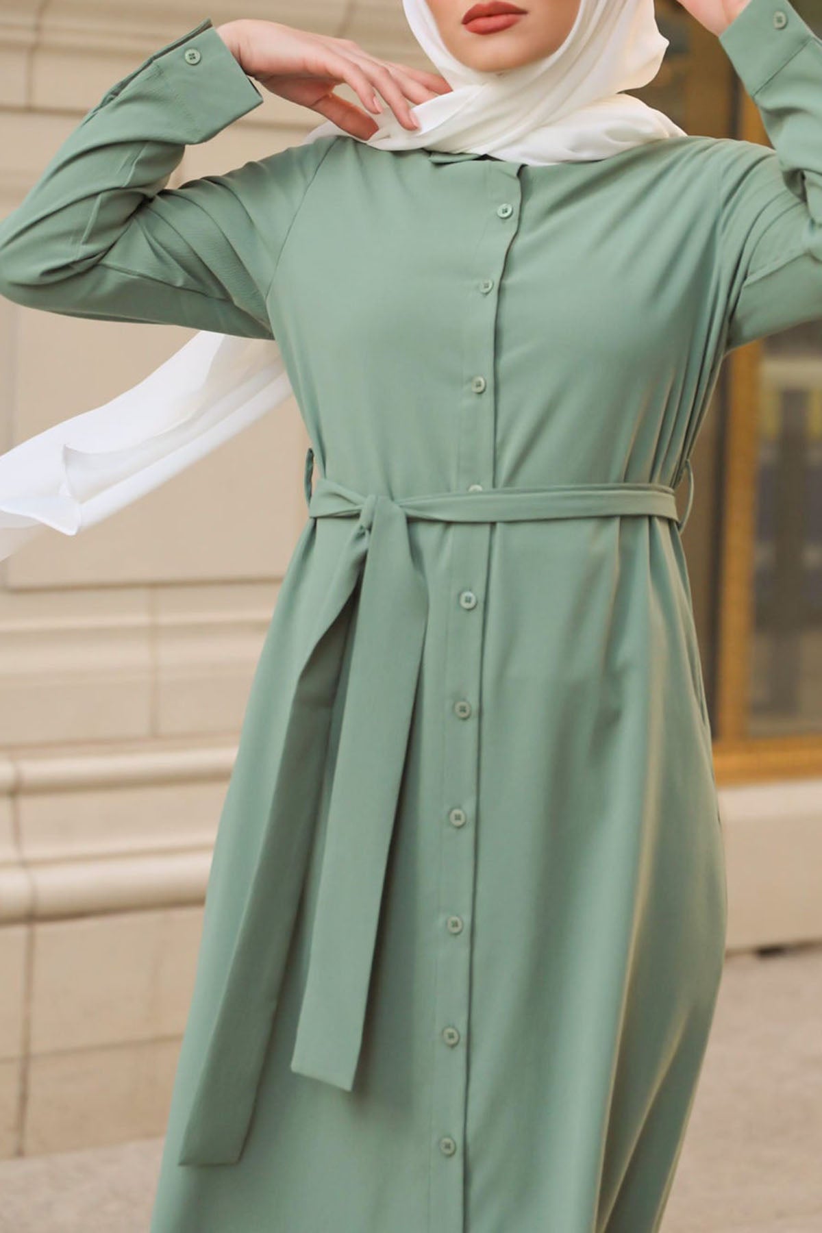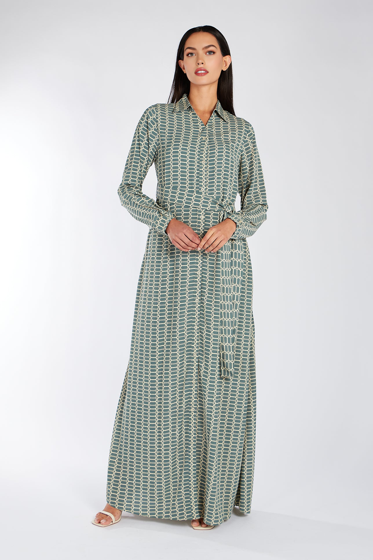 Lapel Collar Flap Pocket Belted Shirt Dress