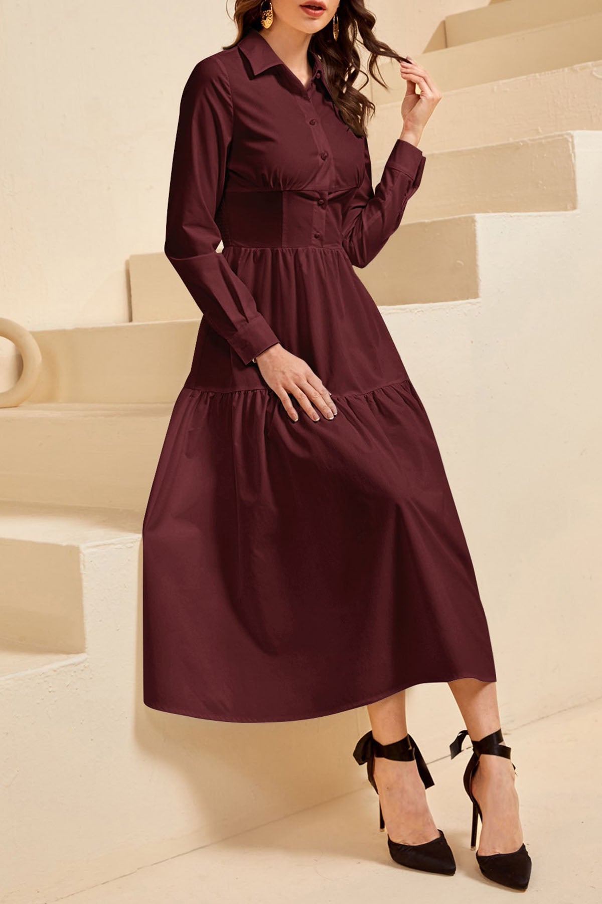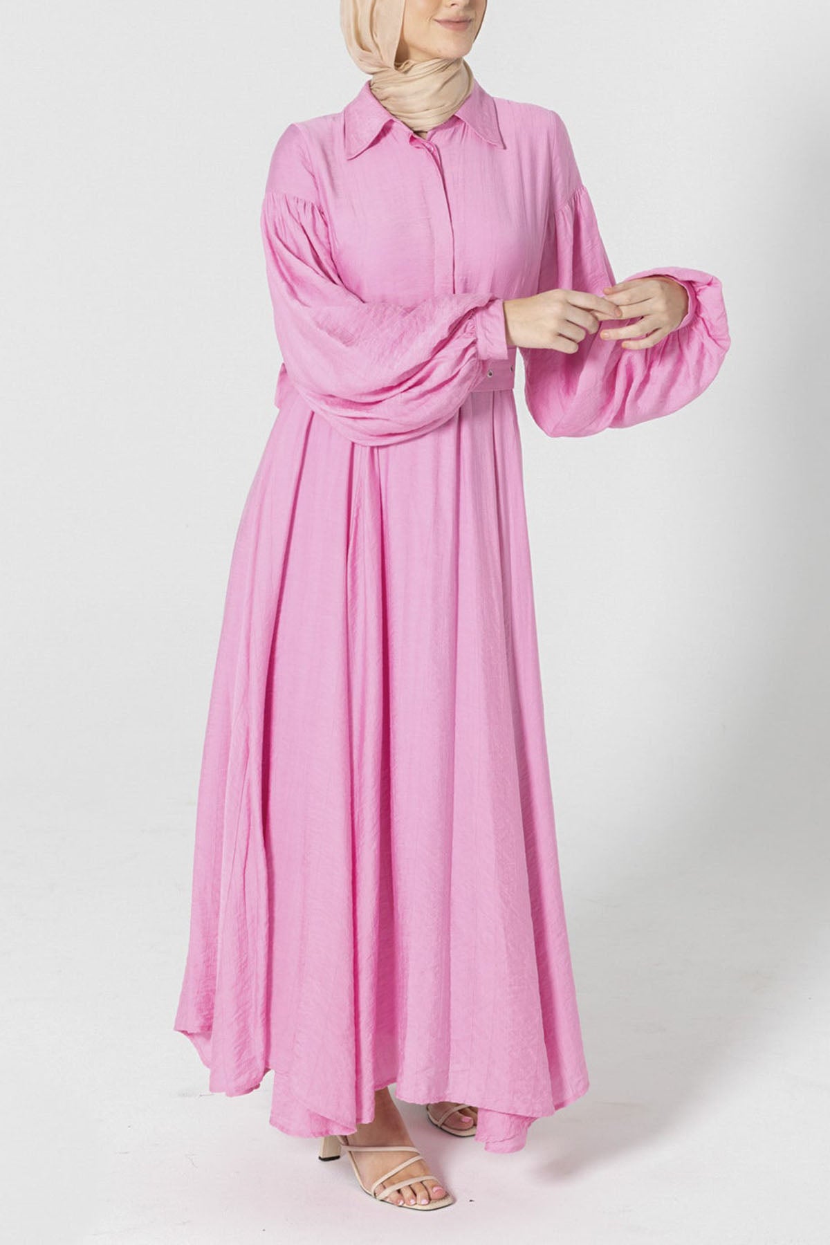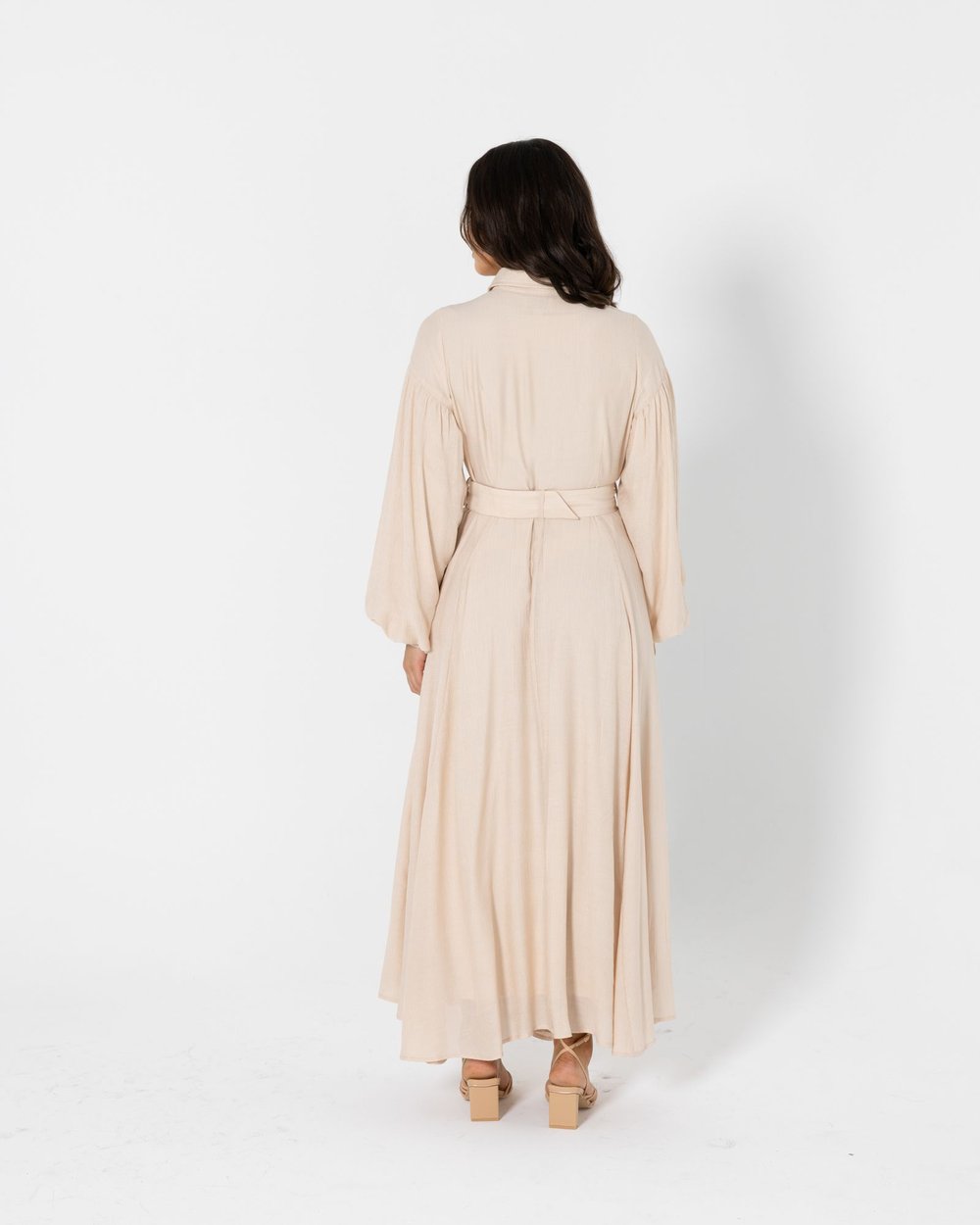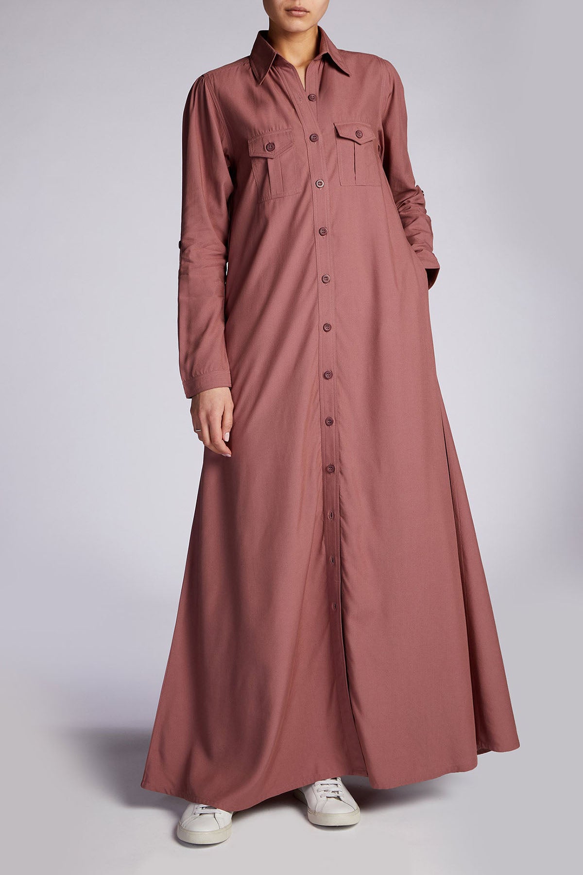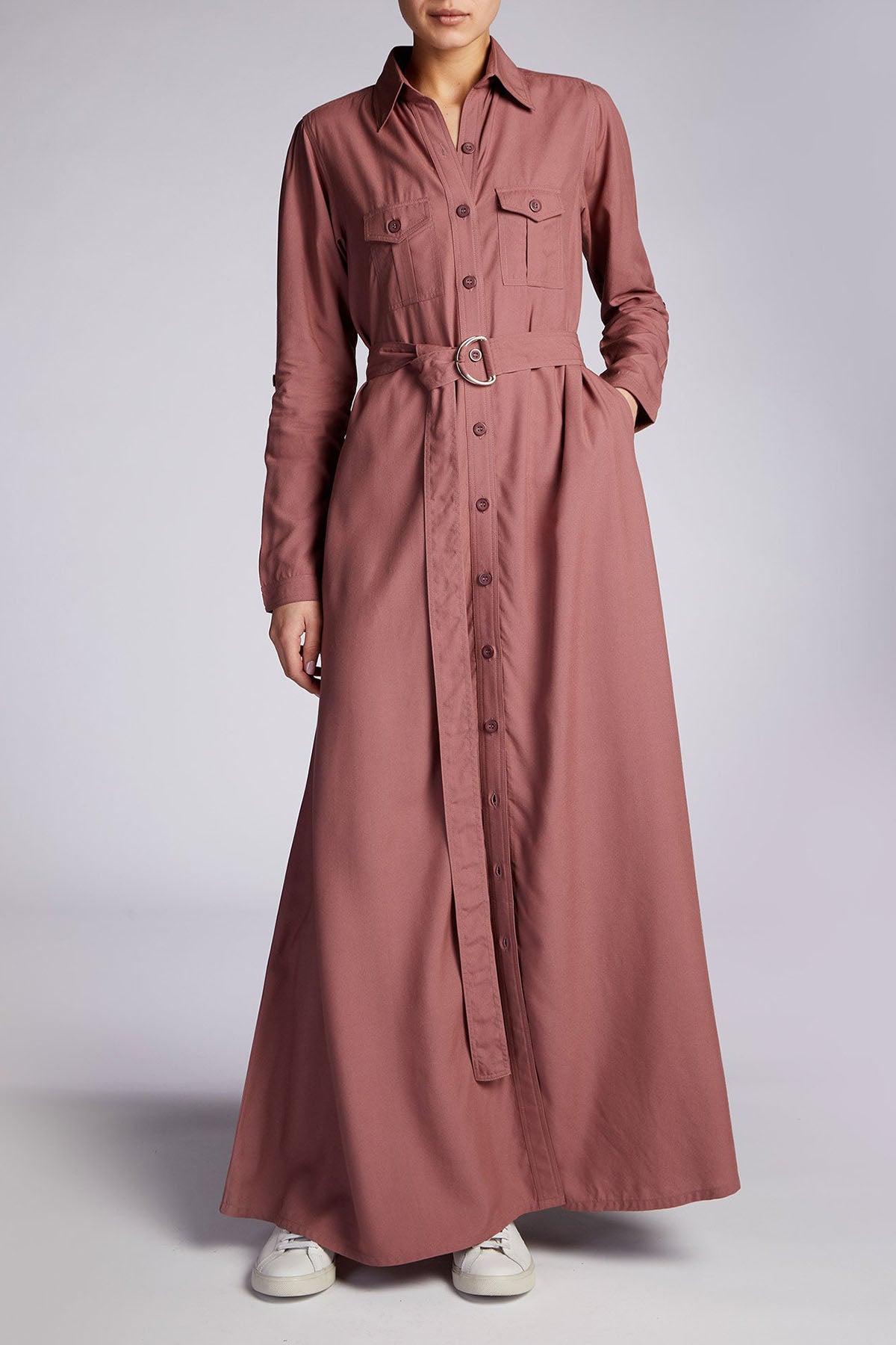 Karima Flowy Linen Maxi Shirt Dress - Rosewood