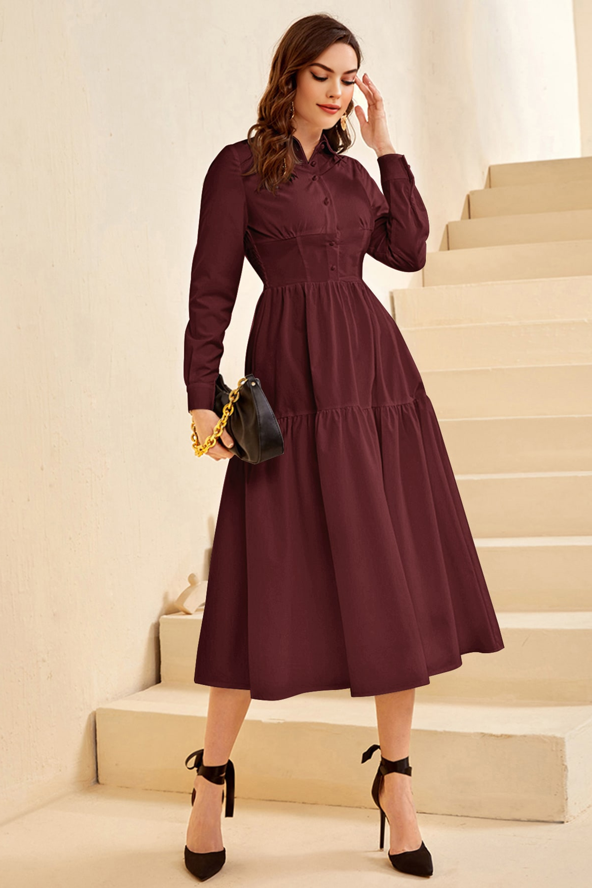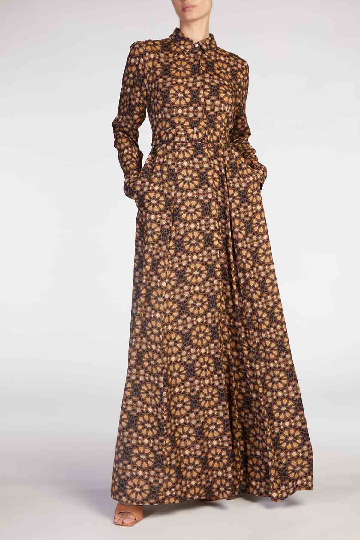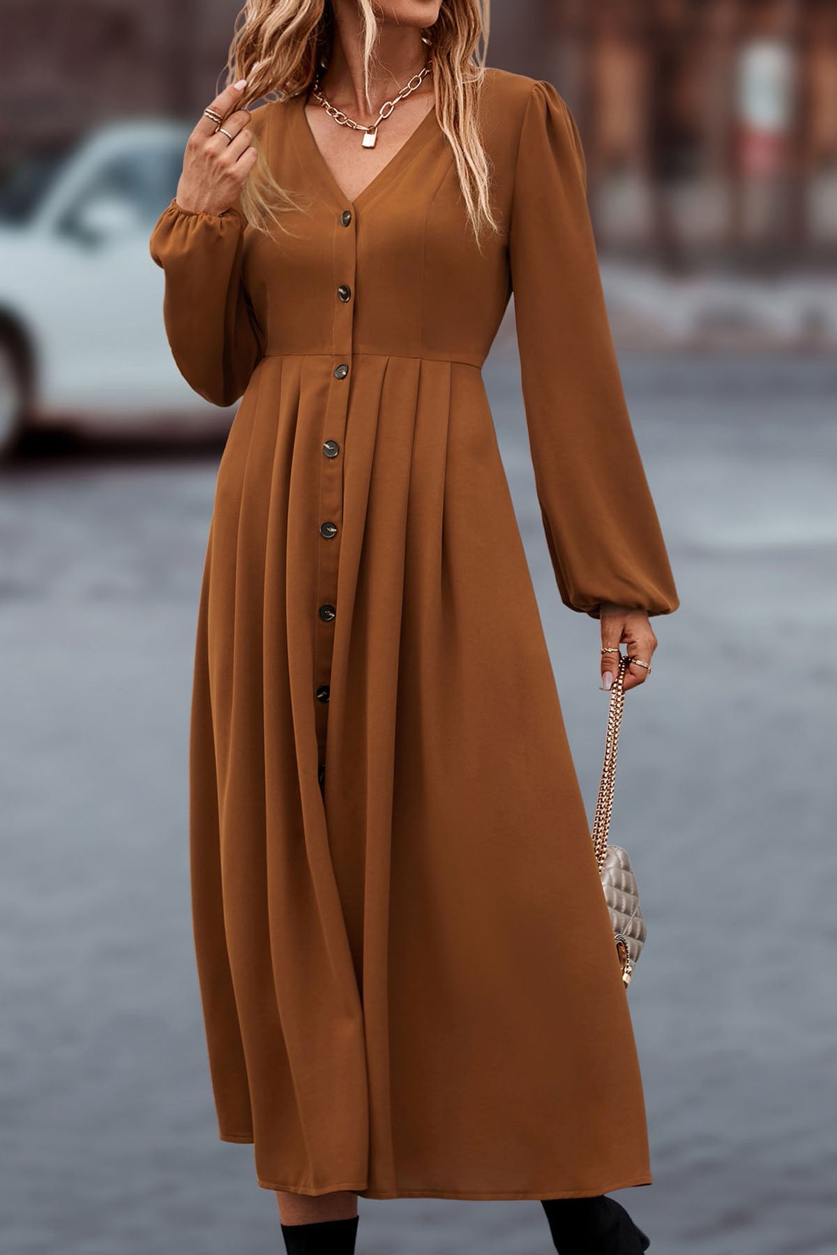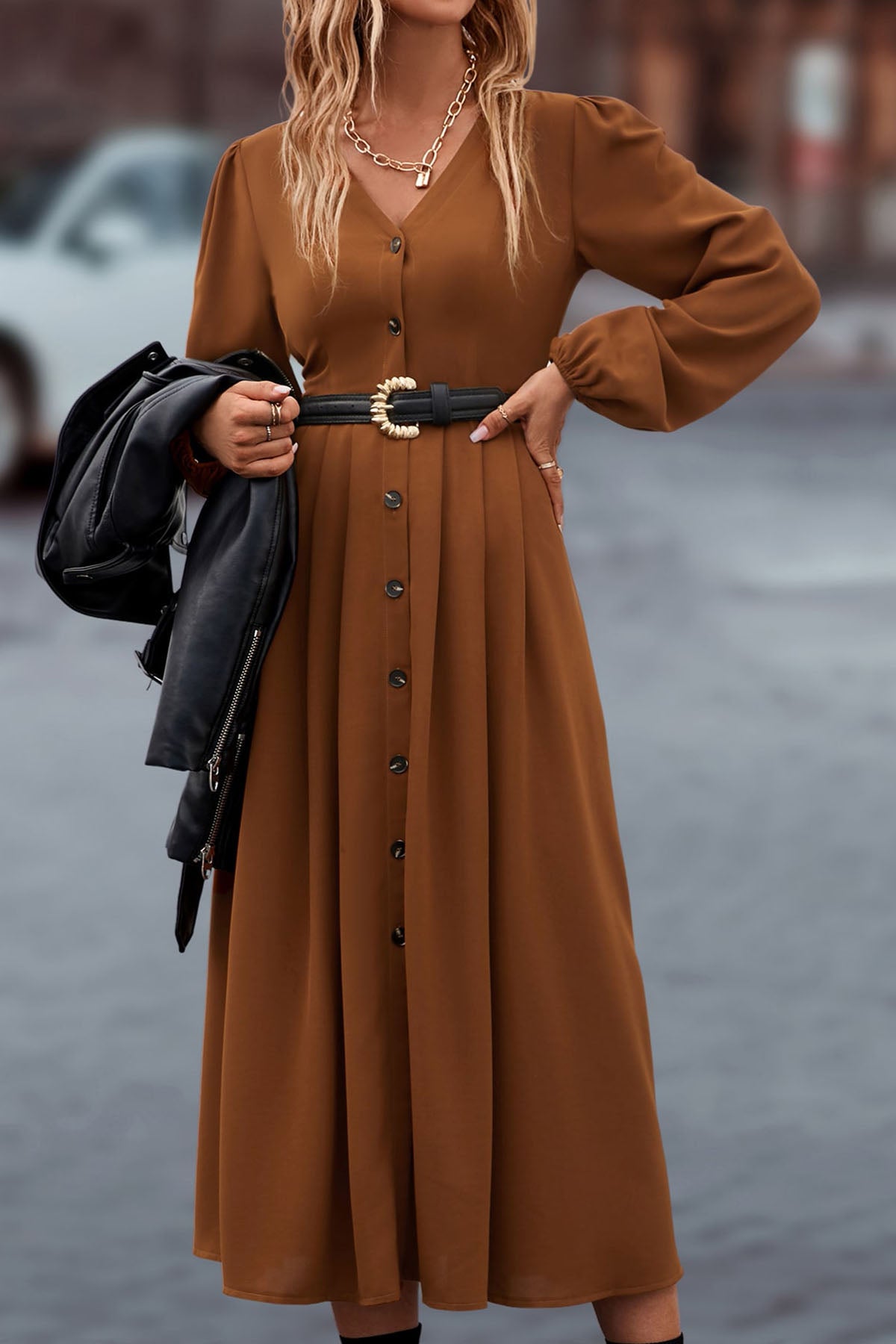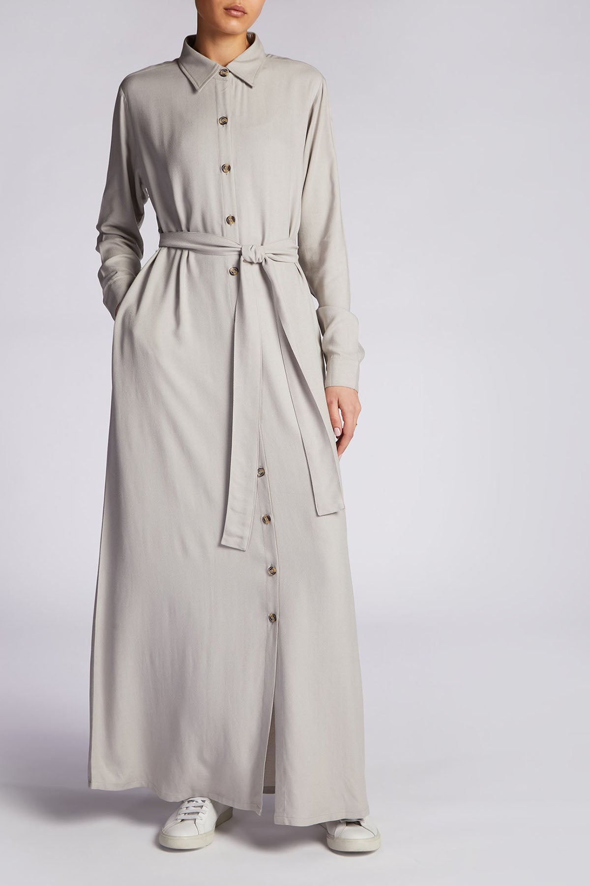 Karima Flowy Linen Maxi Shirt Dress - Rosewood