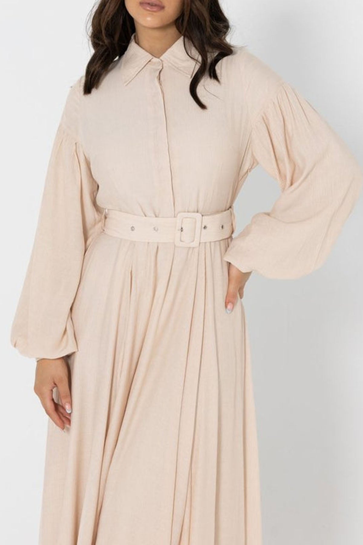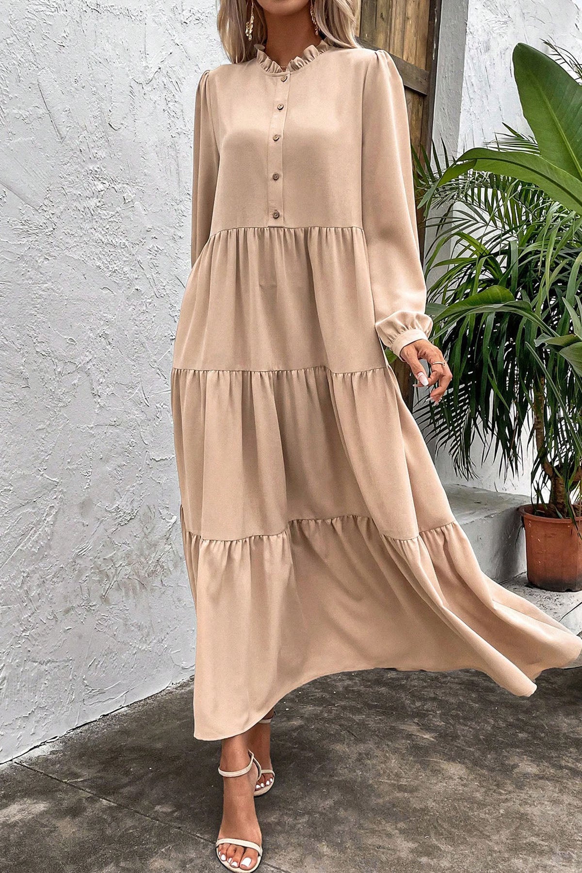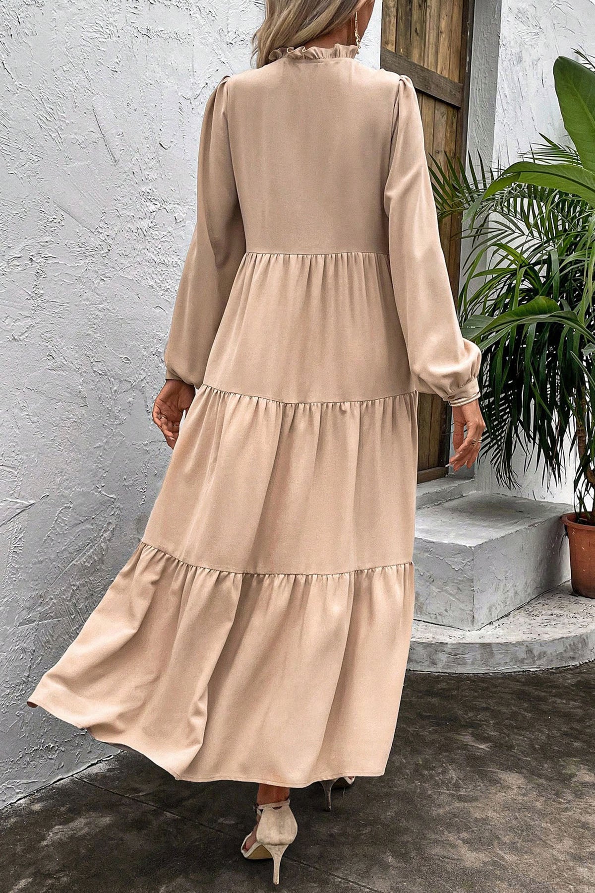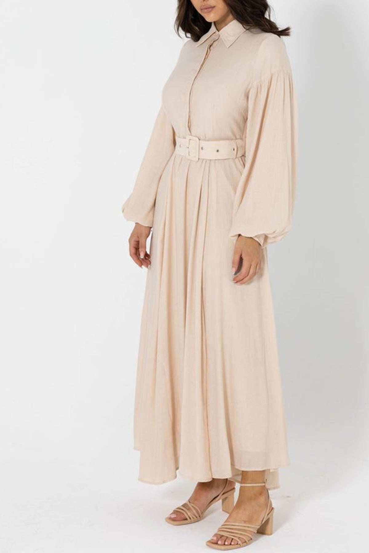 'Loyal" Beige Crinkle Flowy Maxi Dress
