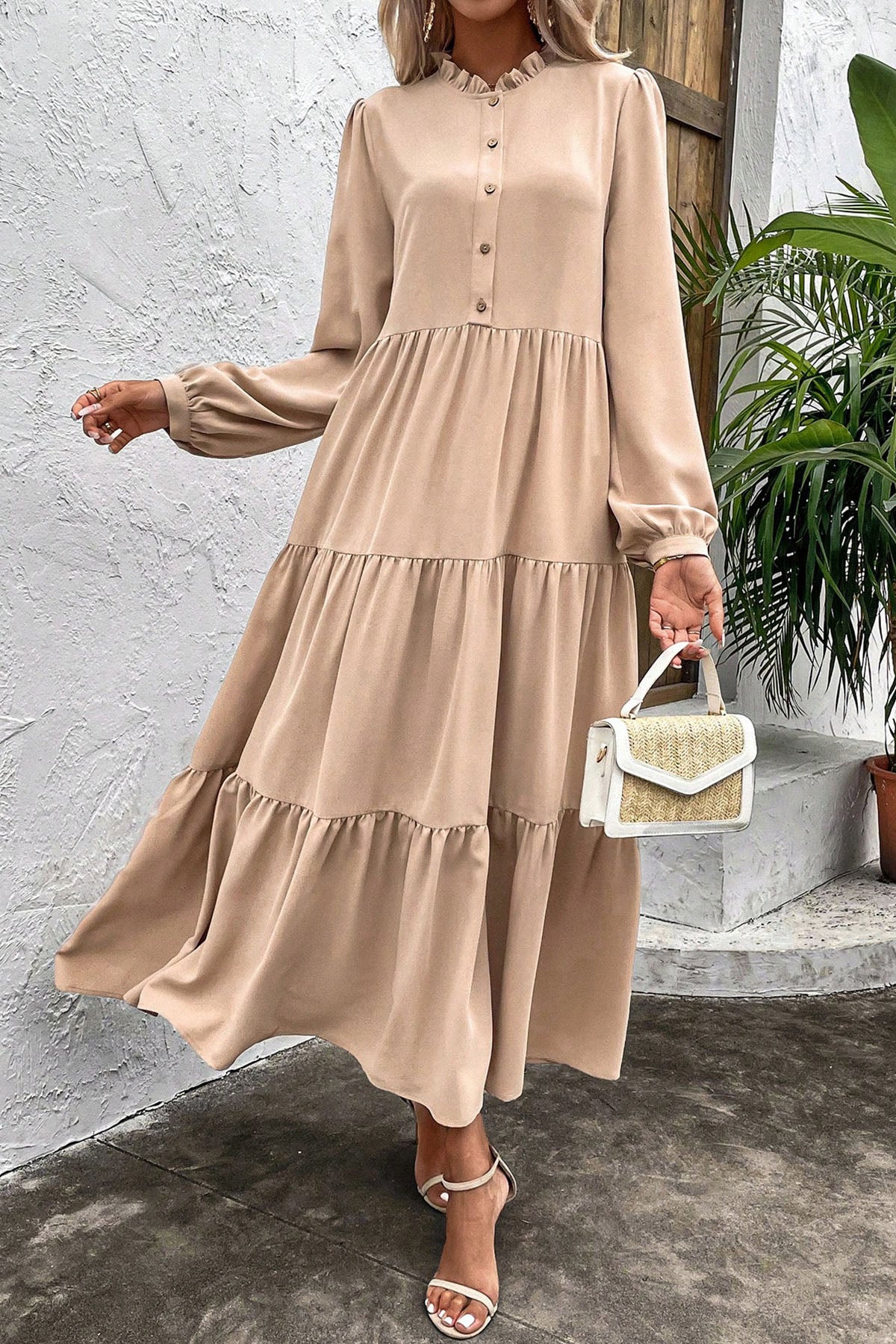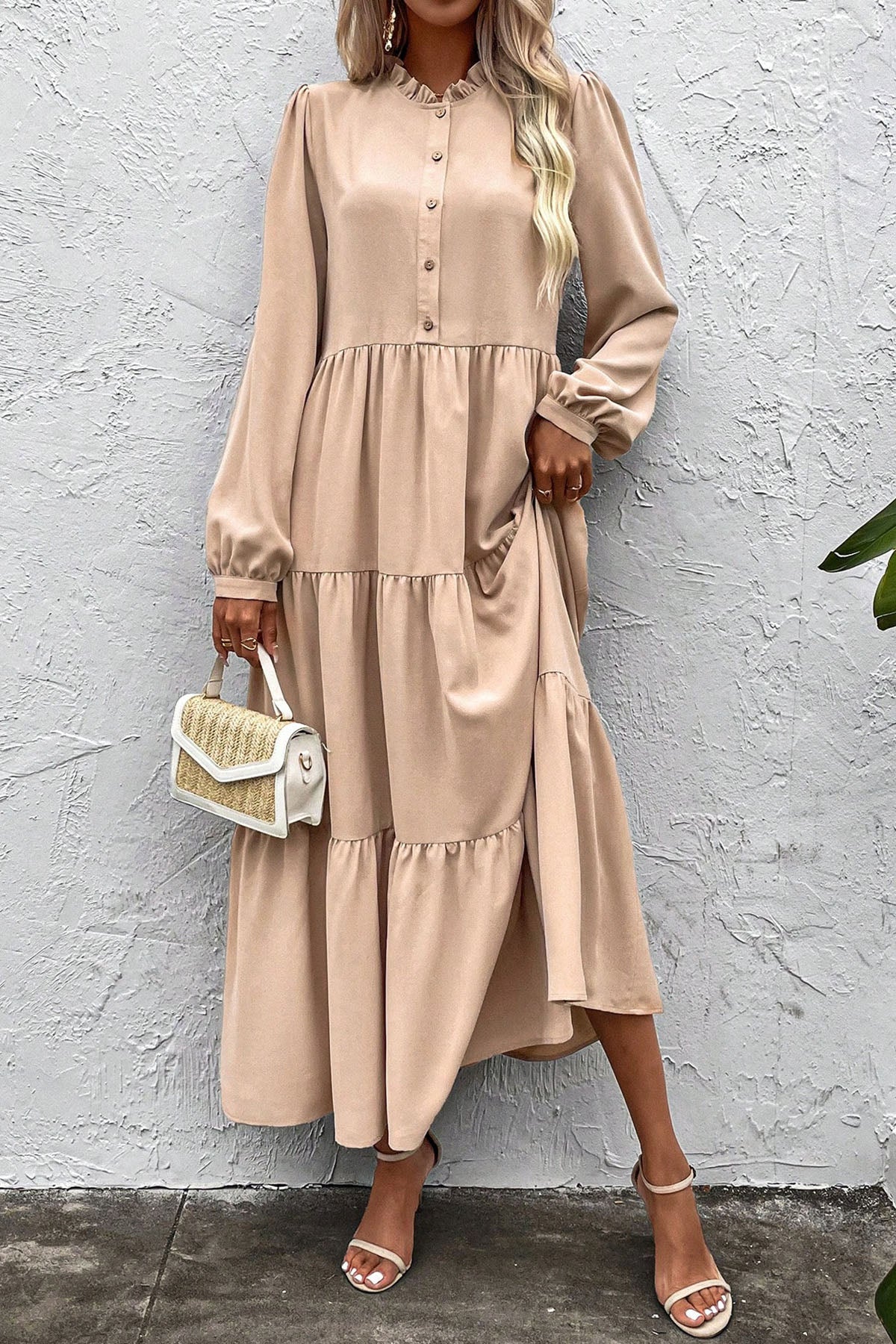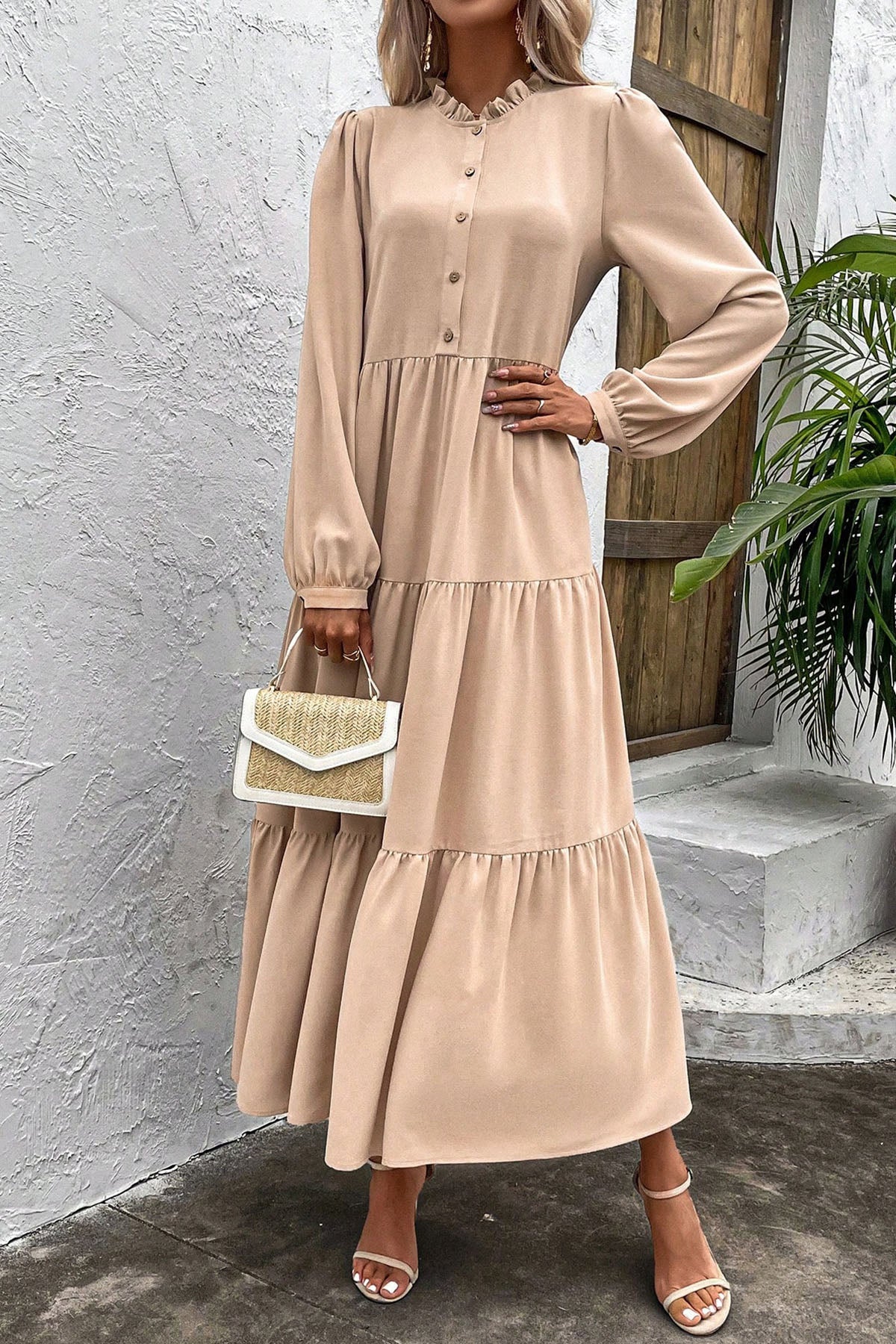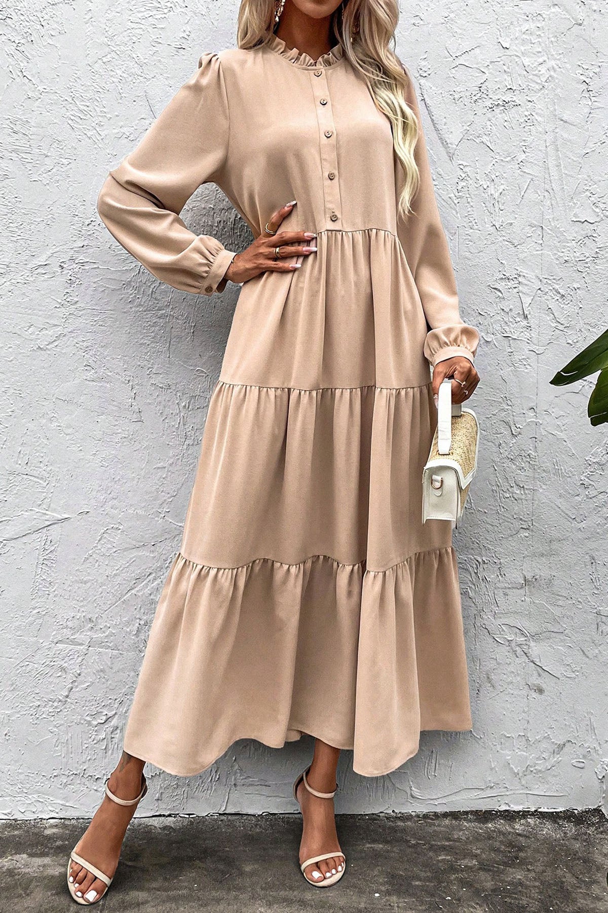 'Loyal" Beige Crinkle Flowy Maxi Dress