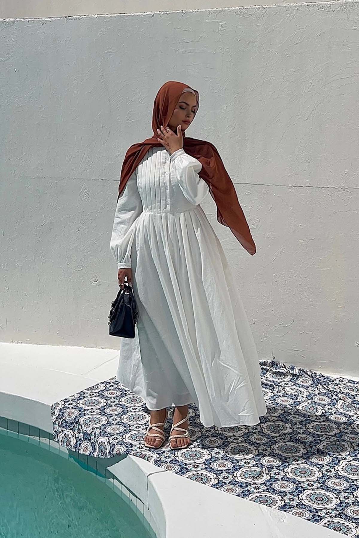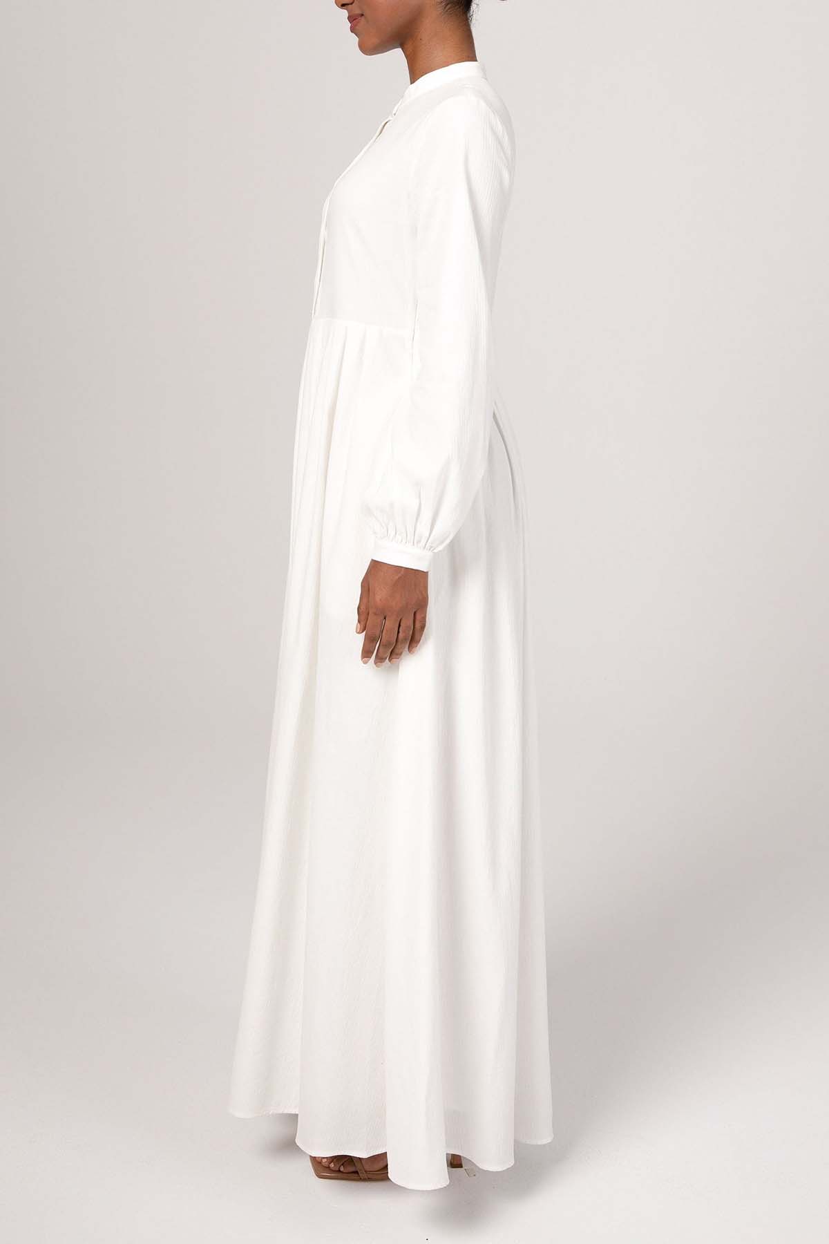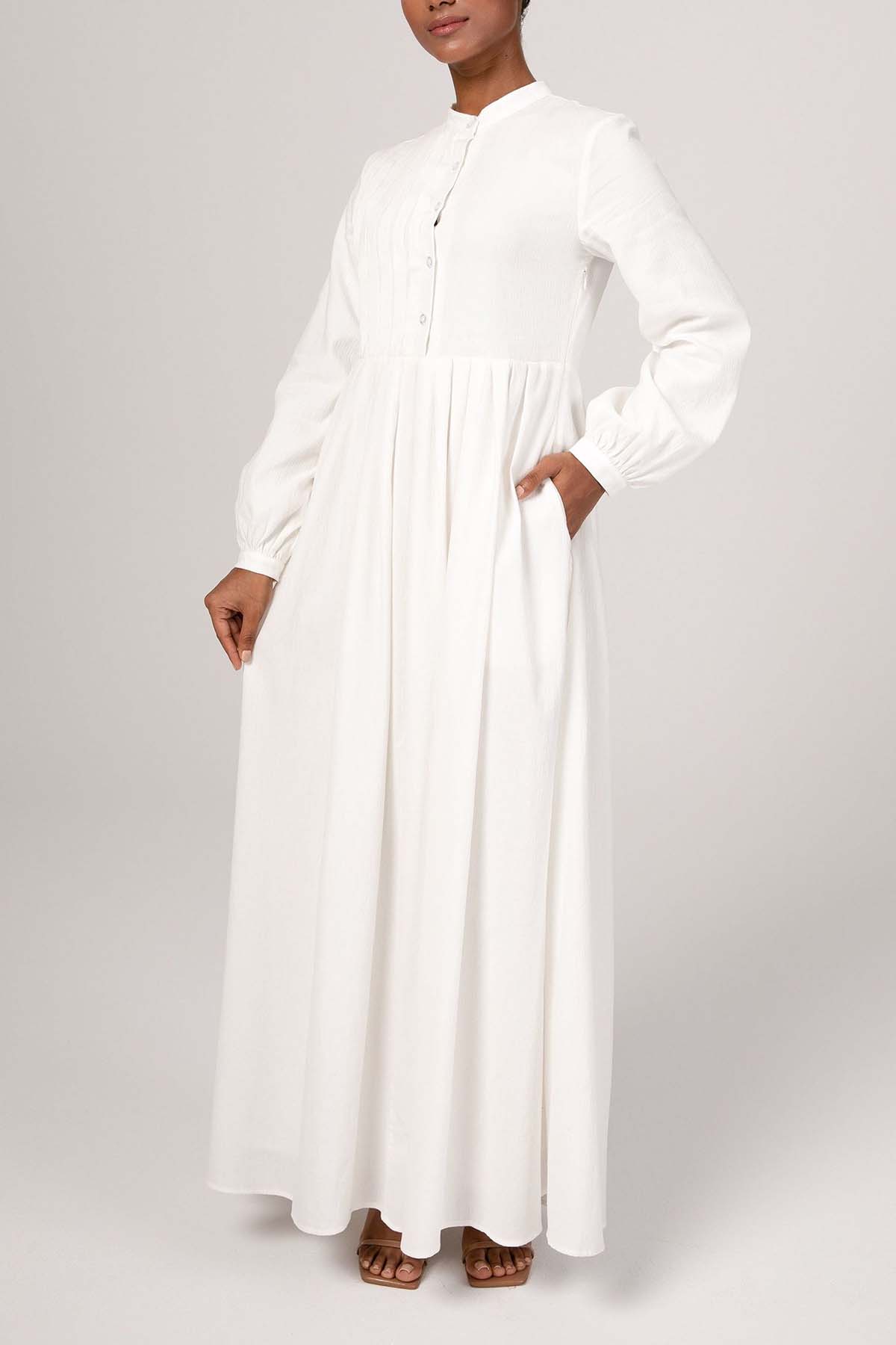 Mona Asymmetric Pleat Front Maxi Dress - White