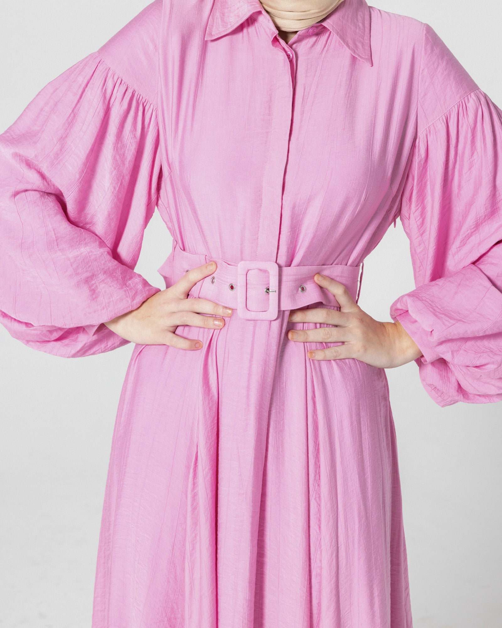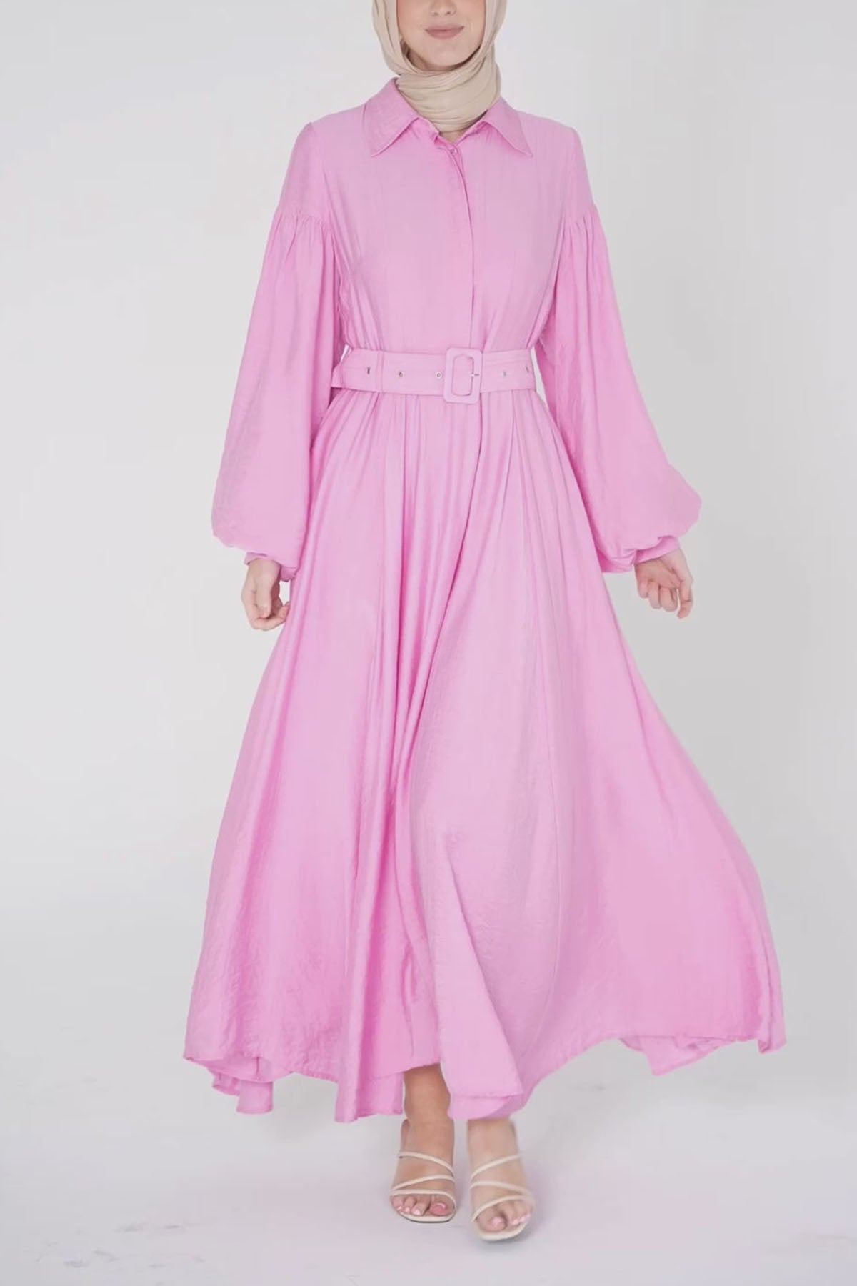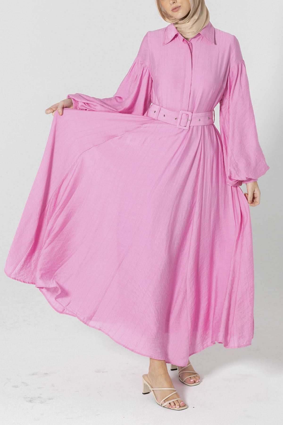 'Loyal" Pink Crinkle Flowy Maxi Dress