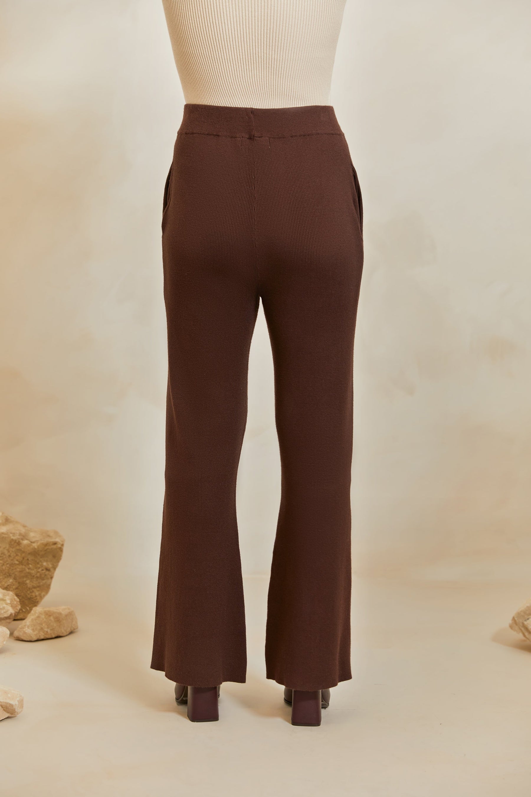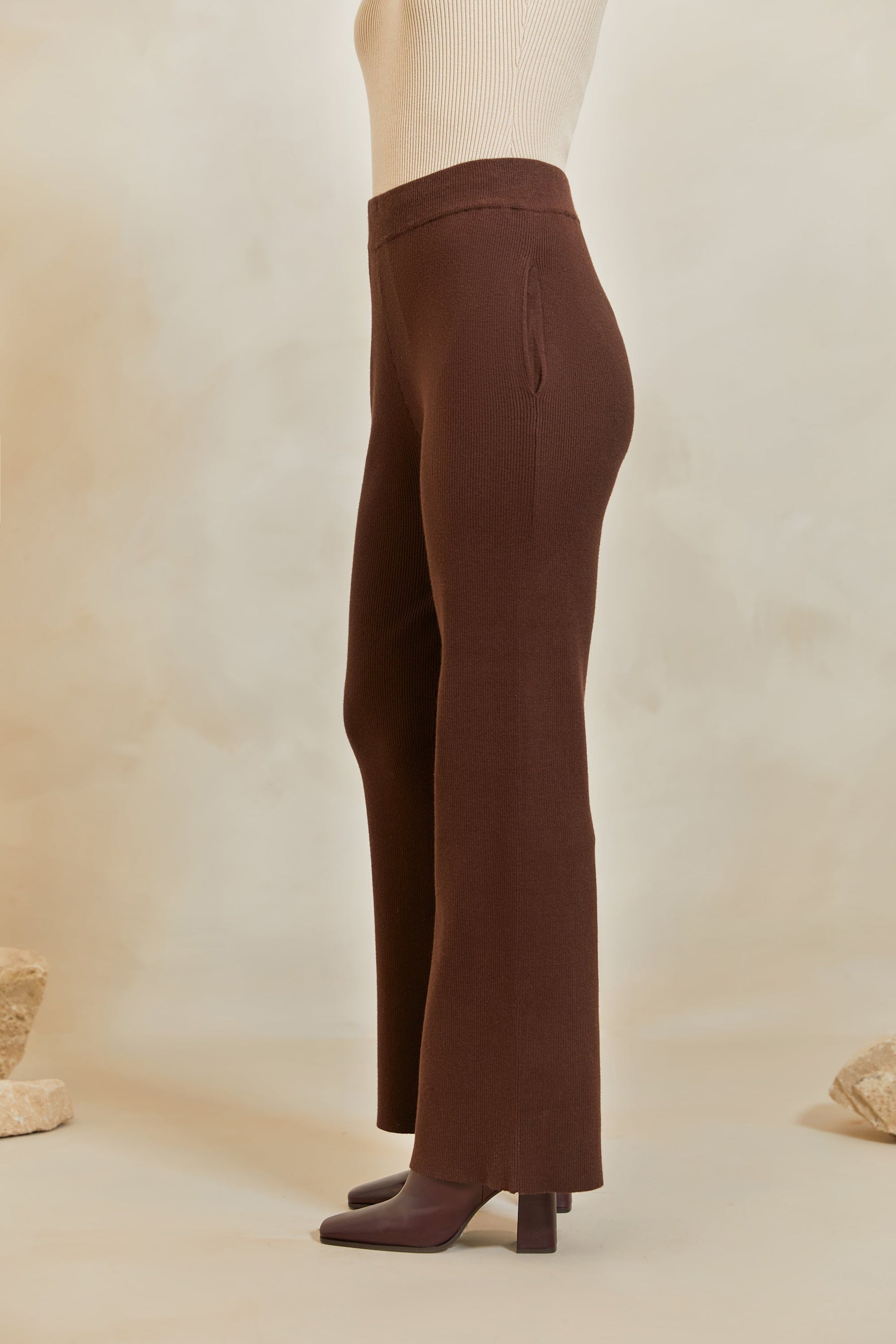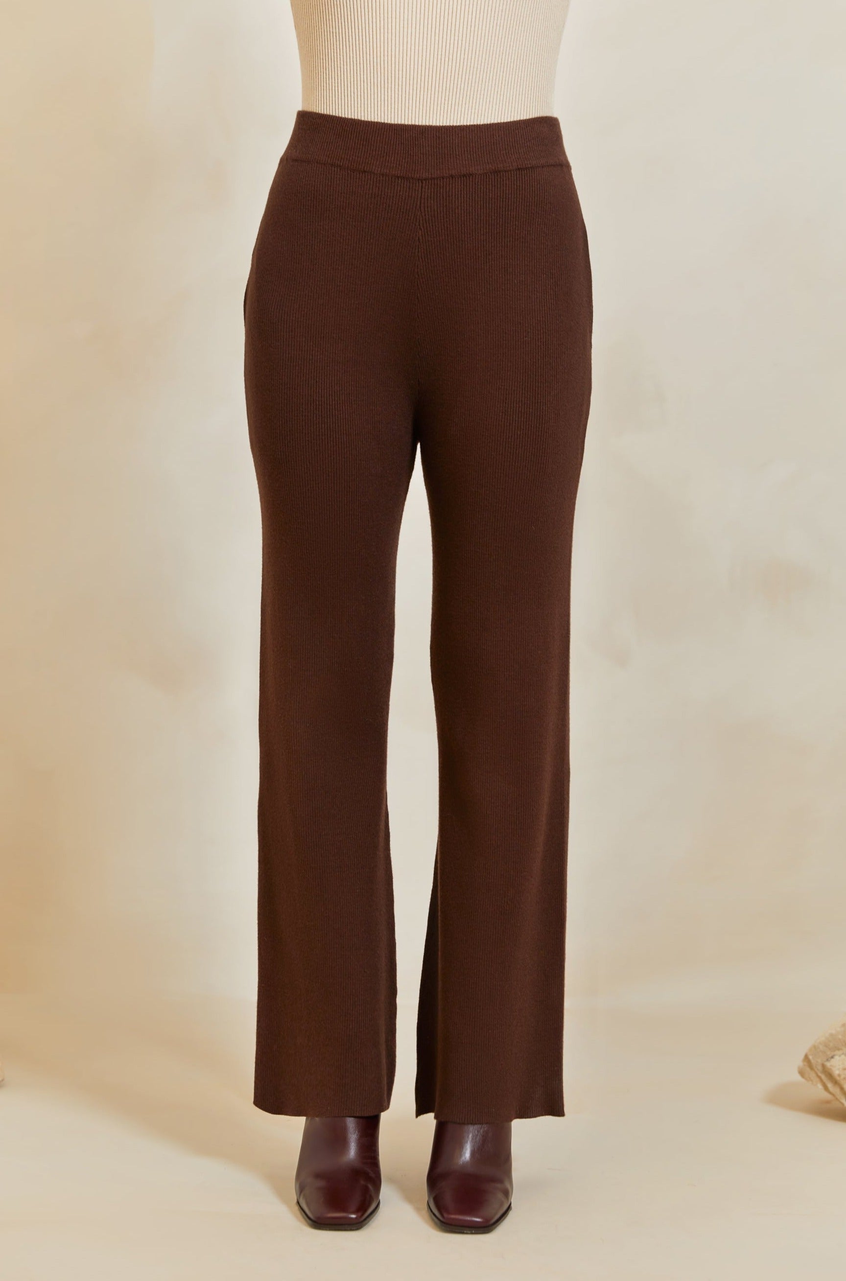 High Rise Knit Pants - Dark Oak