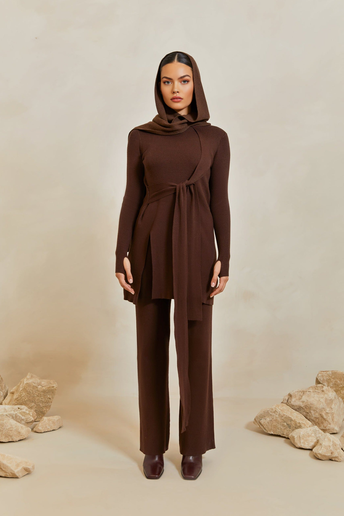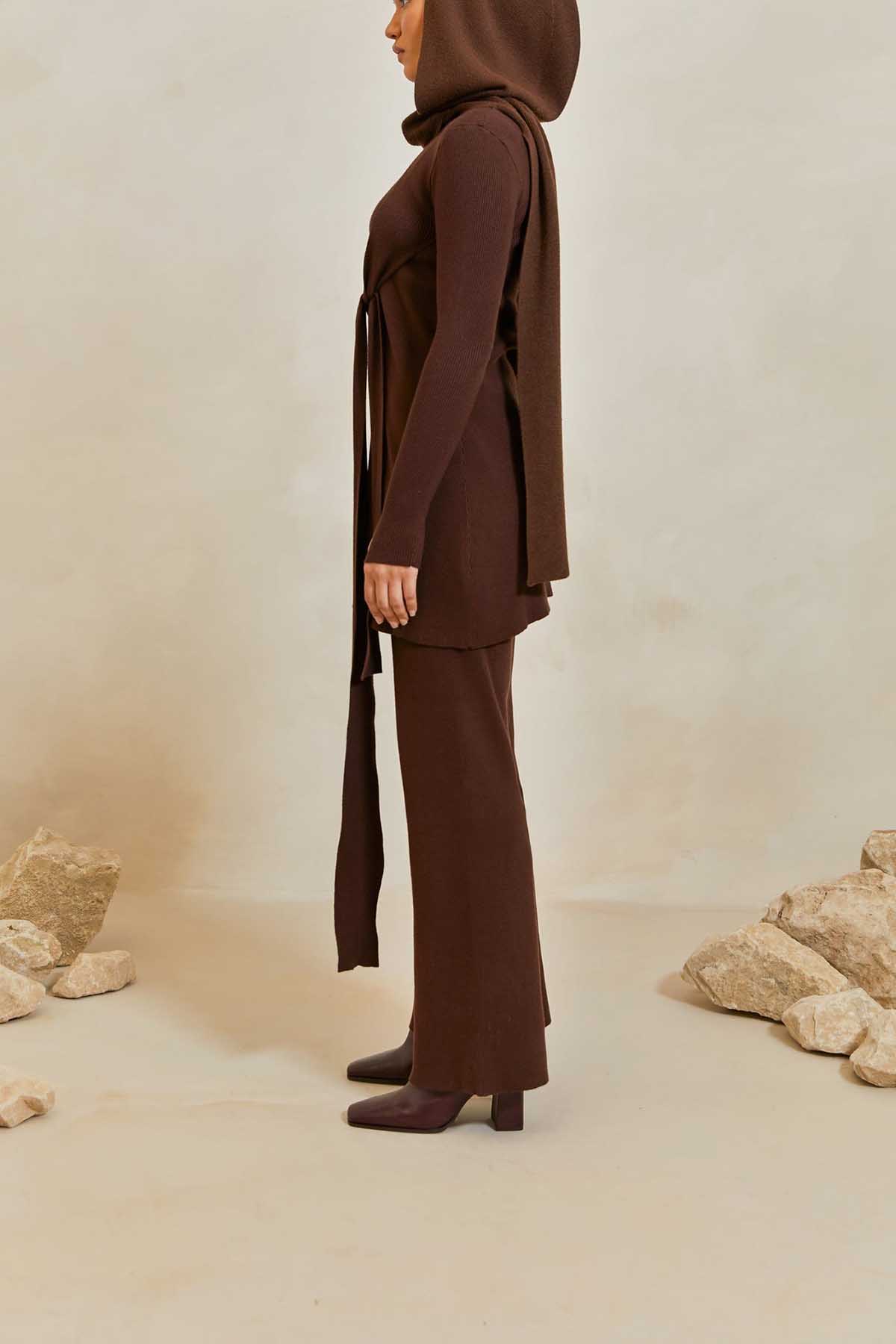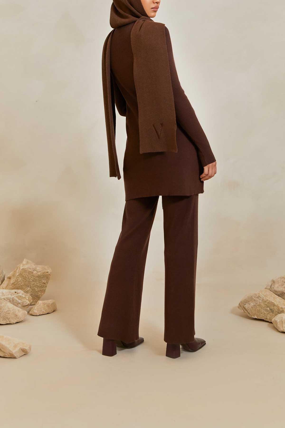 High Rise Knit Pants - Dark Oak