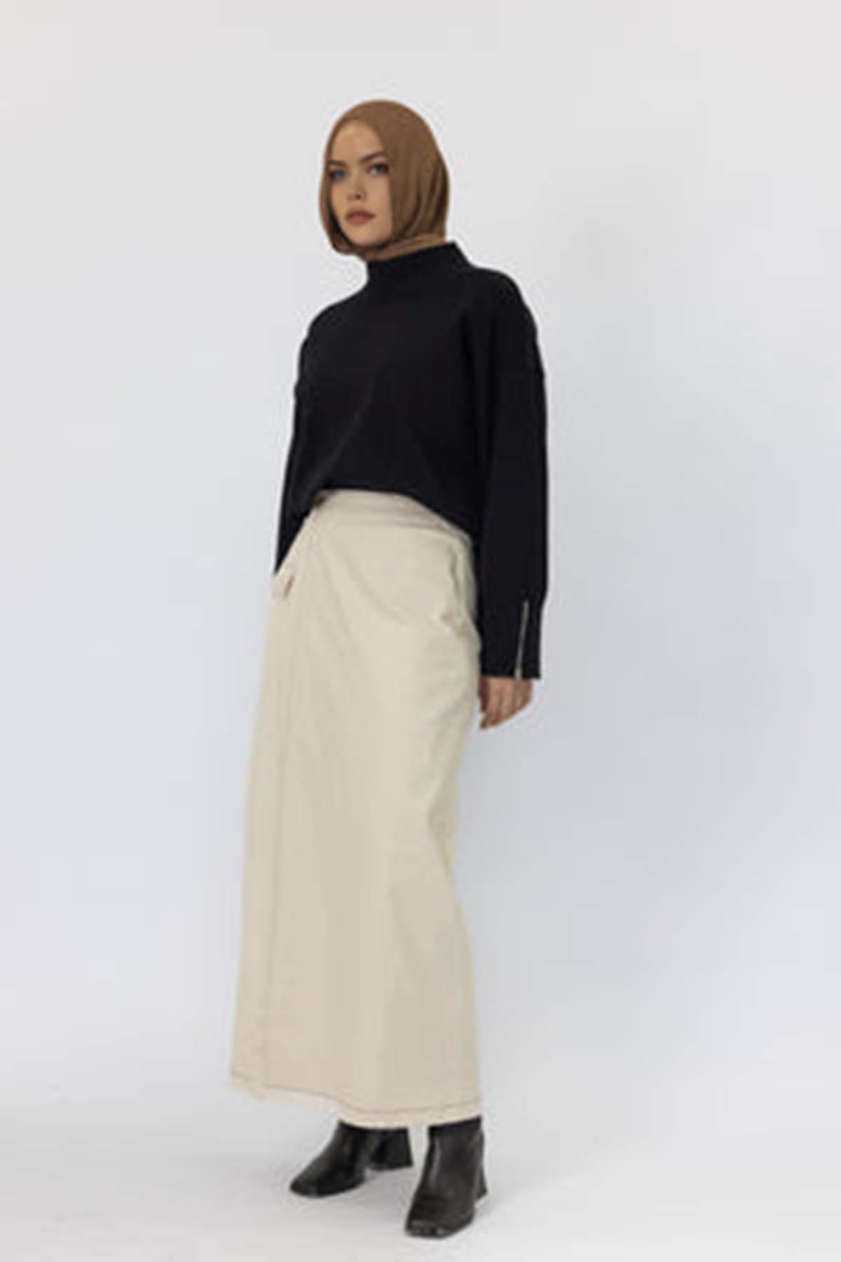 Cream 'Karina' Soft Denim Wrap Skirt
