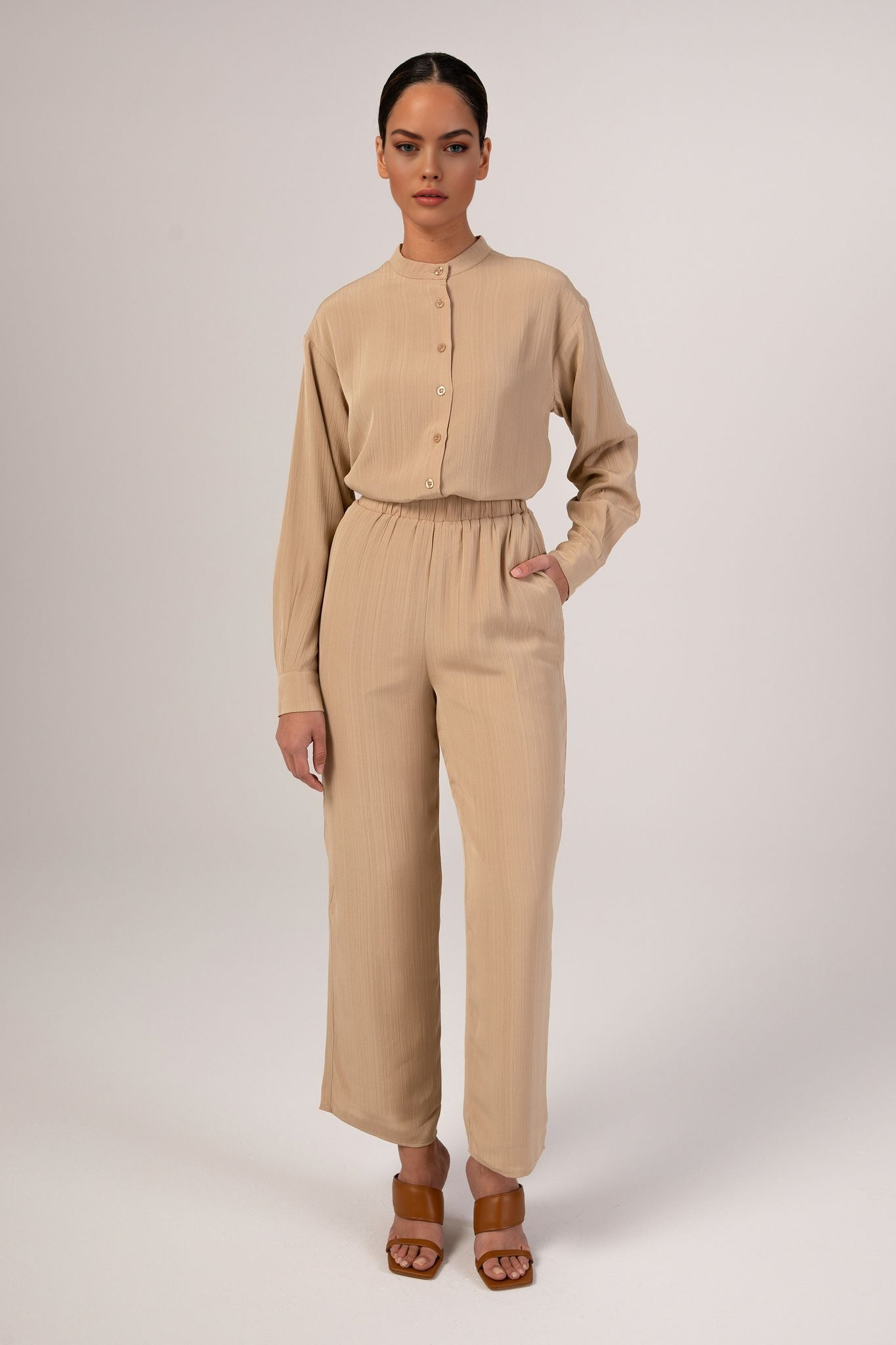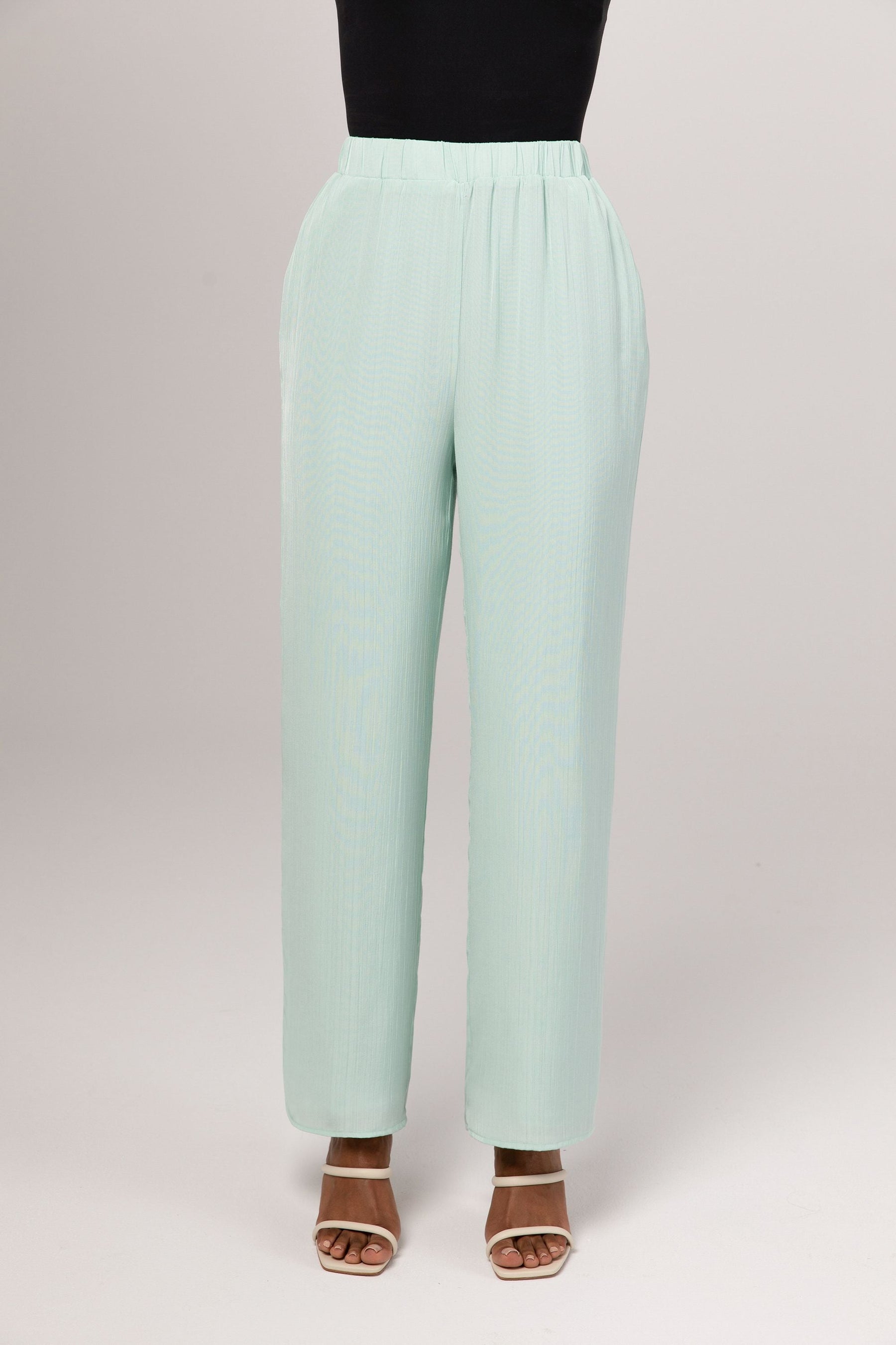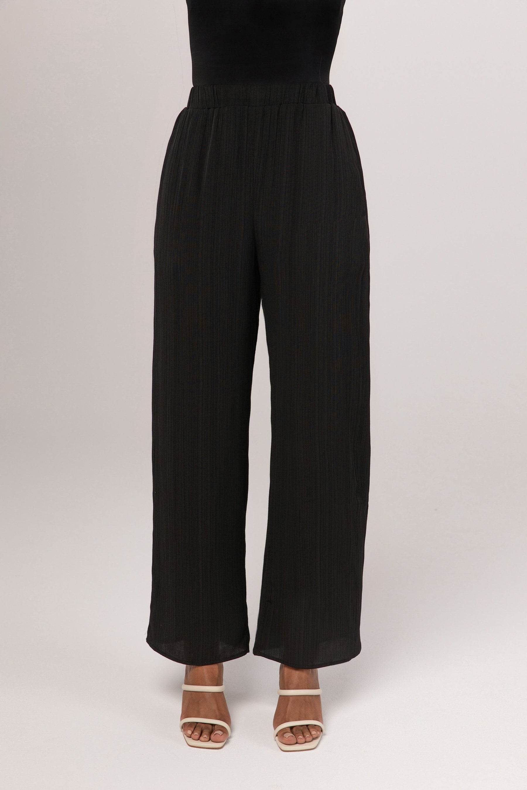 The Nashwa pants features a breathable rayon fabric, comfortable elastic waistband and modest wide leg.