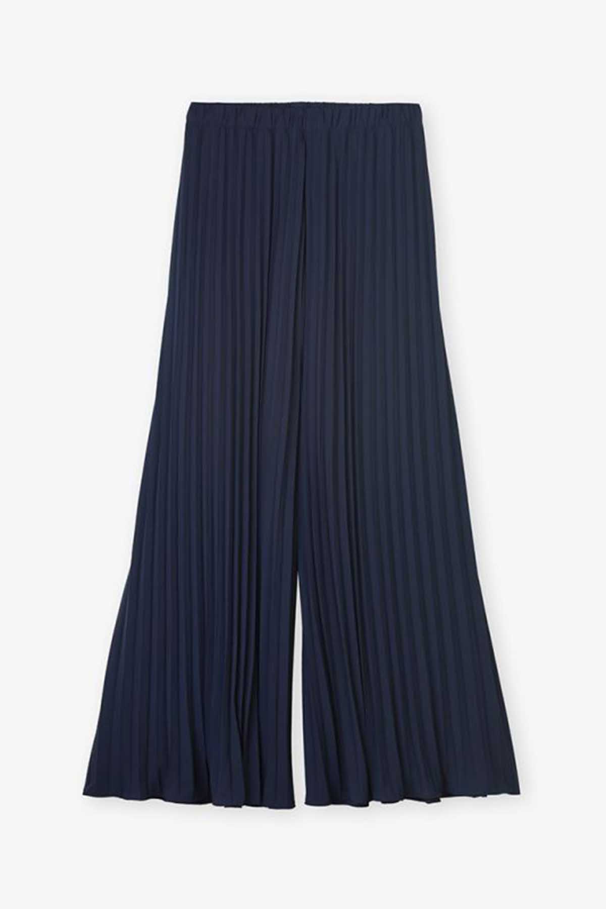 Chic Solid Pleated Trouser. It features High Waist and Wide Legs. Style: Trouser Occasion: Casual, Evening Design: Solid, High Waist, Pleated, Attached Lining, Wide Legs Closure: Elasticated Waist Length: Ankle-Length Material:100% Polyester, Lining: 100% Polyester