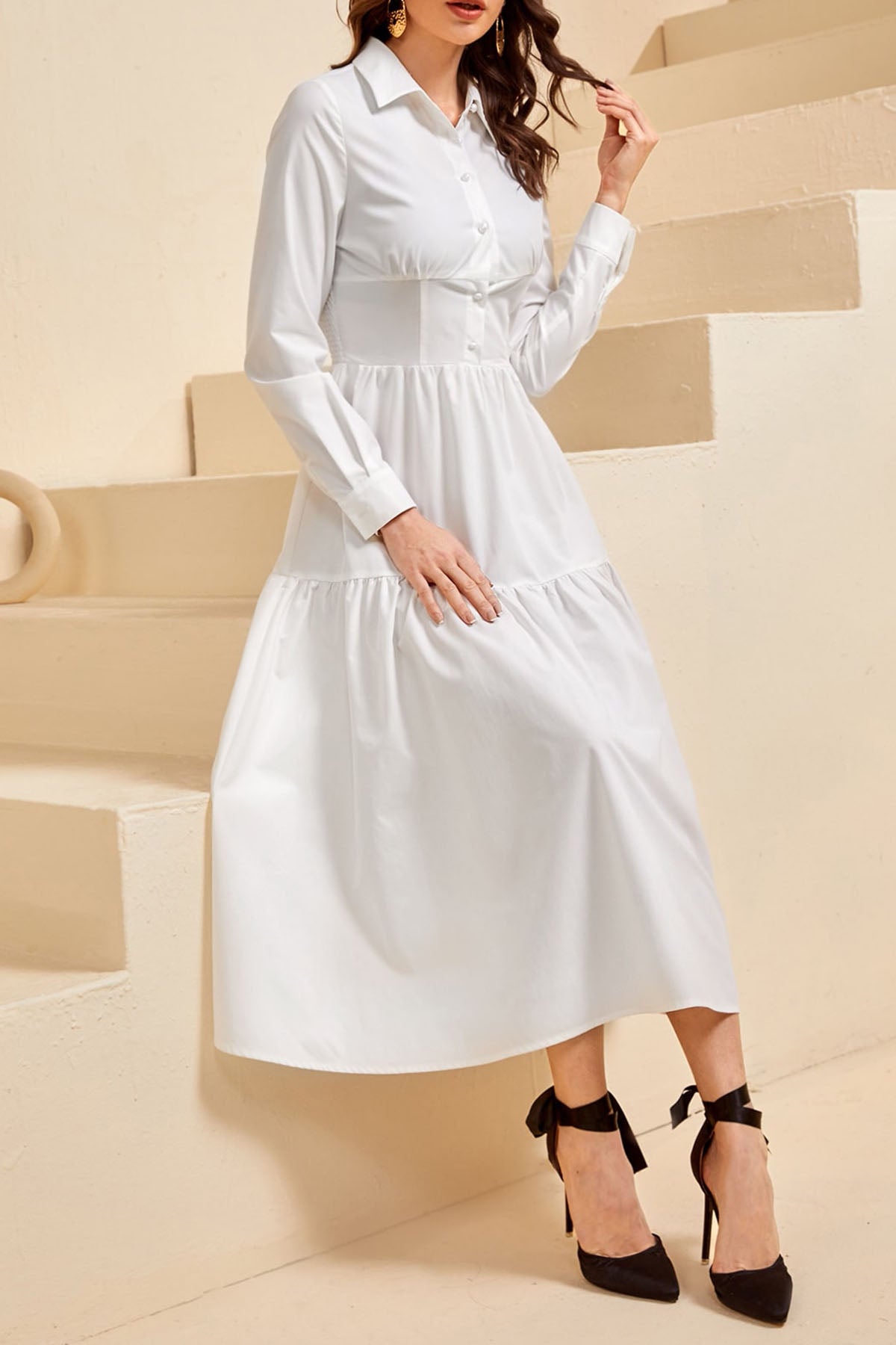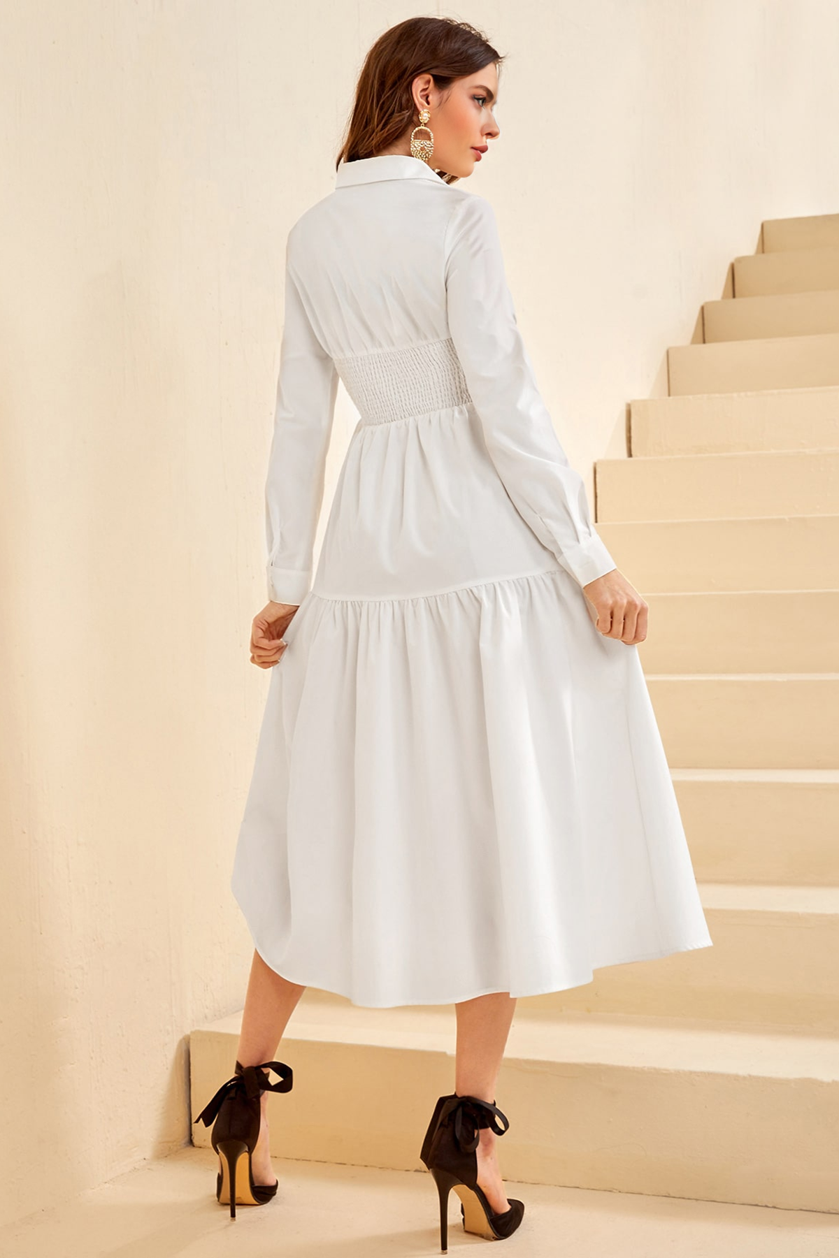 Modely Shirred Ruffle Hem Shirt Dress
