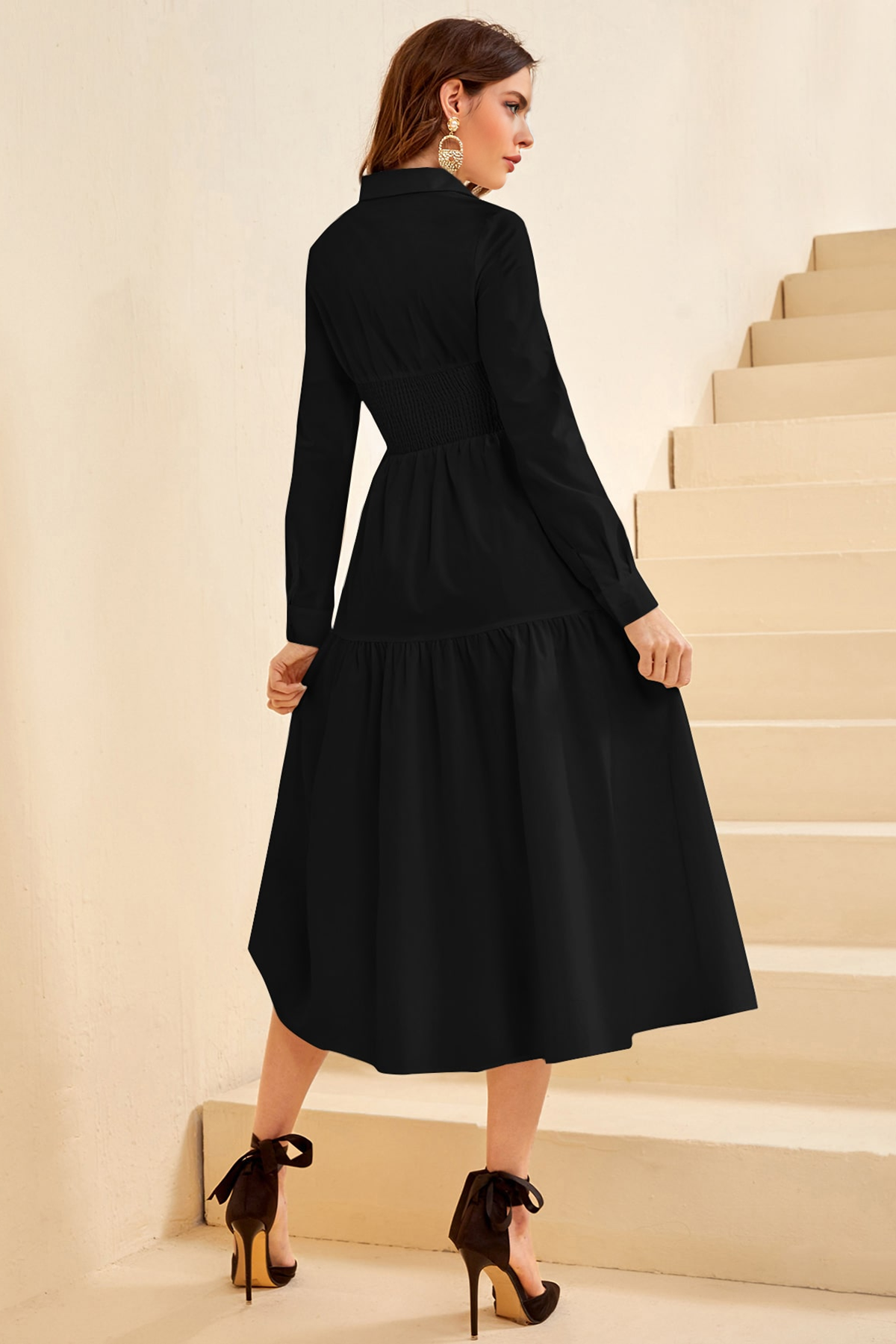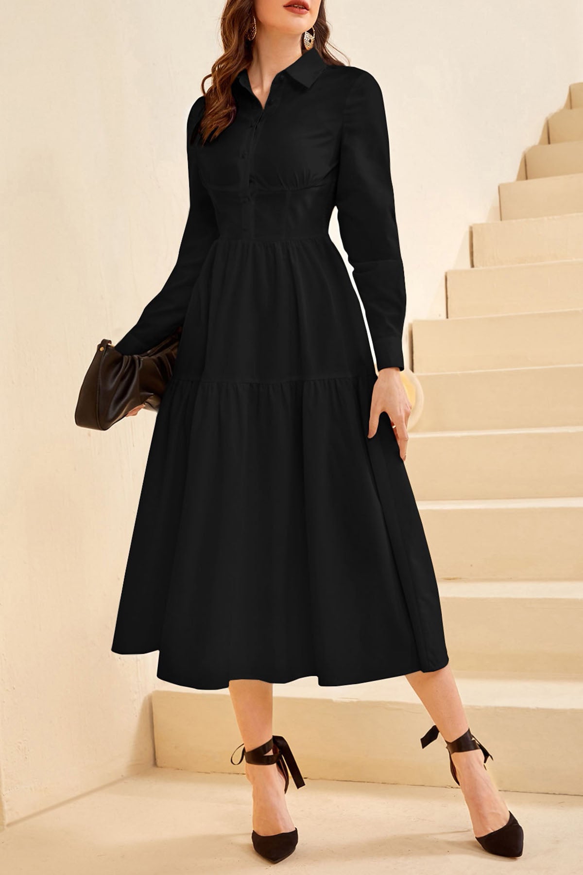 Button Down Maxi Black Dress