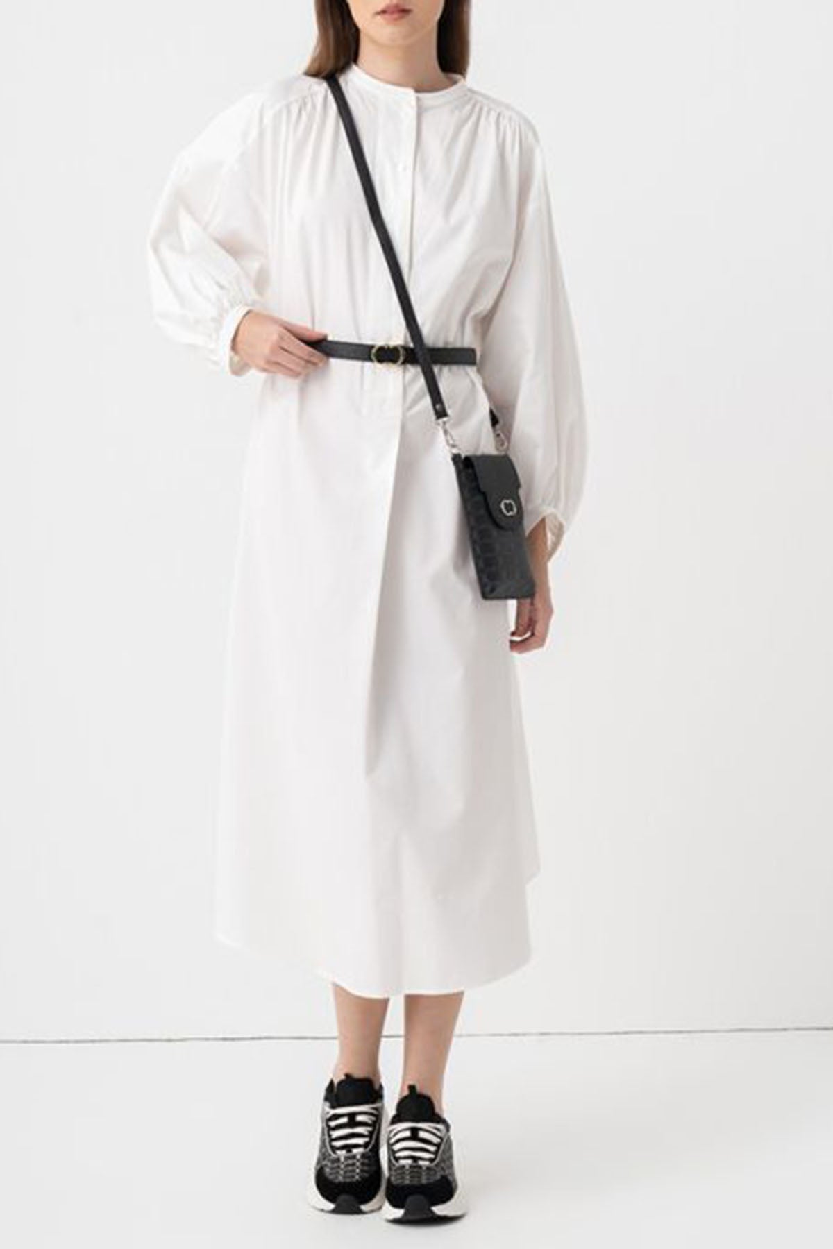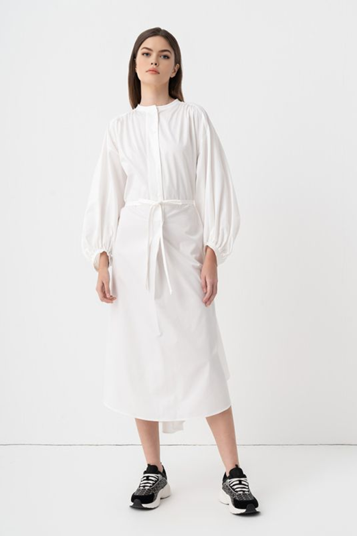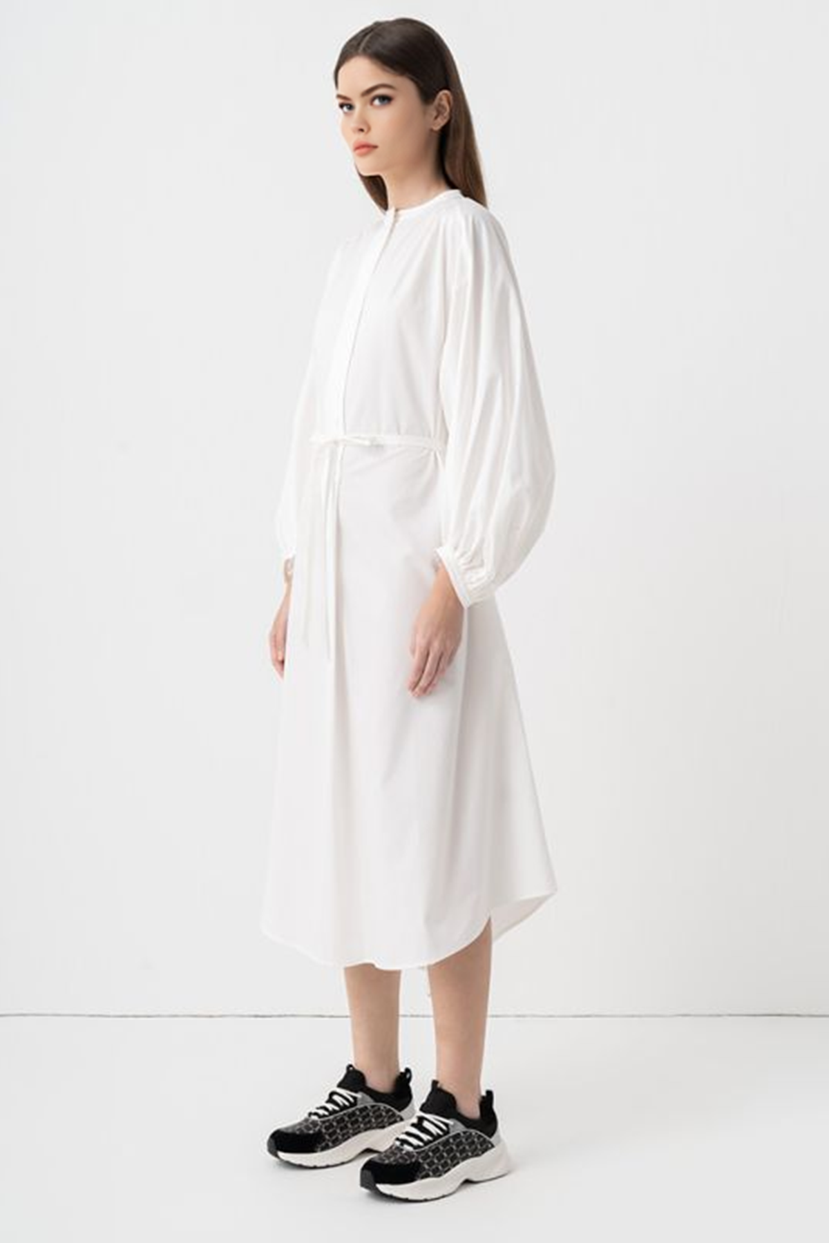 Waist Tie Side Slit Shirt Dress