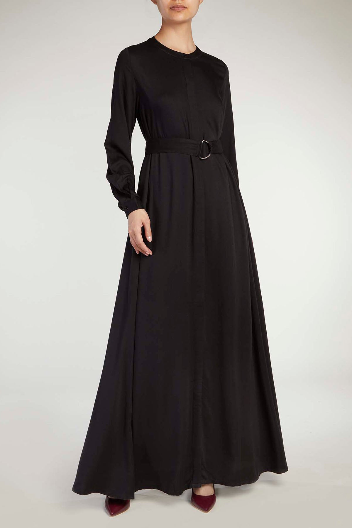 Single Tone Belted Flared Maxi Dress