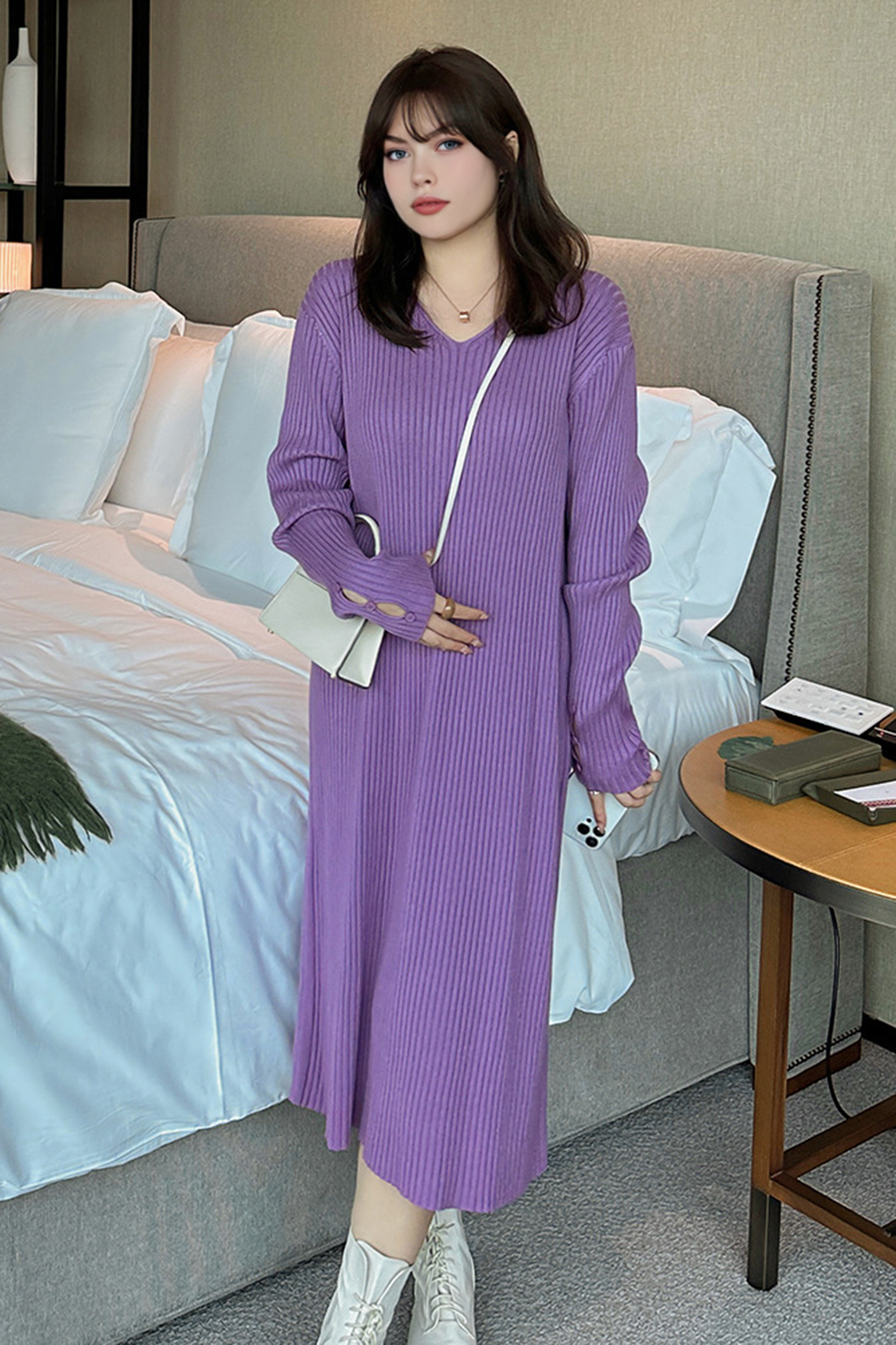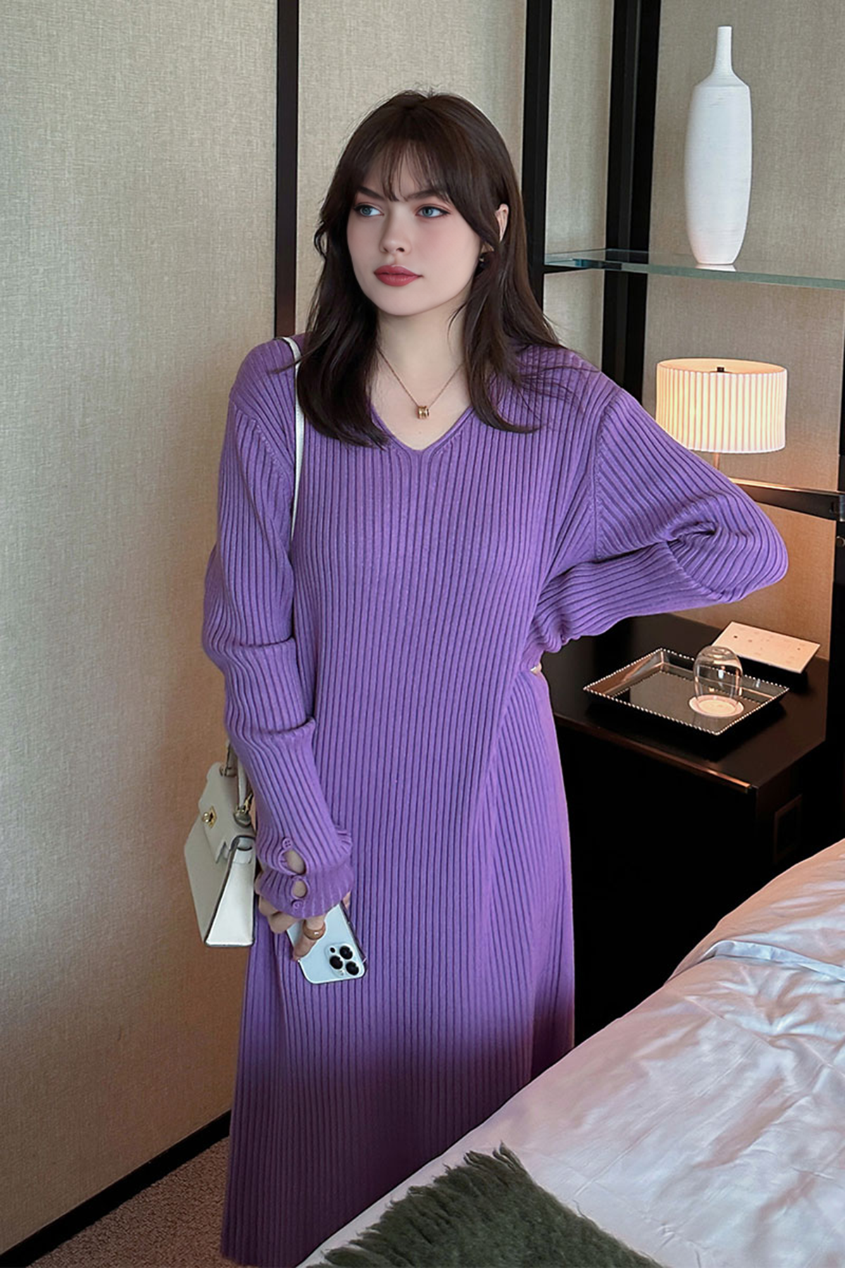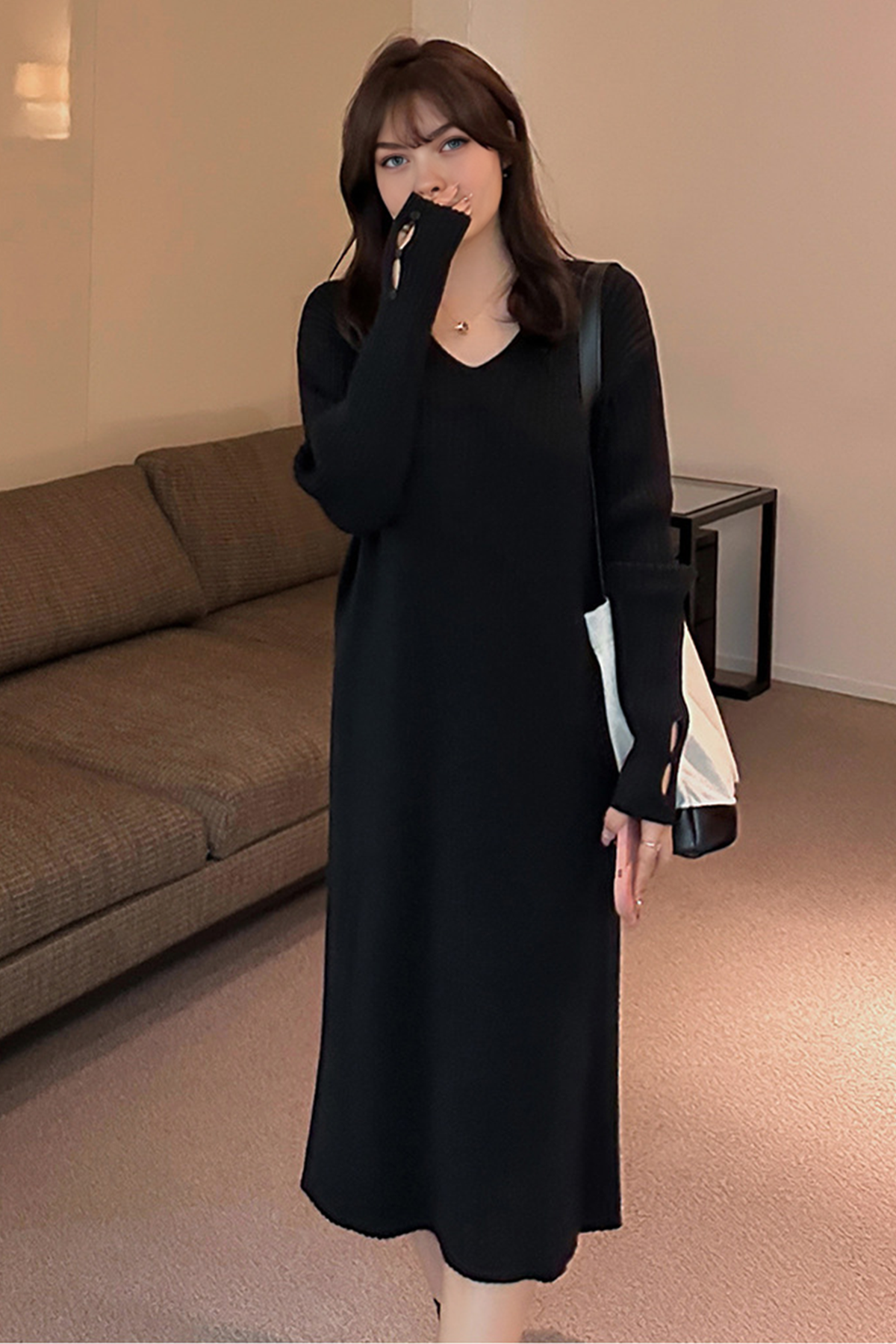 Temperament V-neck loose slimming knitted dress