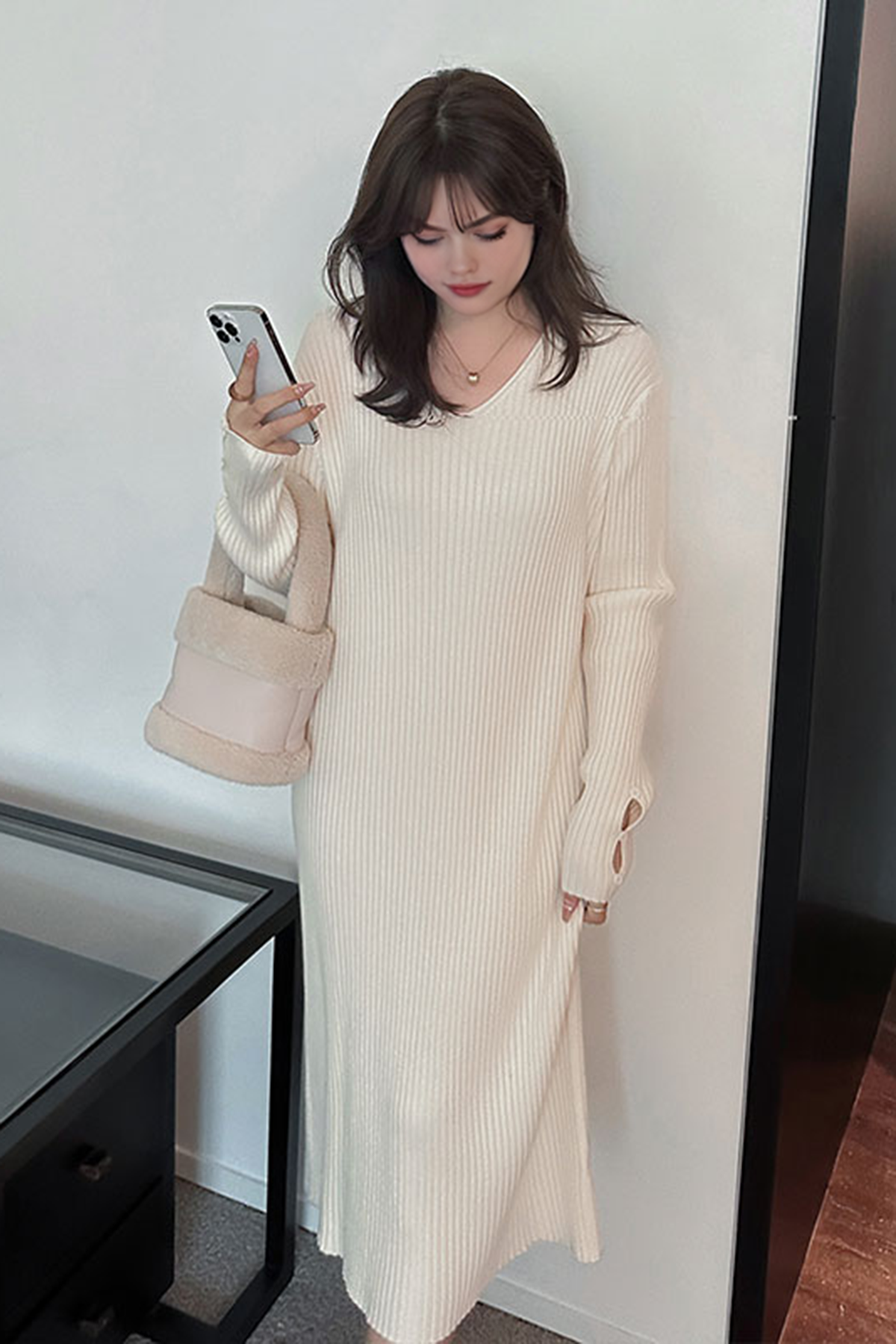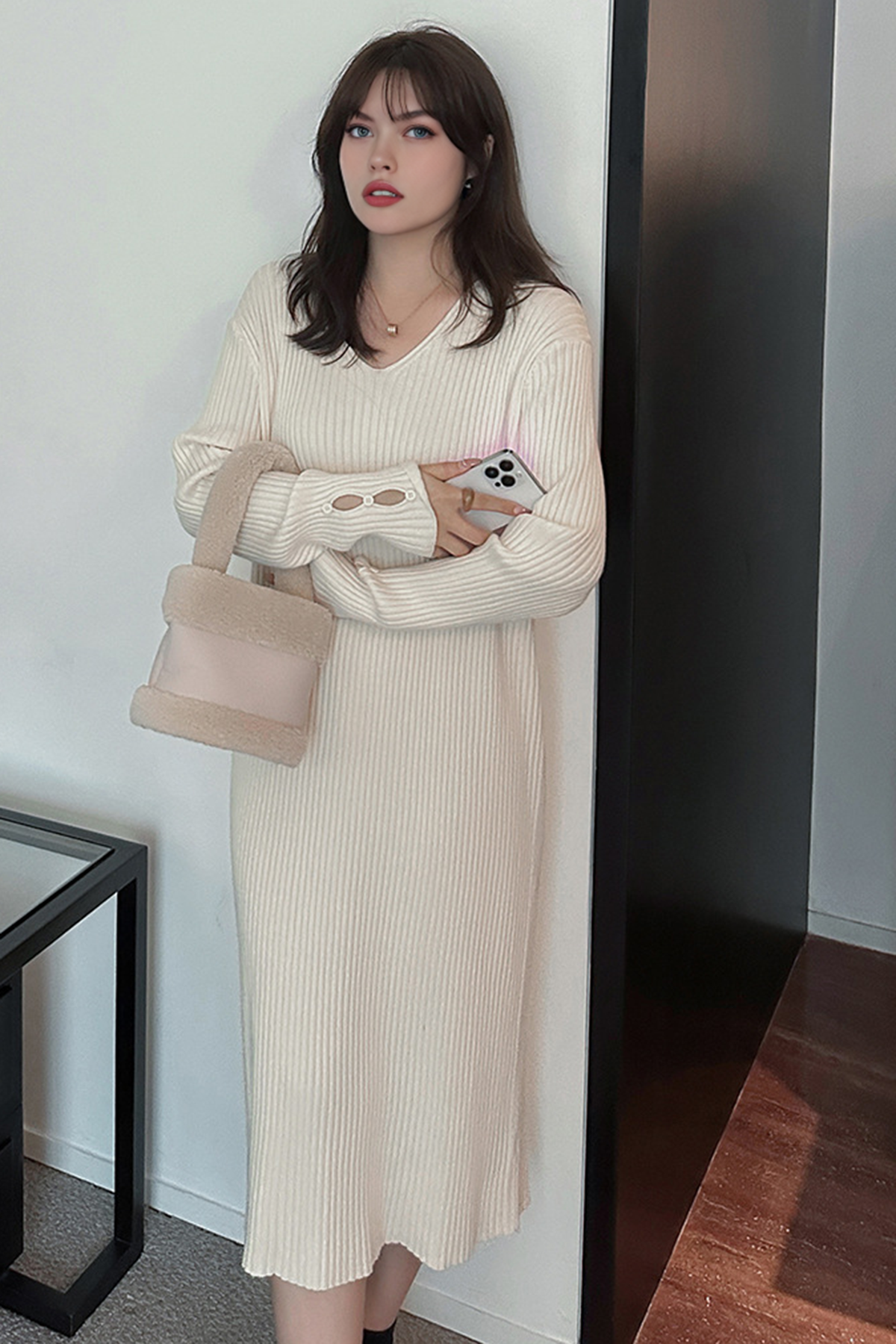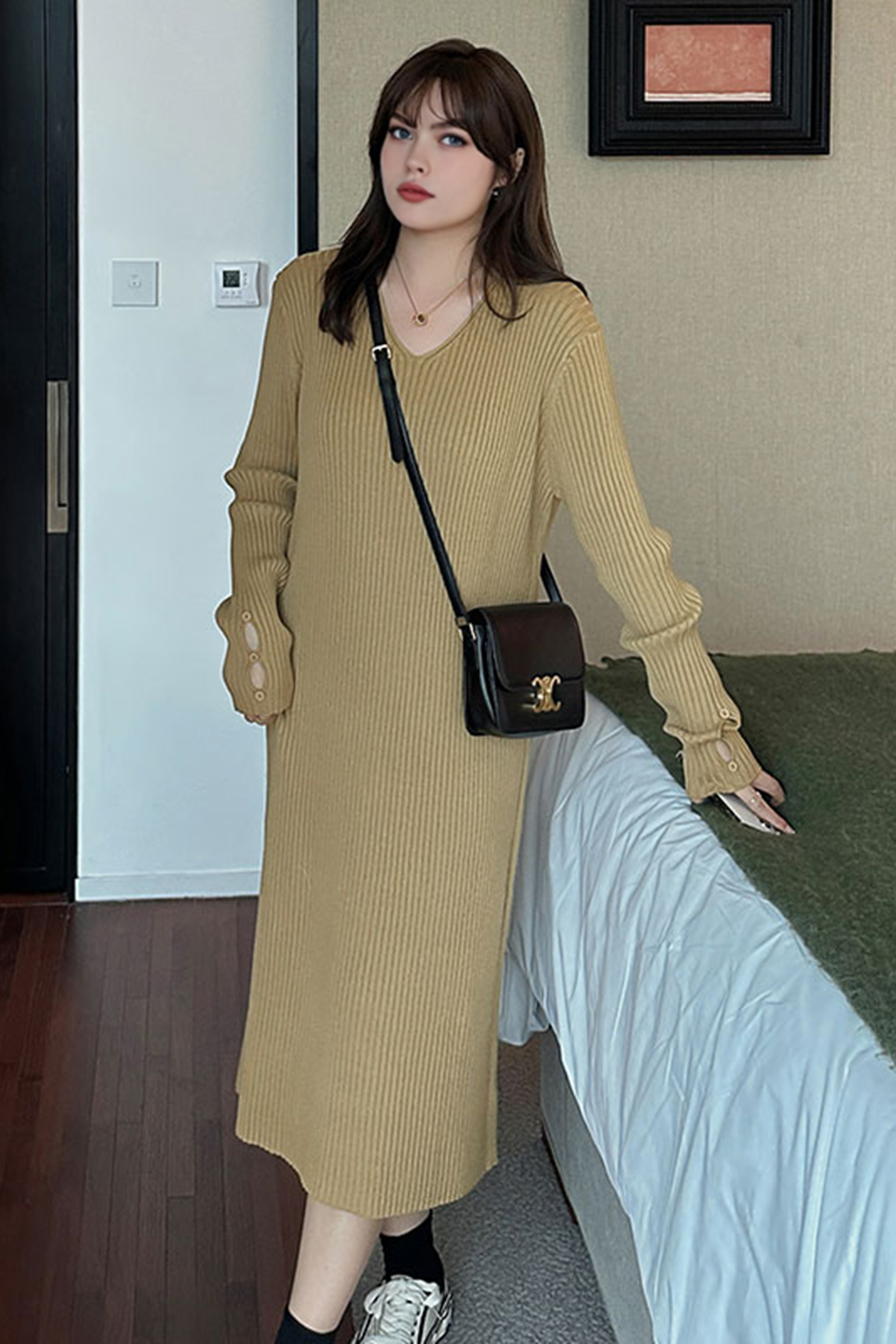 Temperament V-neck loose slimming knitted dress