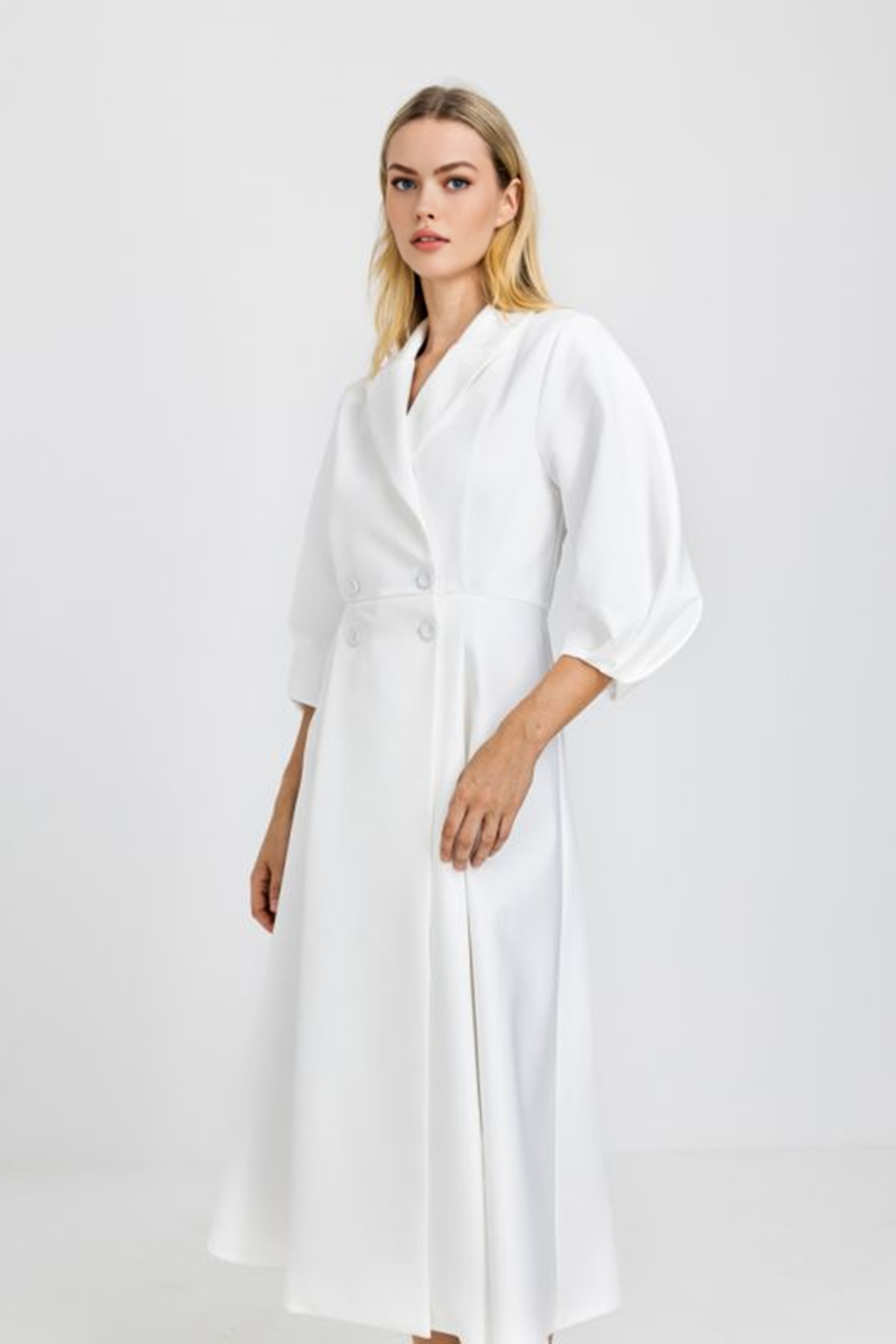 Notched Collar Double Breasted Dress