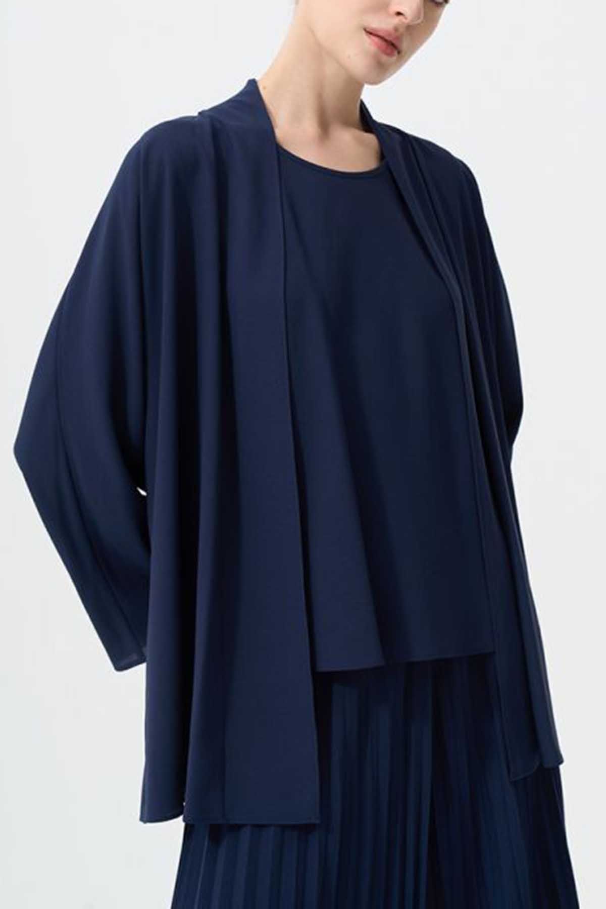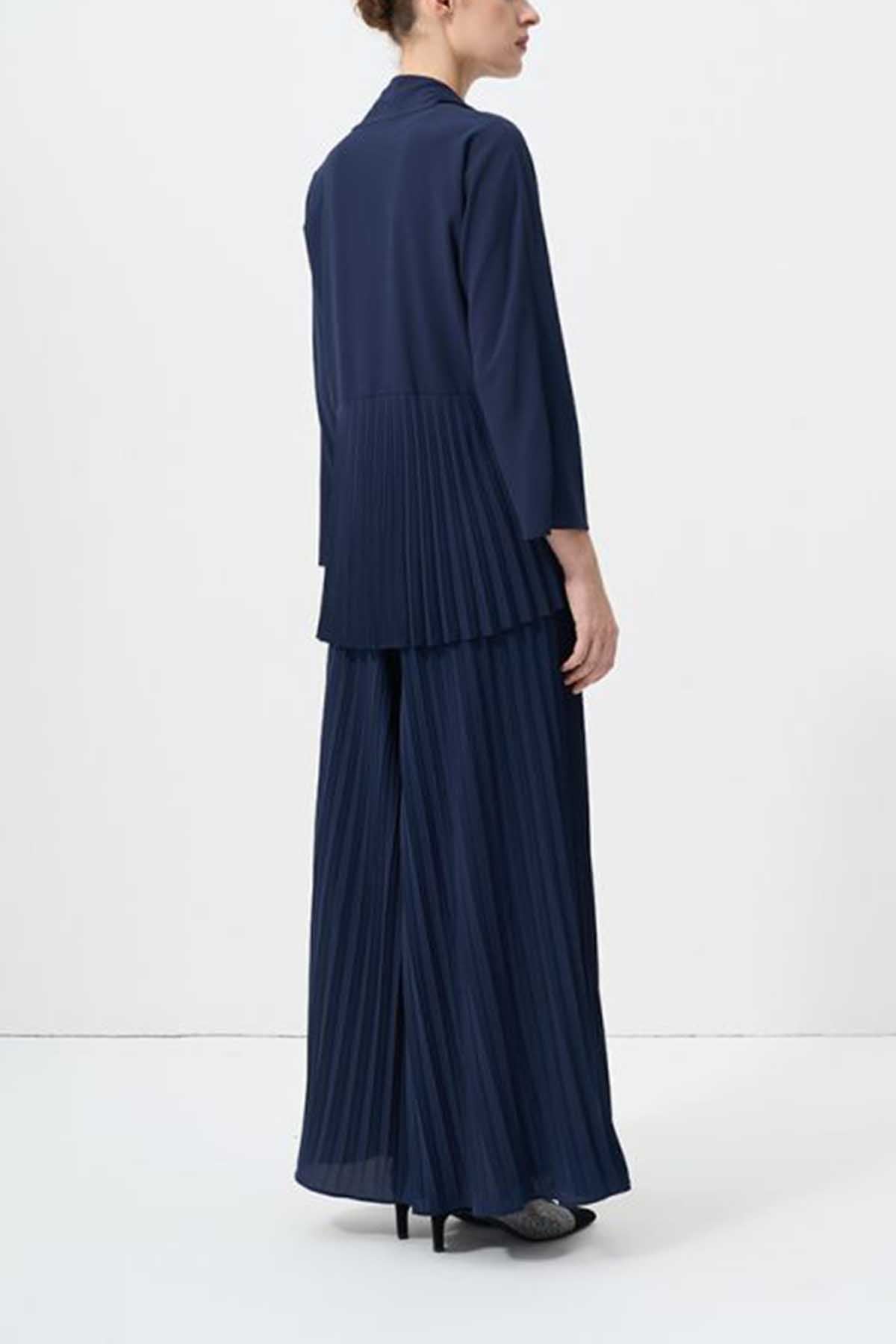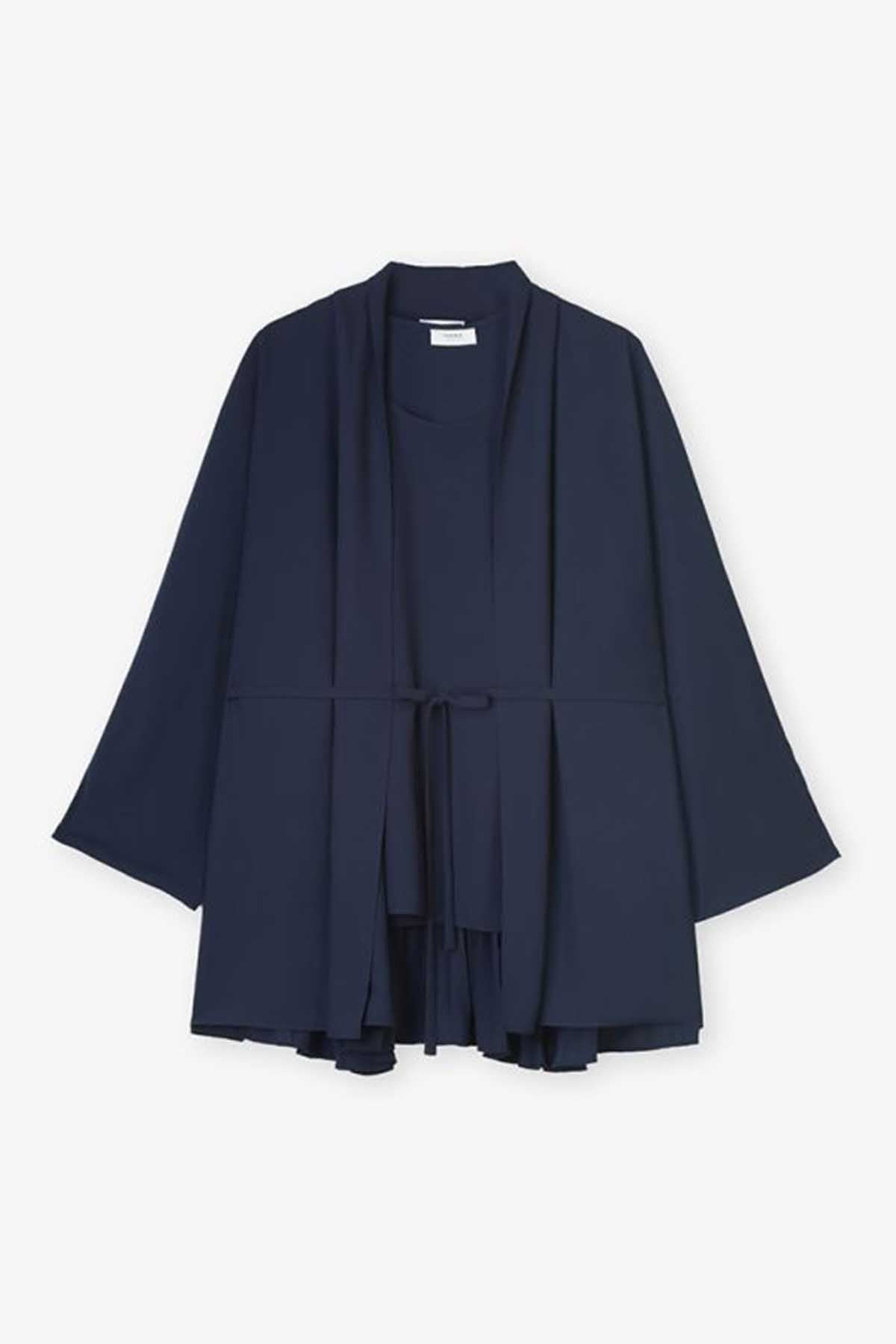 Solid Long Sleeve Pleated Cardigan Set (2 PCS)
