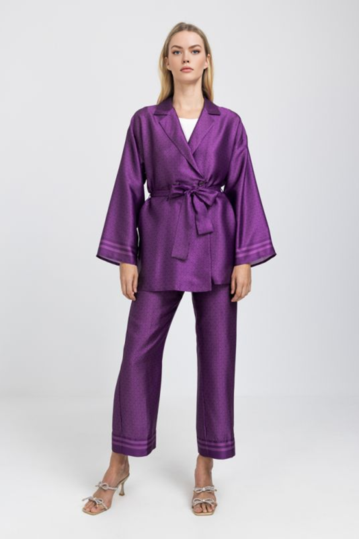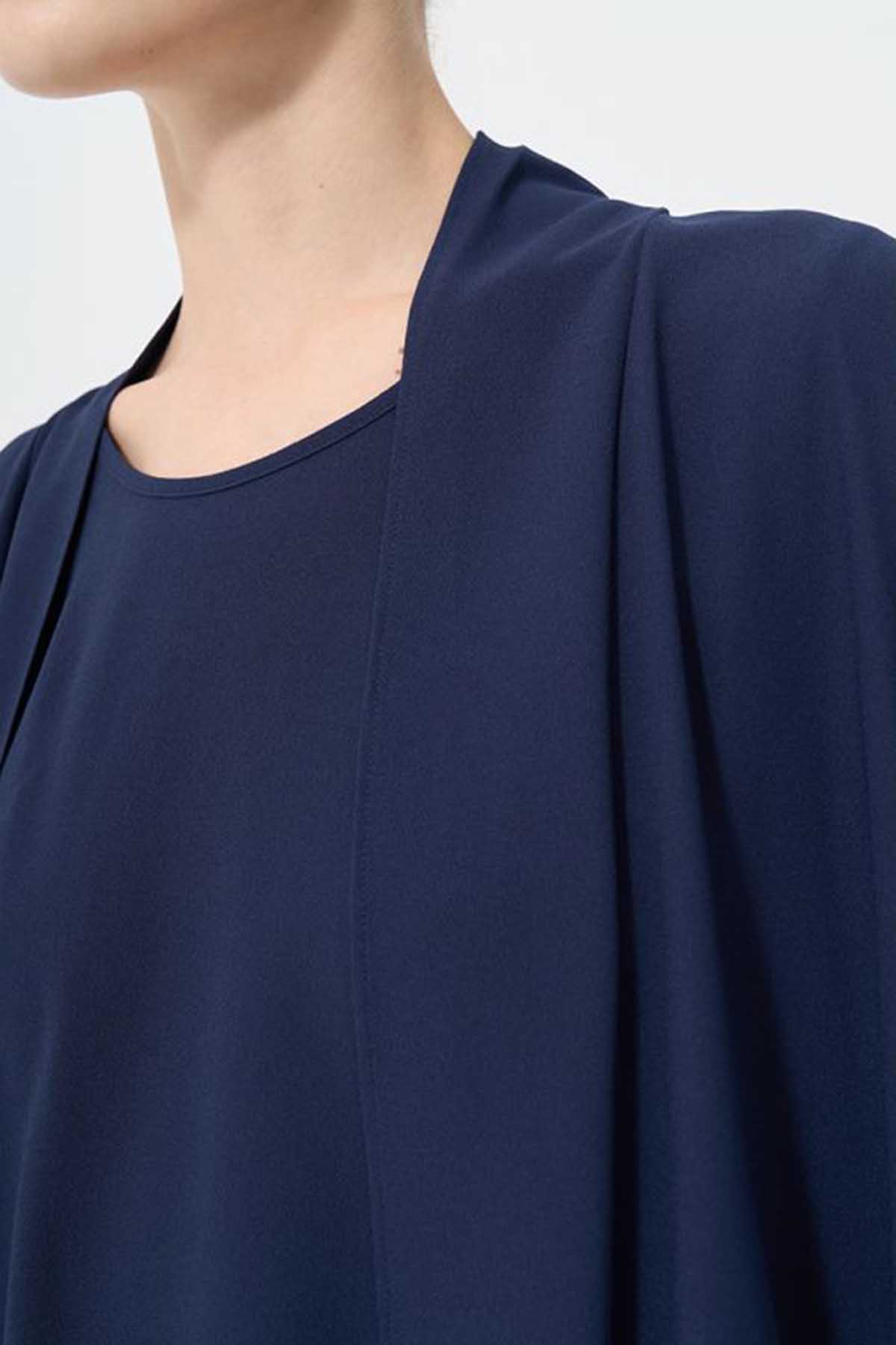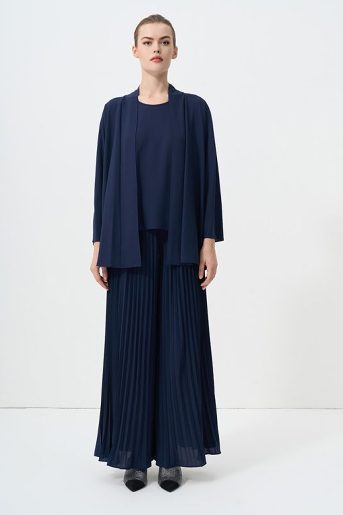 Solid Long Sleeve Pleated Cardigan Set (2 PCS)