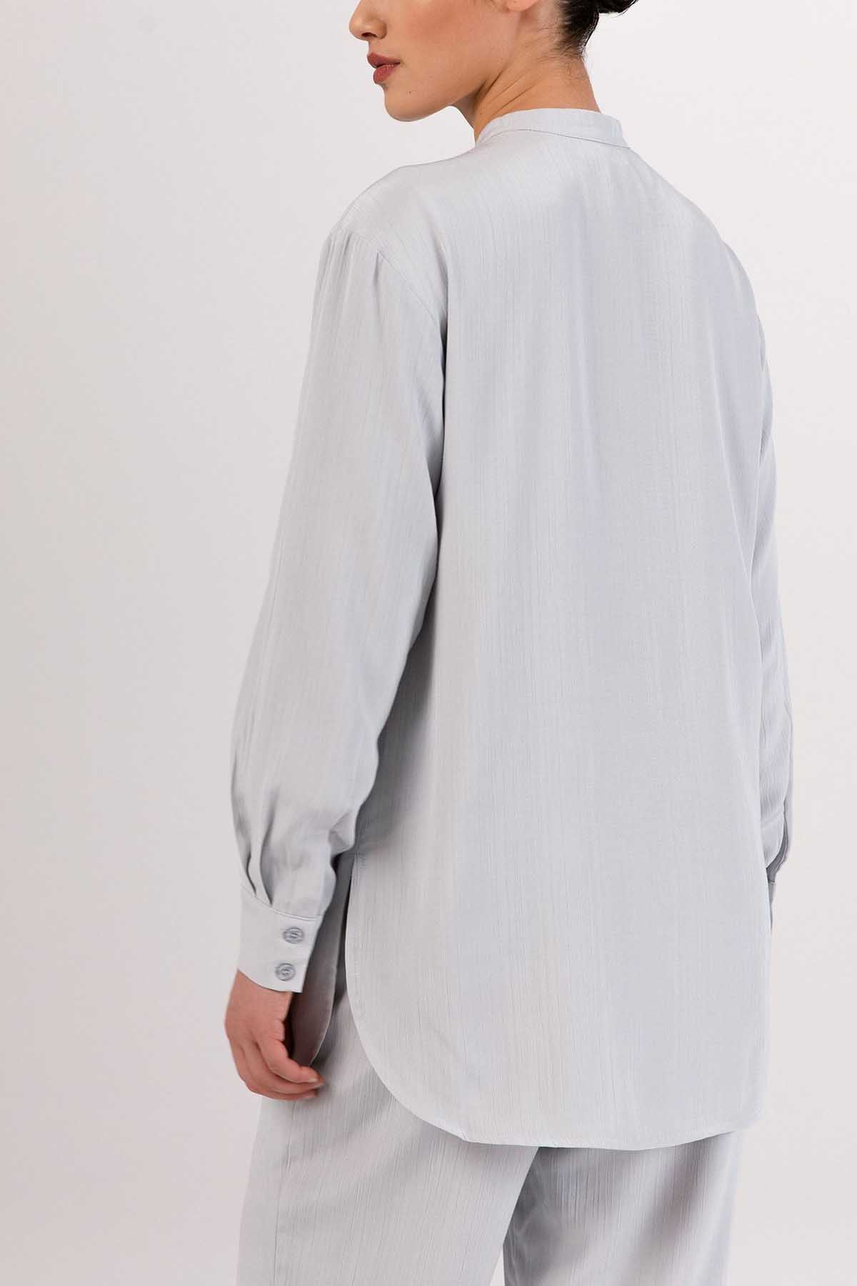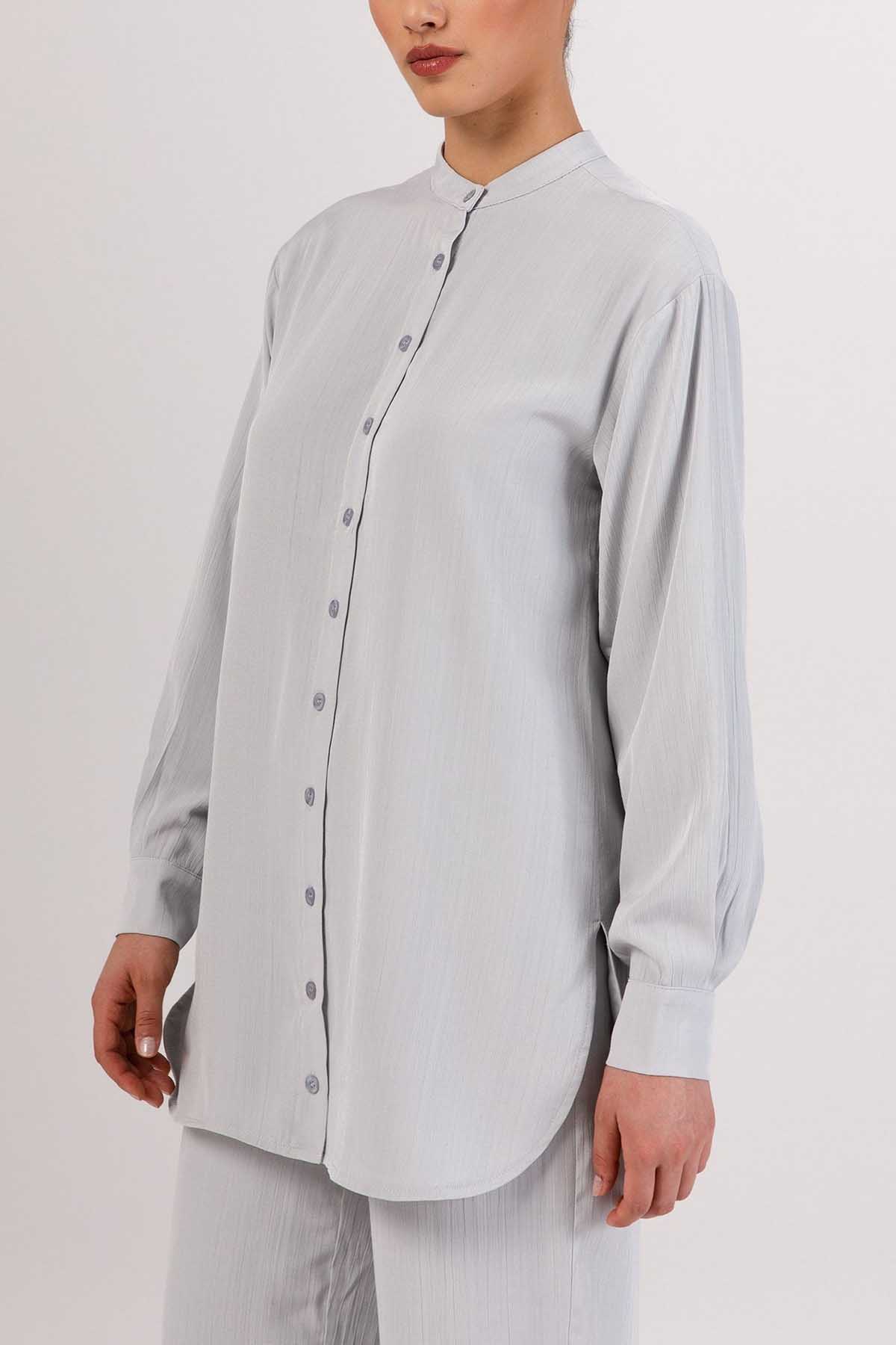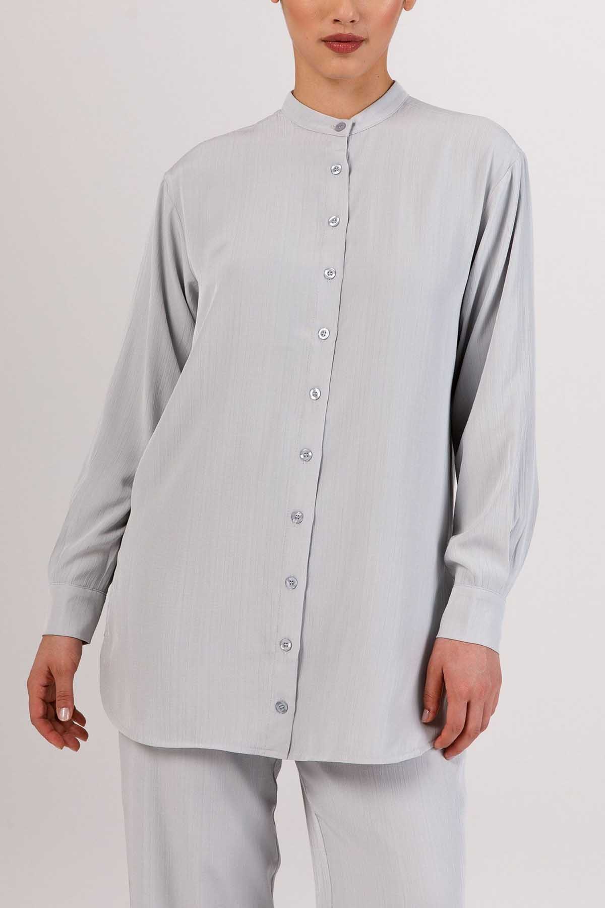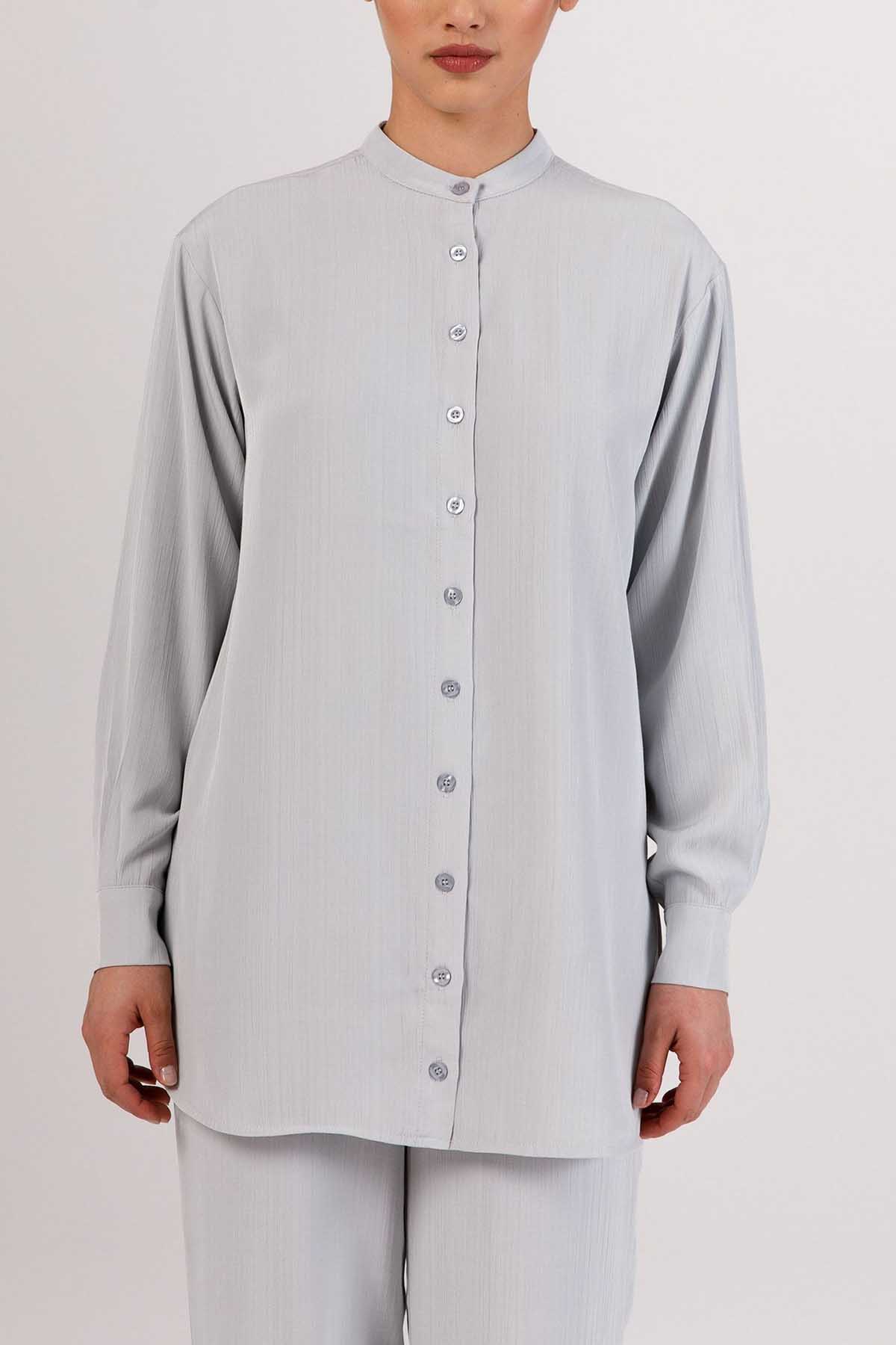 Nashwa Textured Rayon Button Down Tunic - Soft Grey