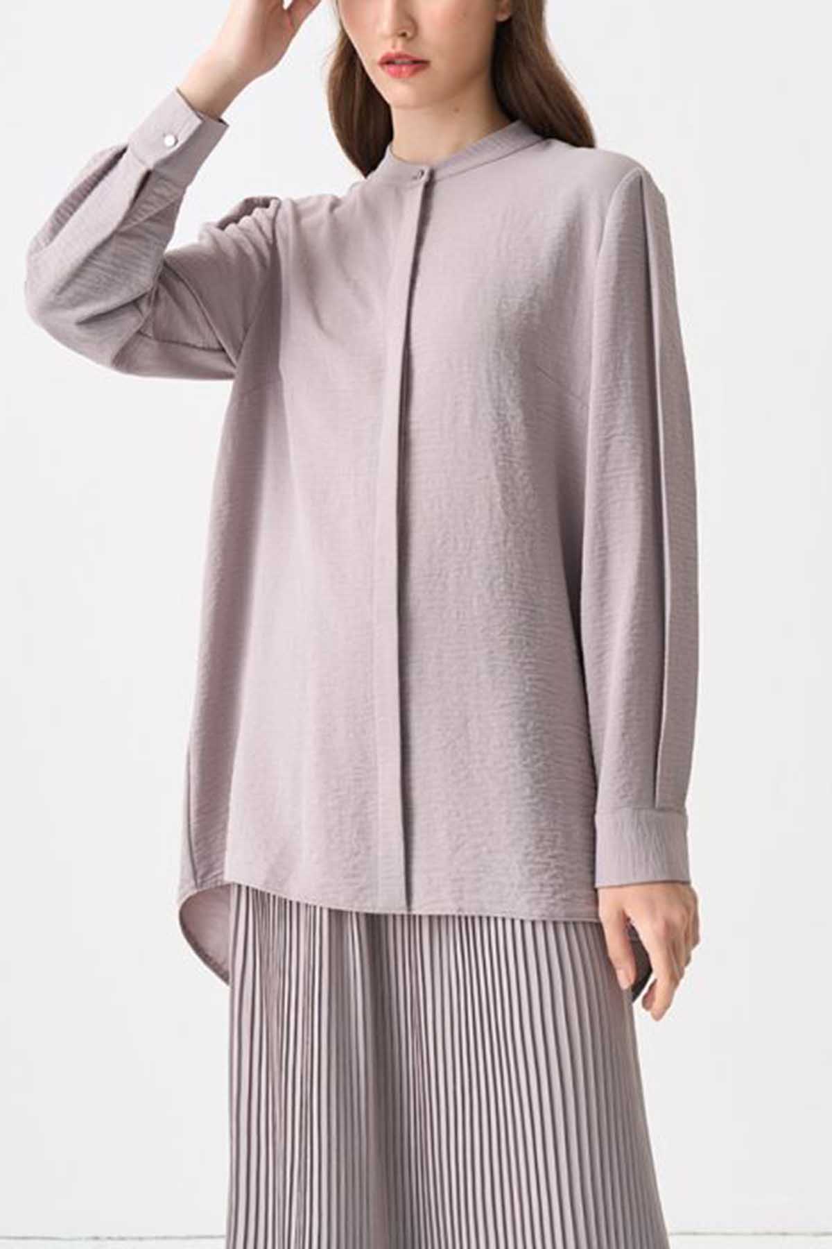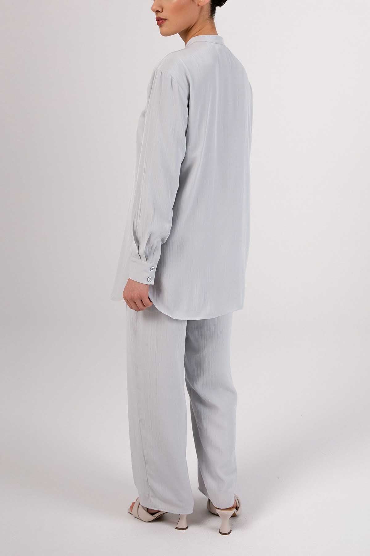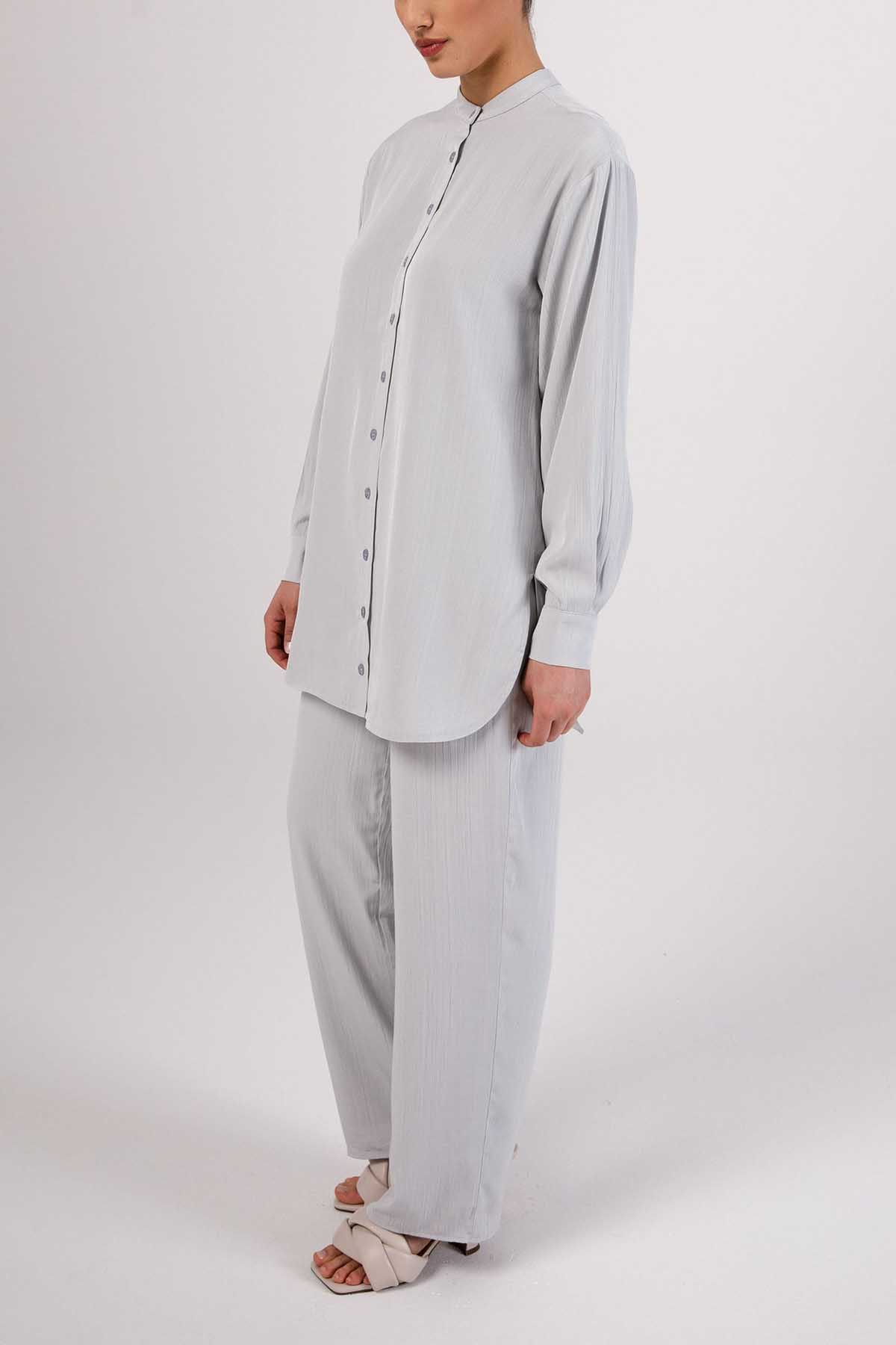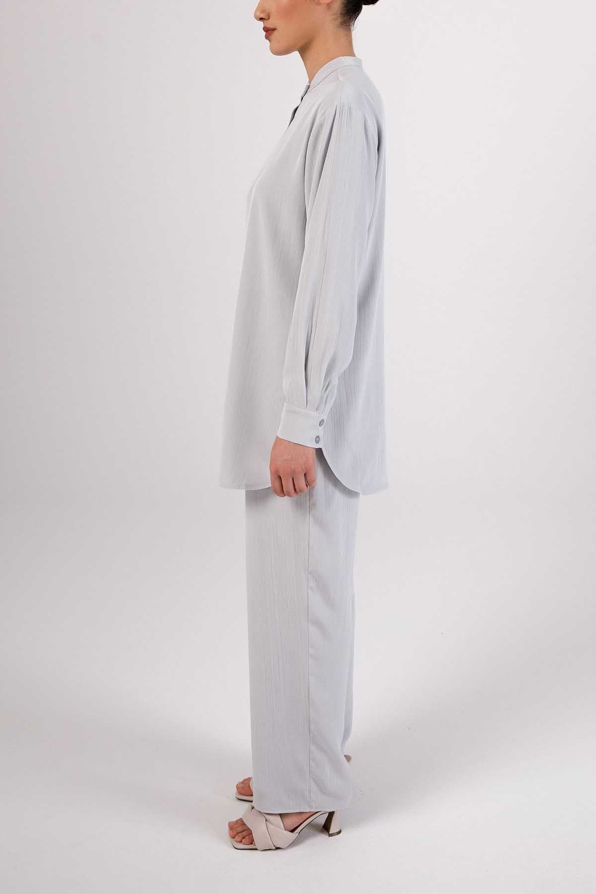 Nashwa Textured Rayon Button Down Tunic - Soft Grey