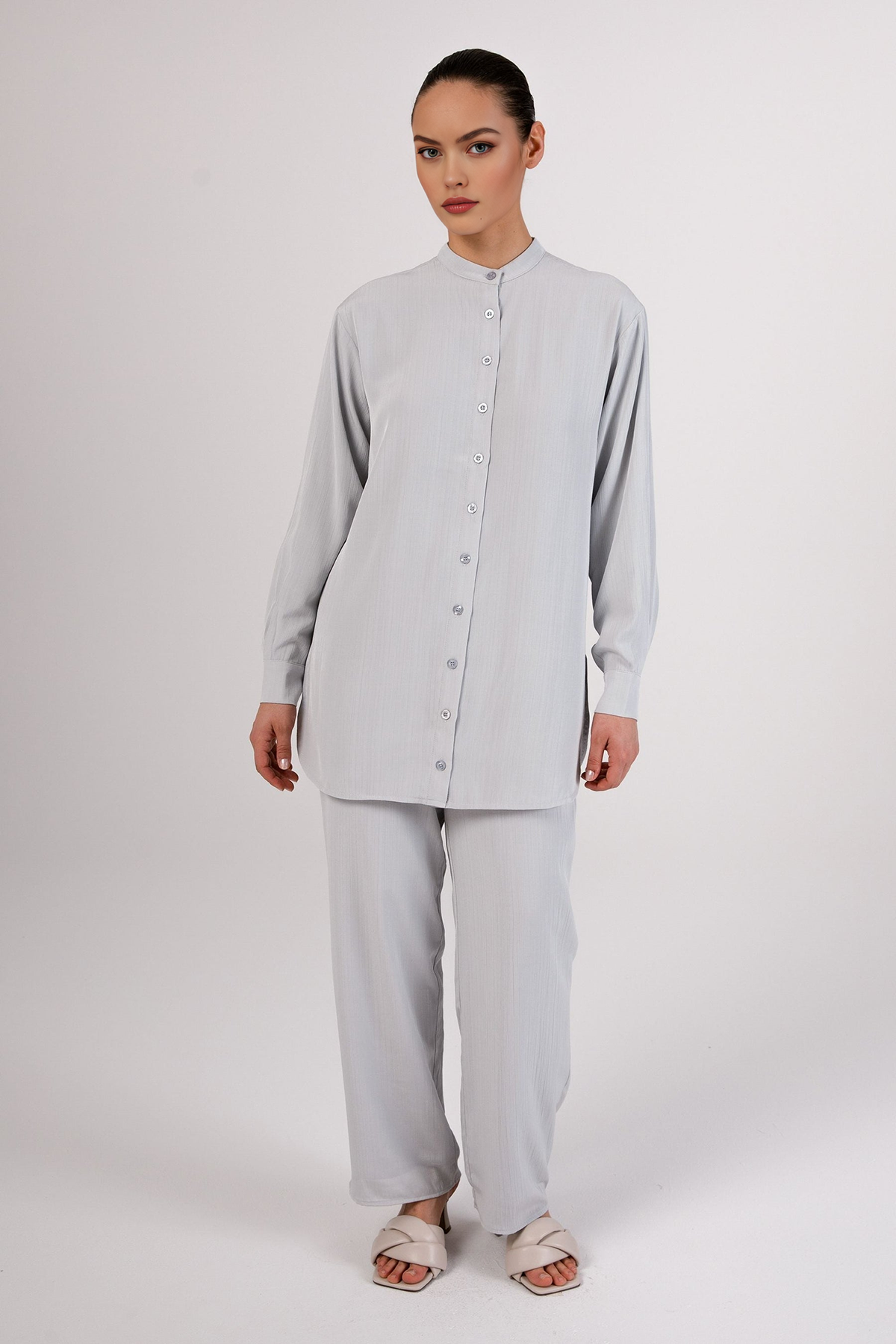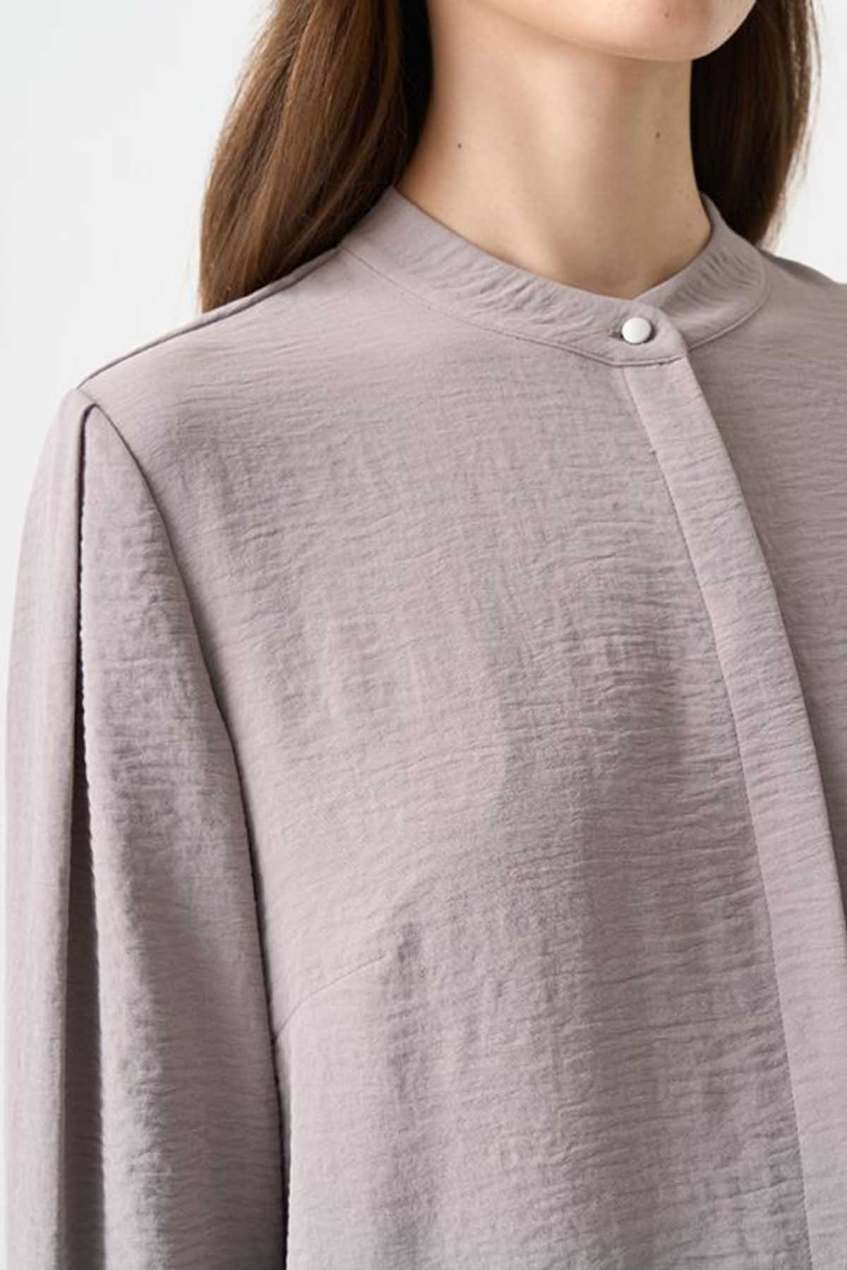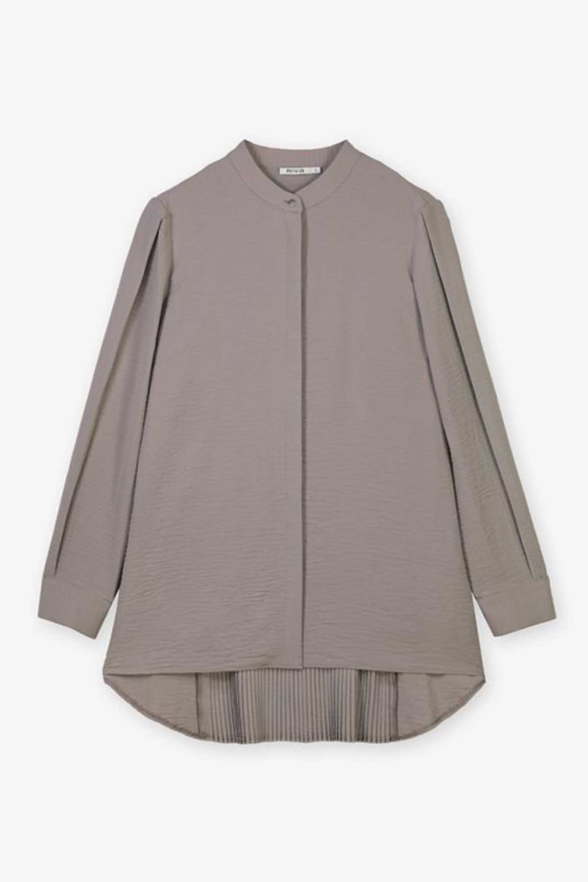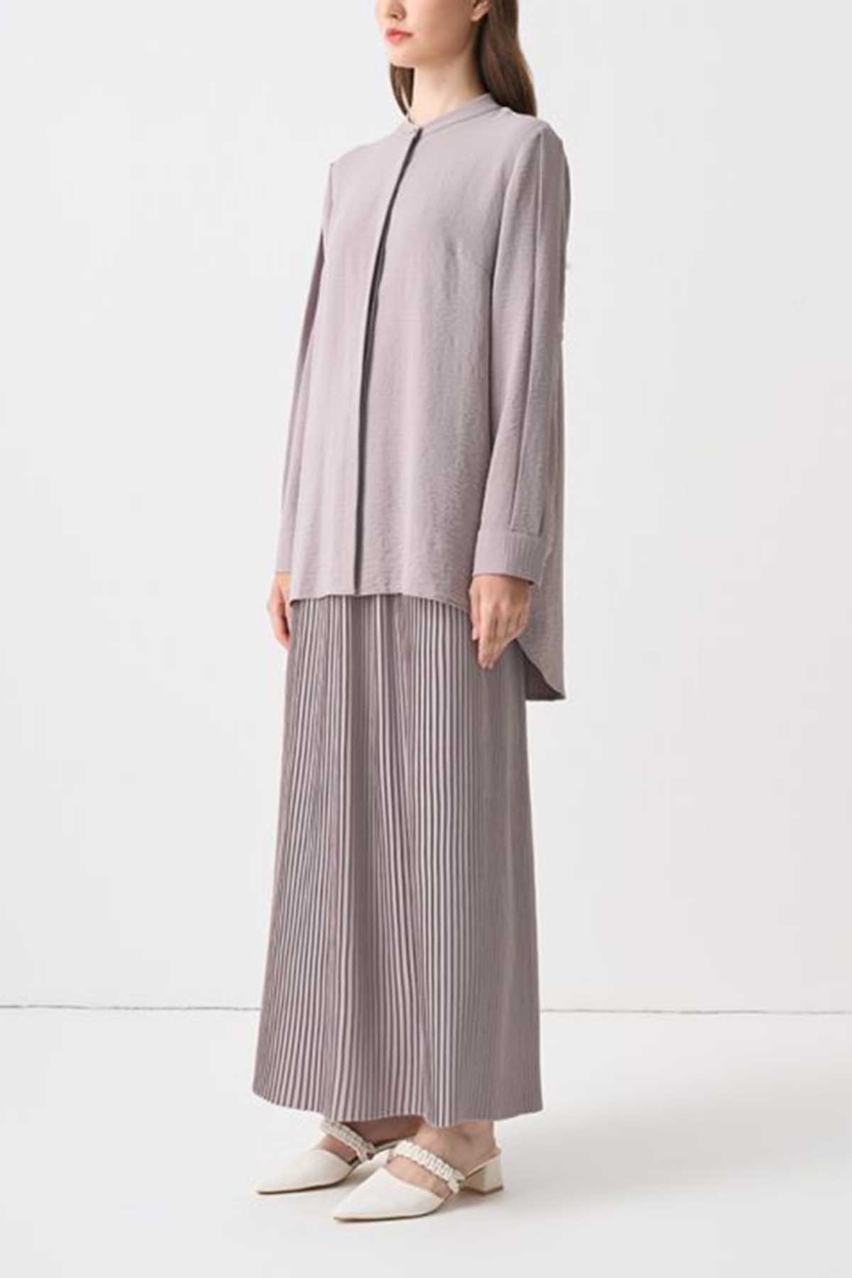 Nashwa Textured Rayon Button Down Tunic - Soft Grey