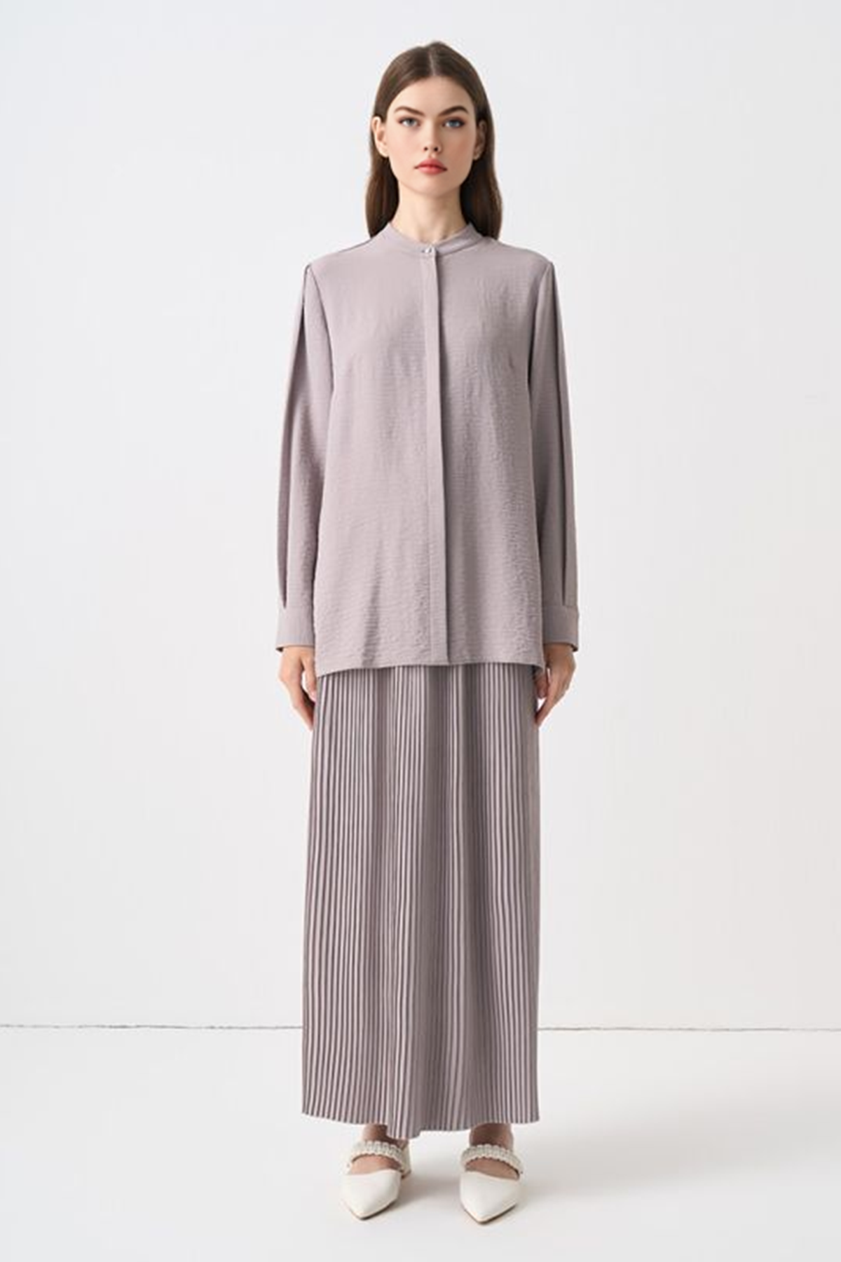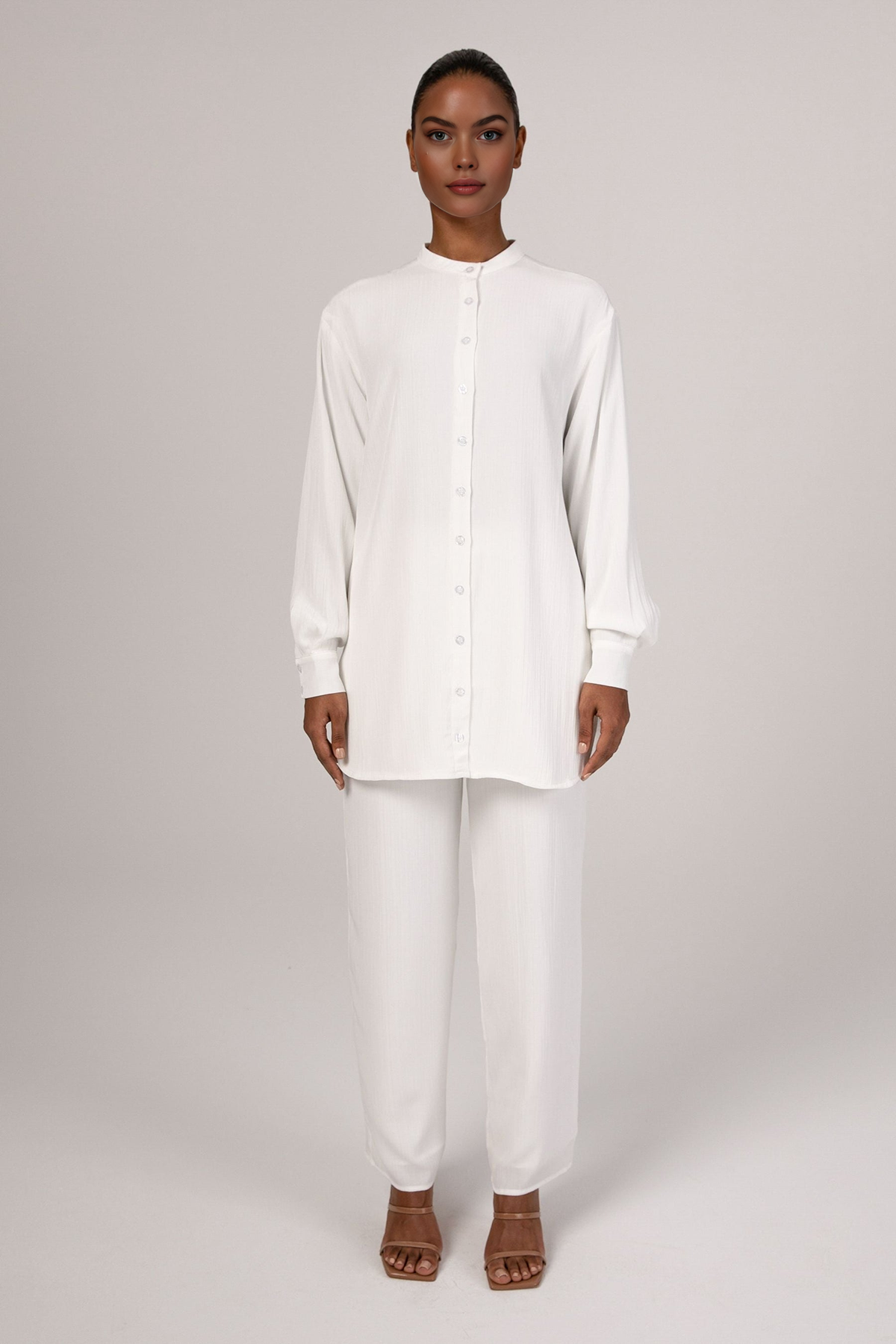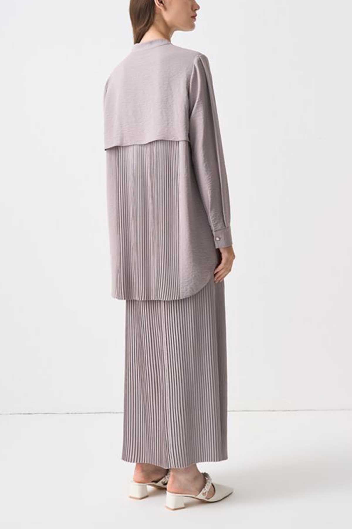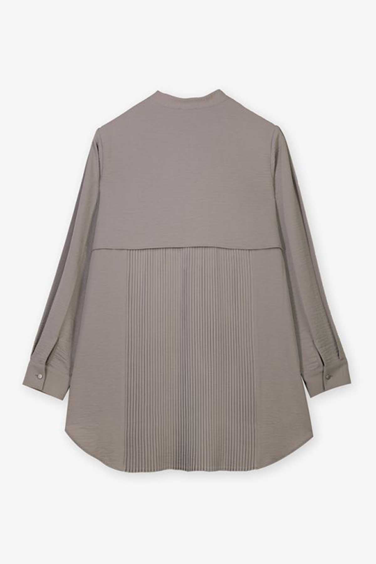 Nashwa Textured Rayon Button Down Tunic - Soft Grey