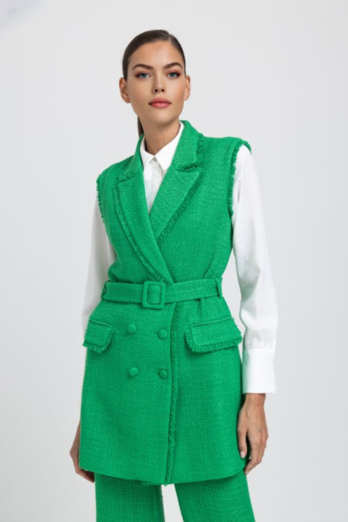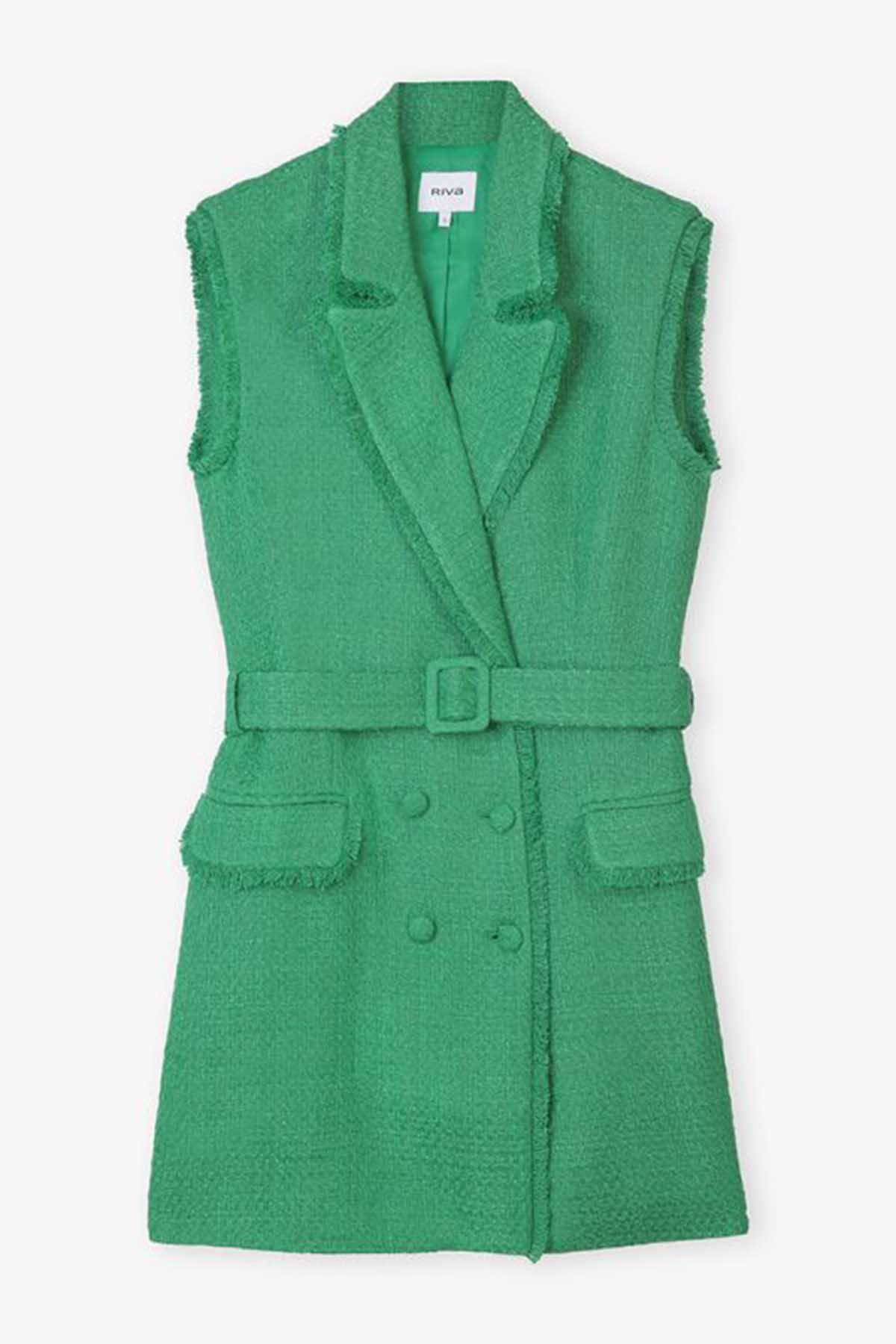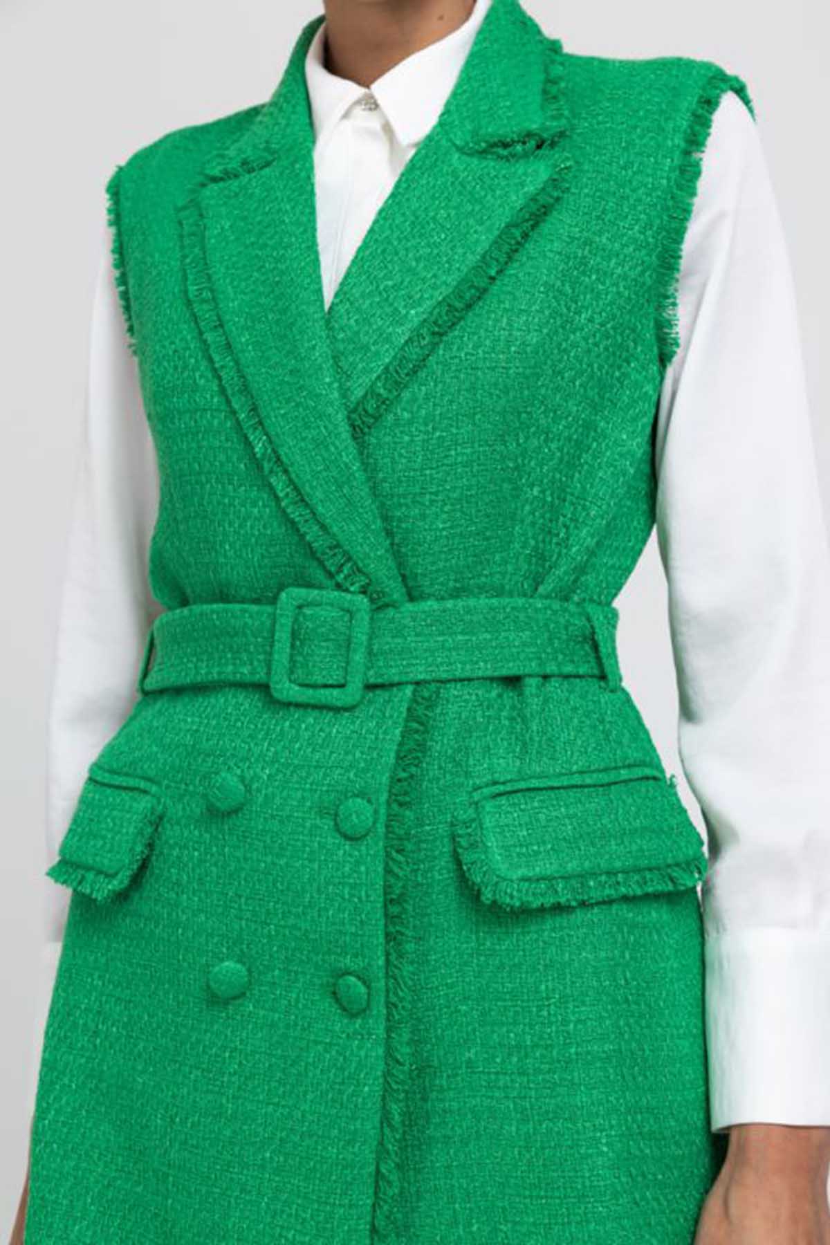 Sleeveless Tweed Double Breasted Jacket