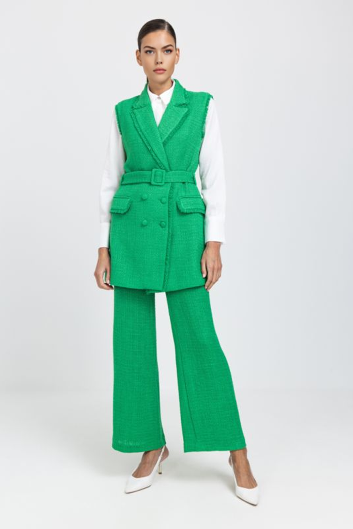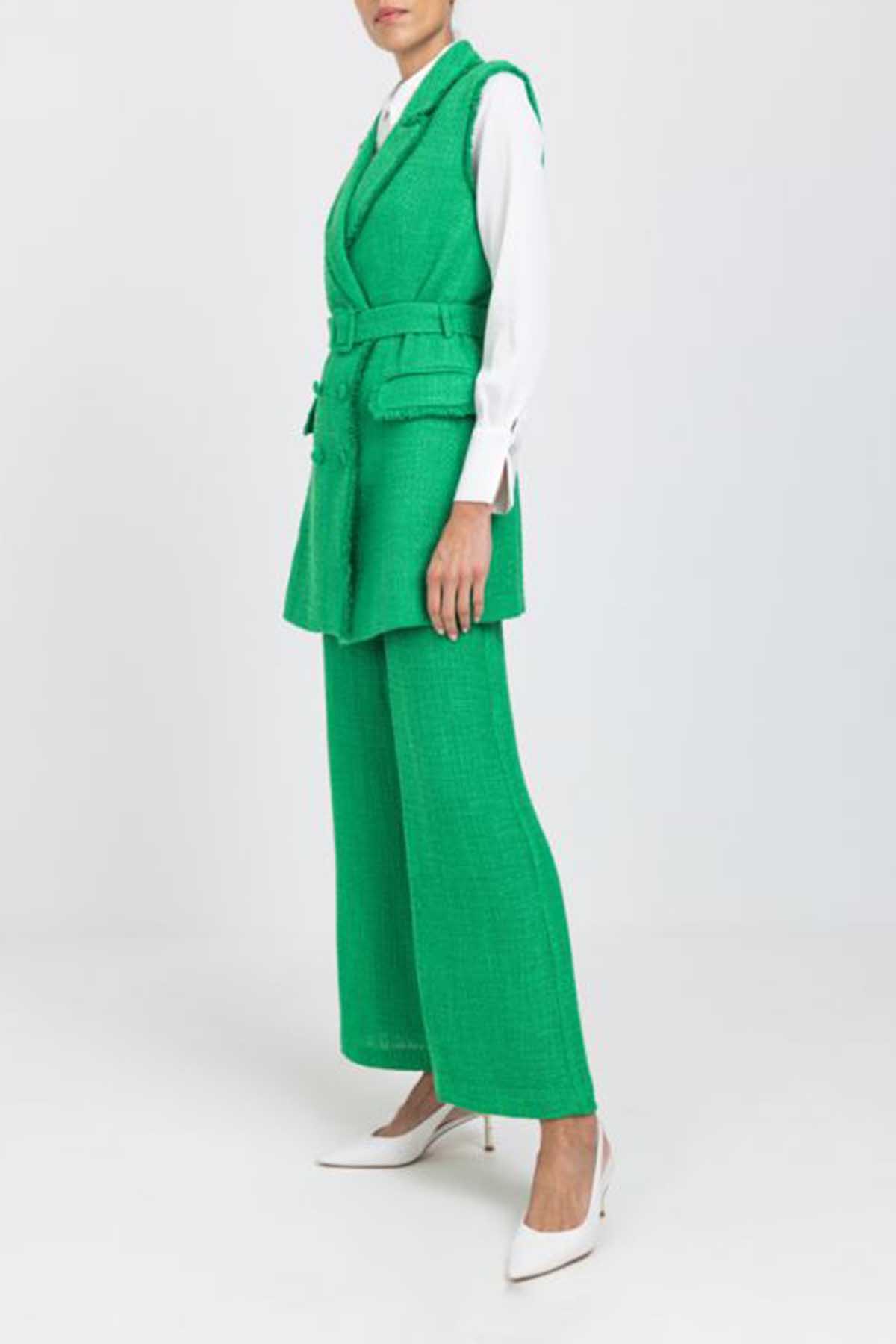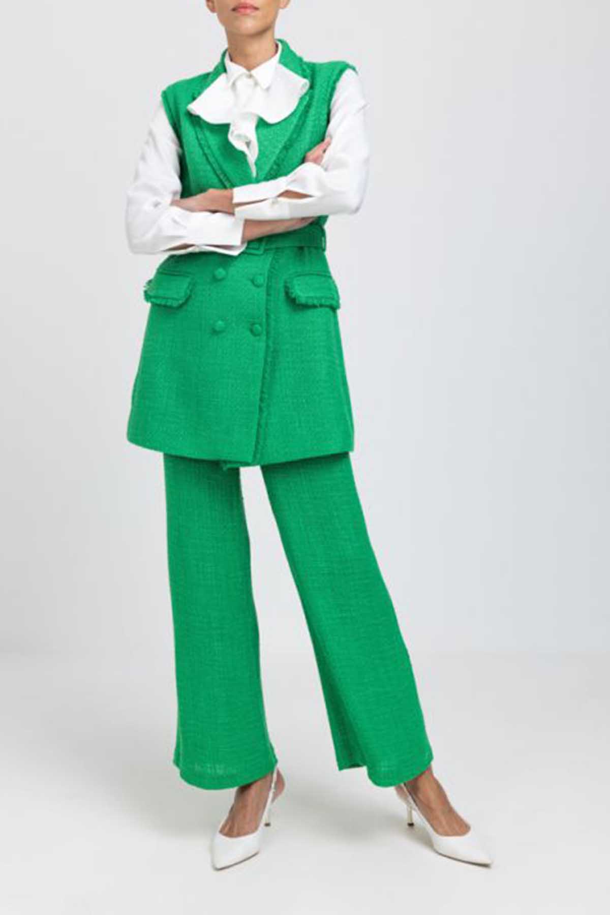 Sleeveless Tweed Double Breasted Jacket