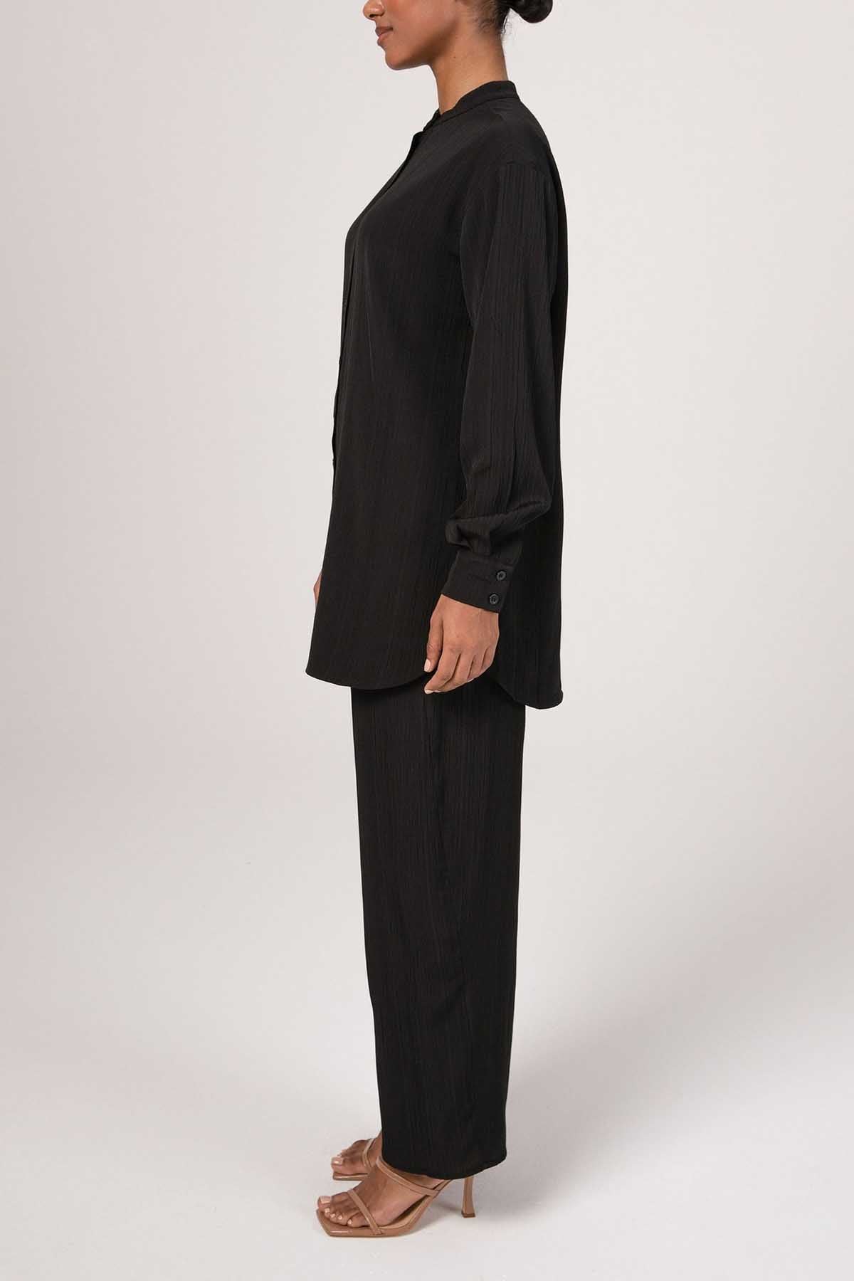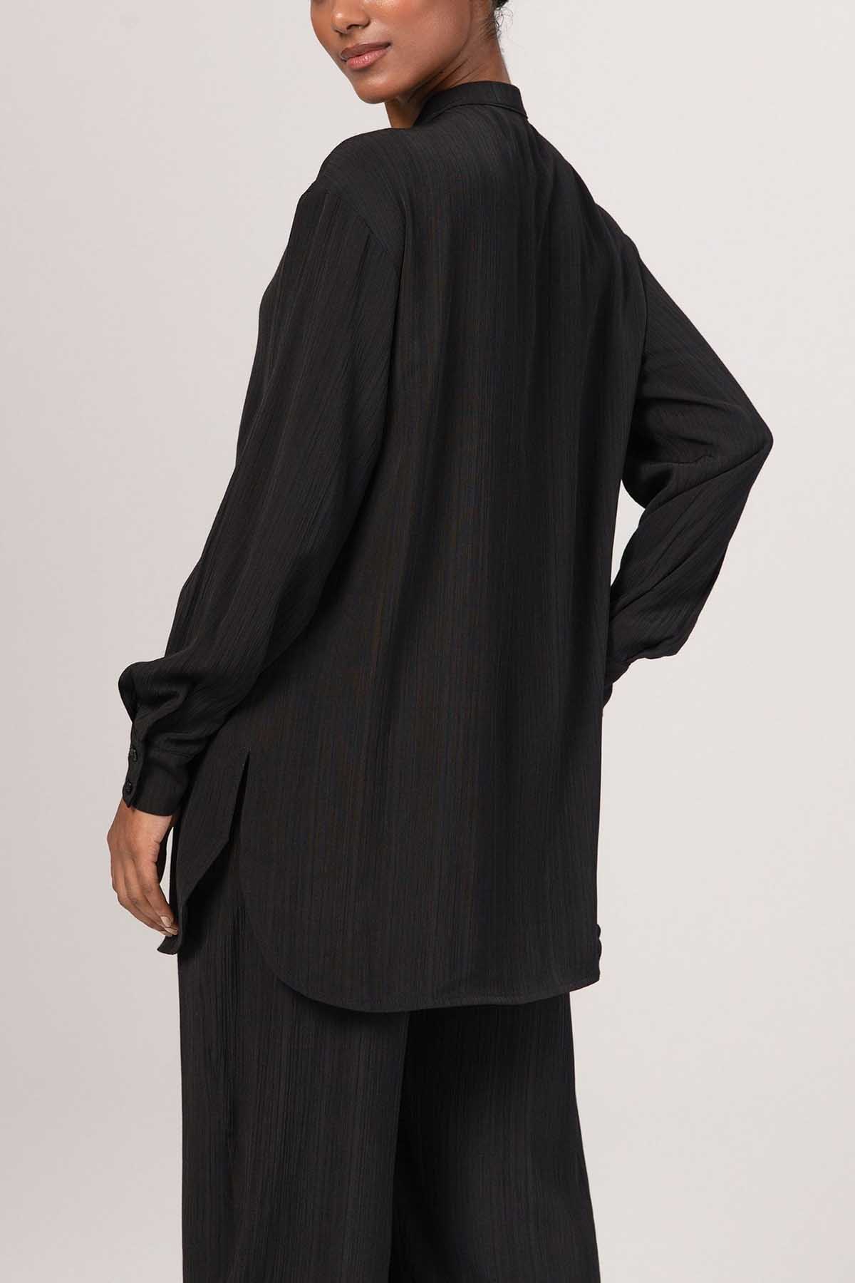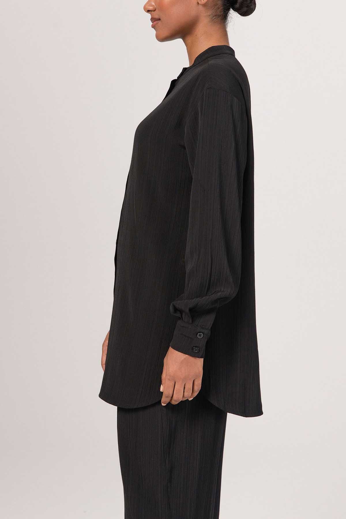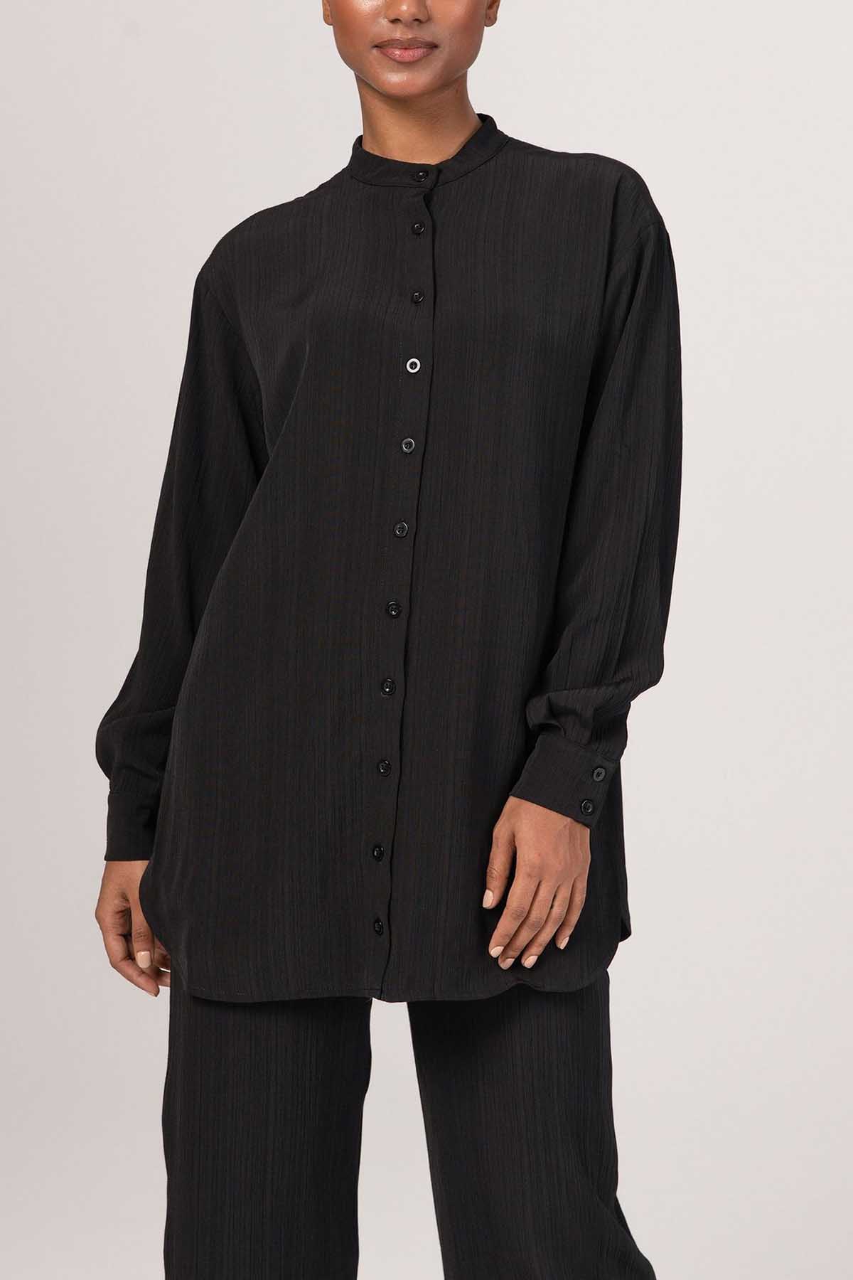 Nashwa Textured Rayon Button Down Tunic - Black