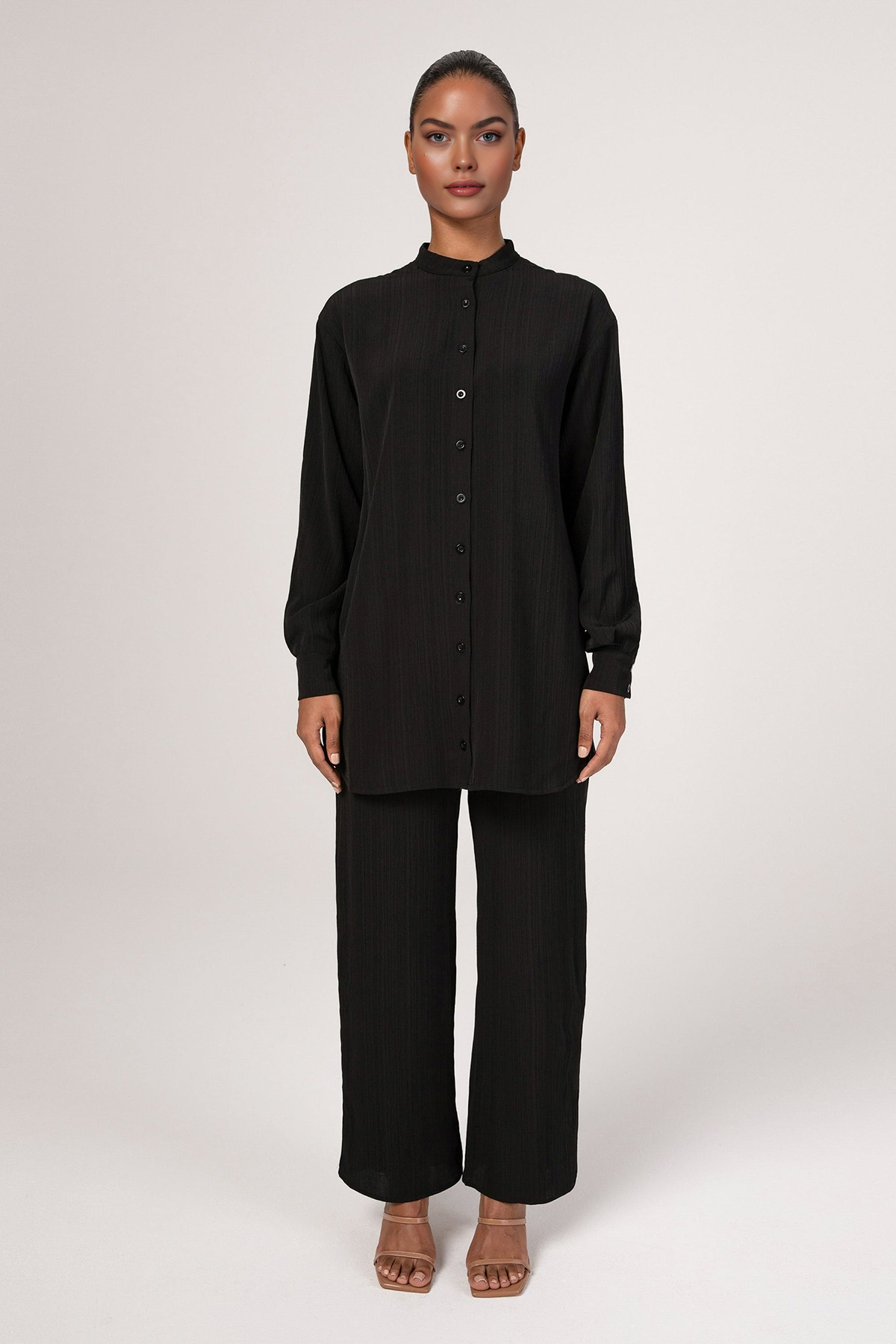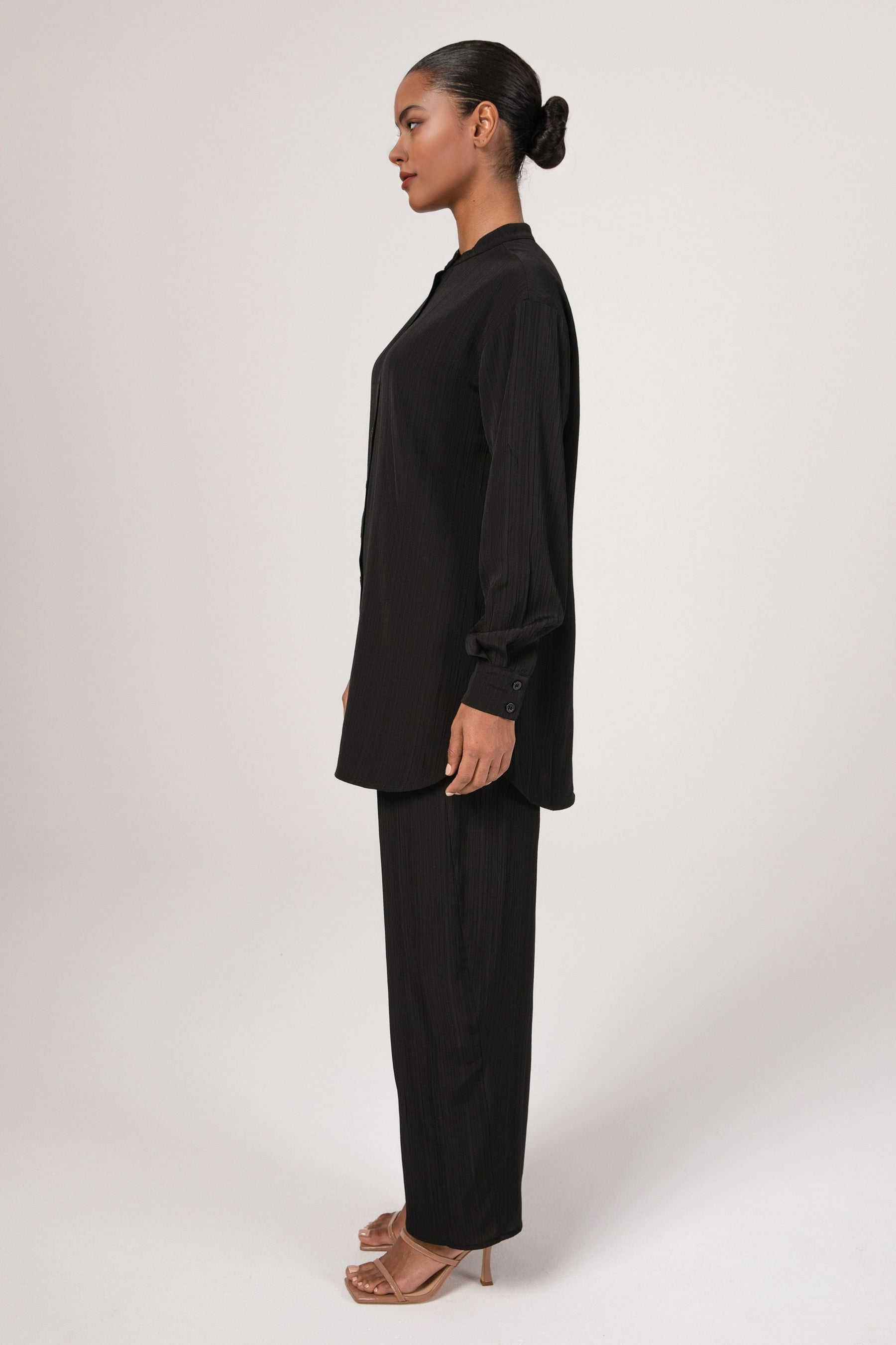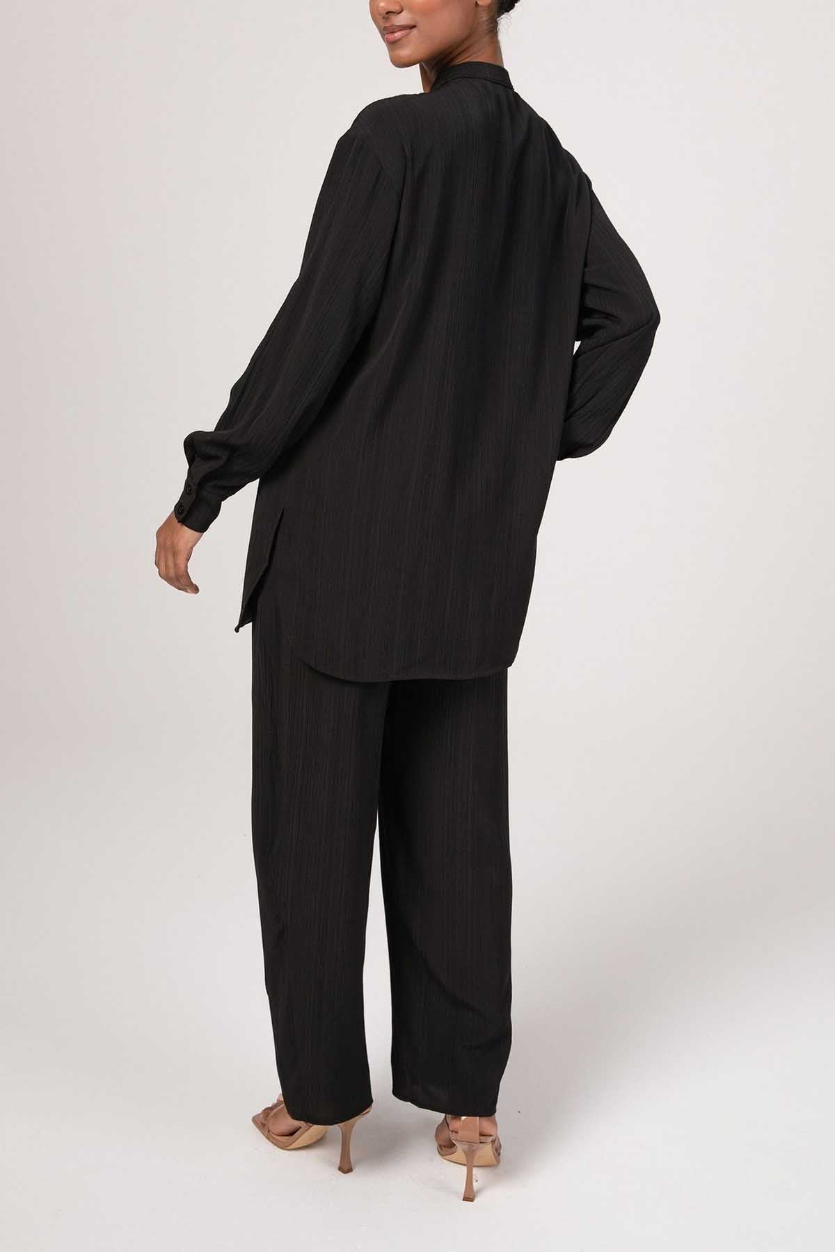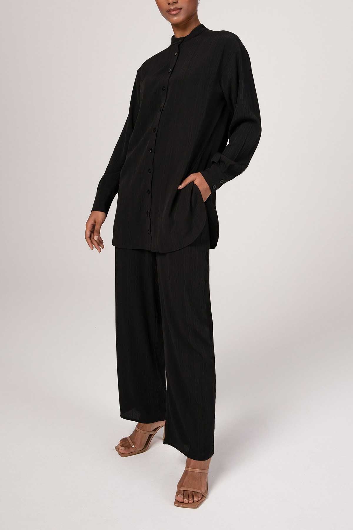 Nashwa Textured Rayon Button Down Tunic - Black