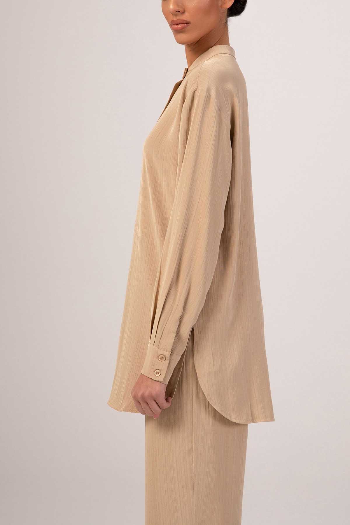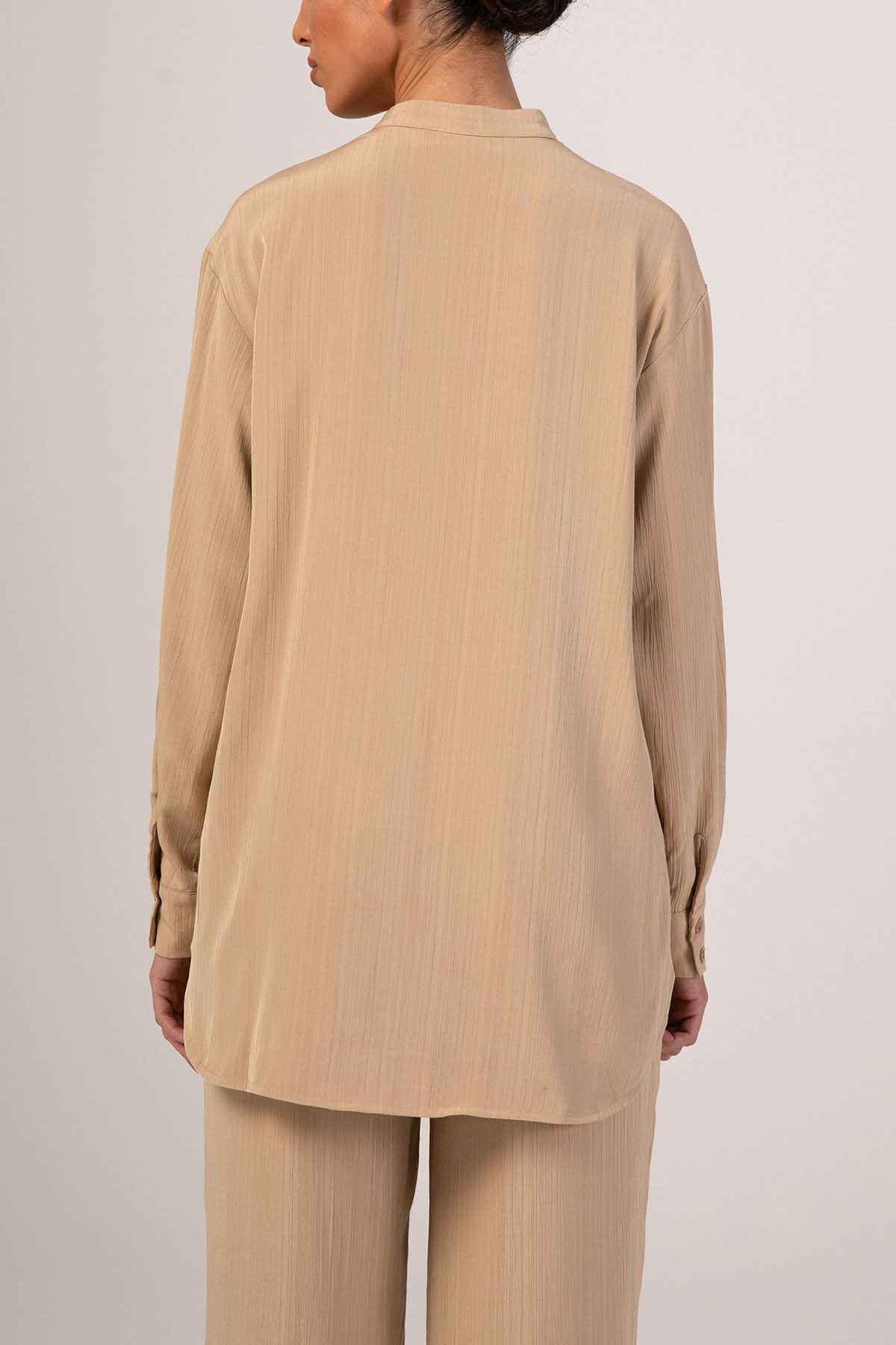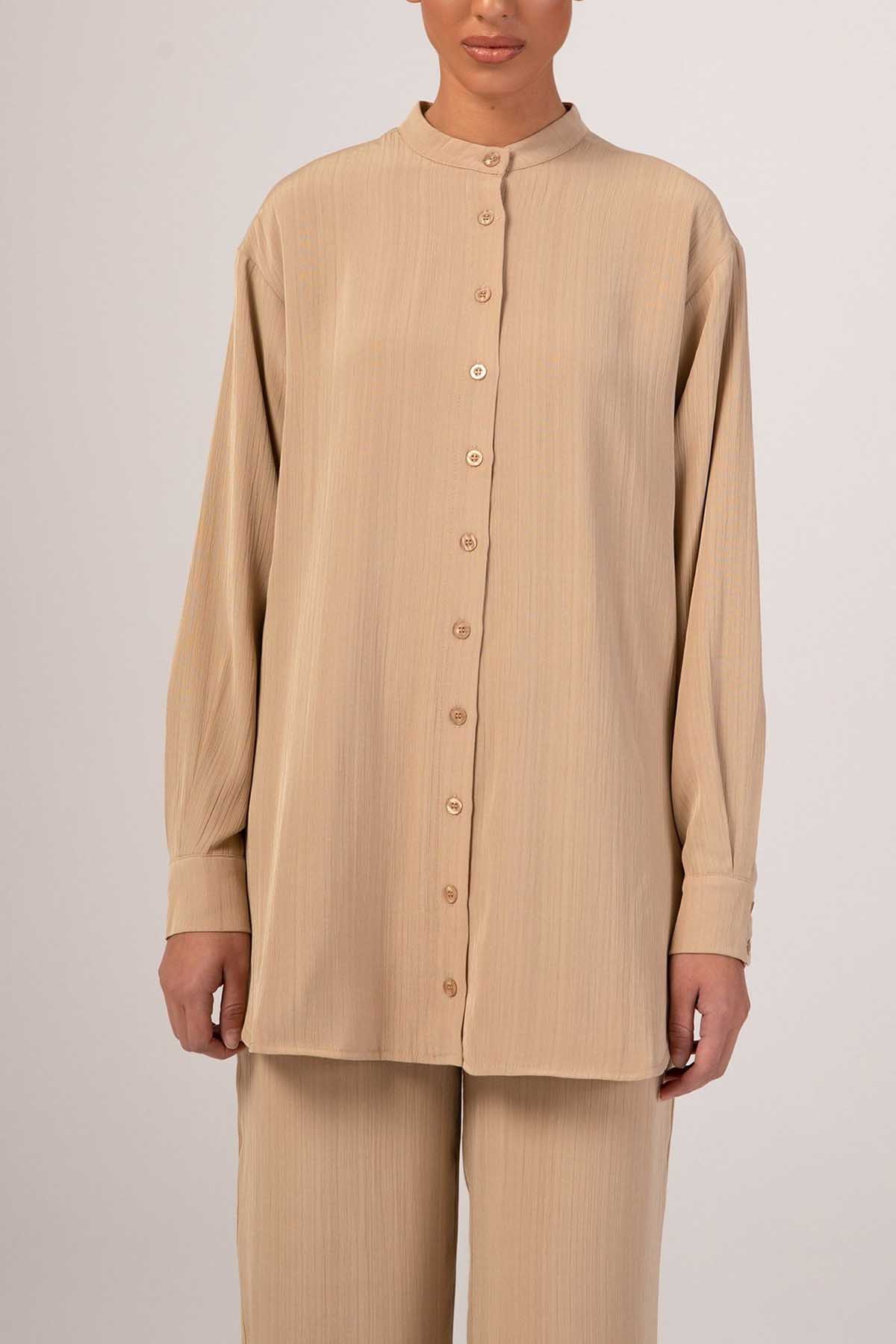 Nashwa Textured Rayon Button Down Tunic- Caffe