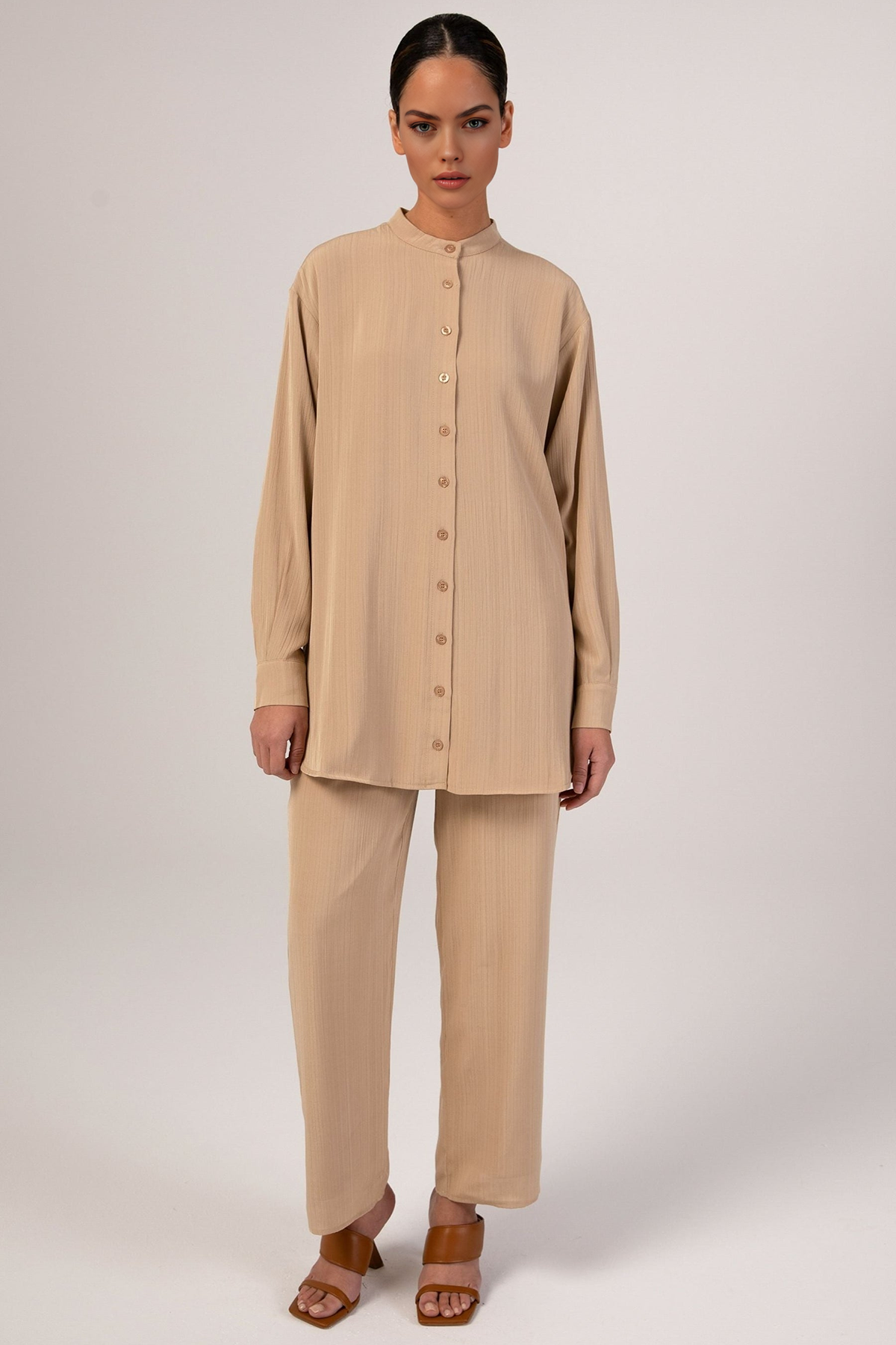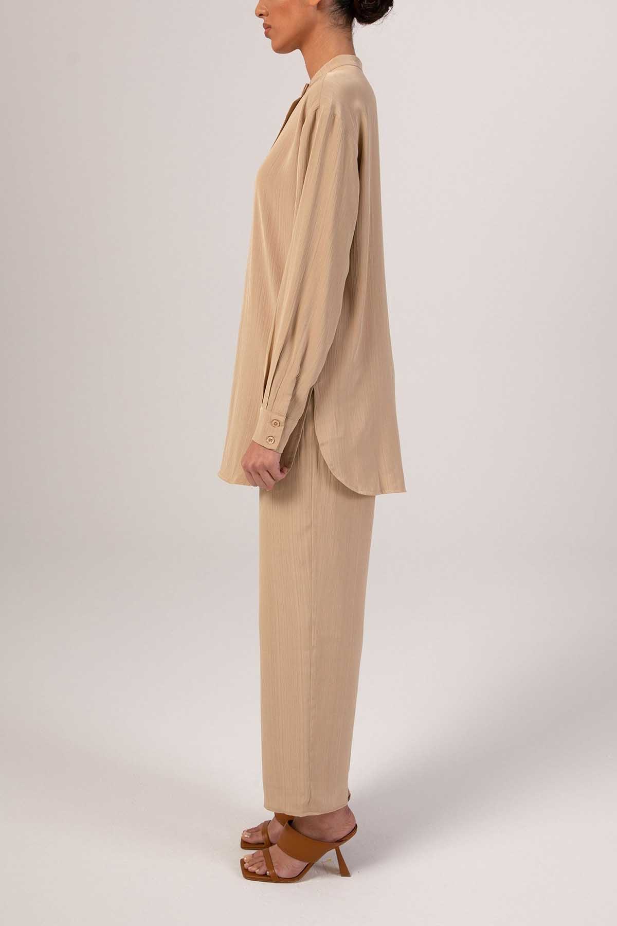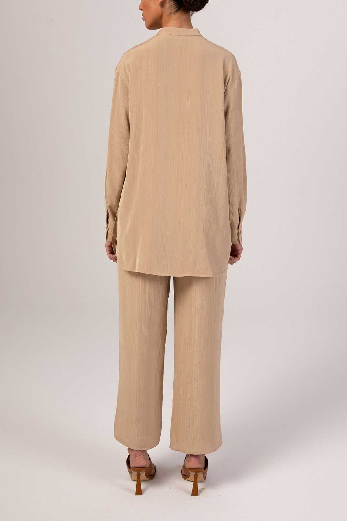 Nashwa Textured Rayon Button Down Tunic- Caffe