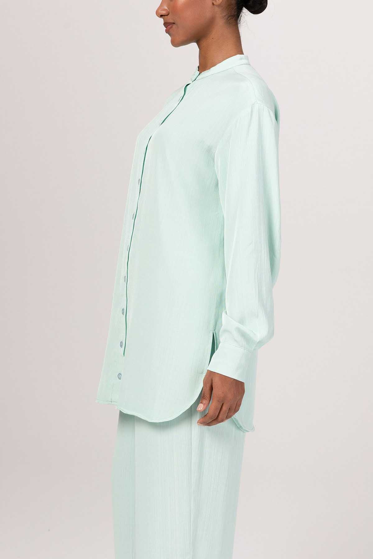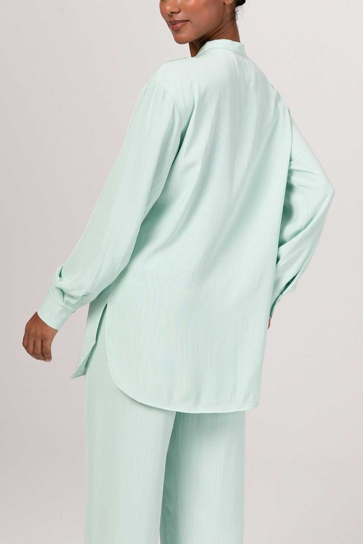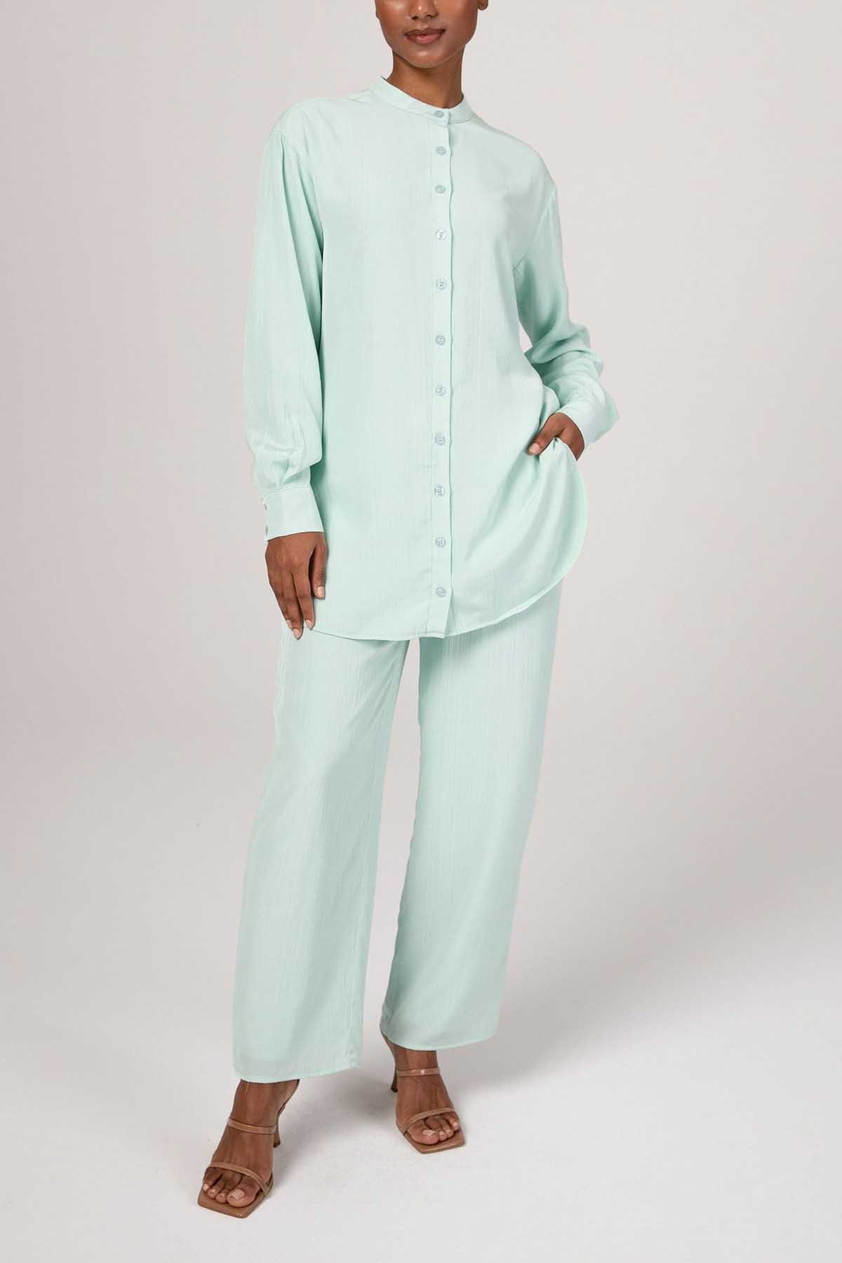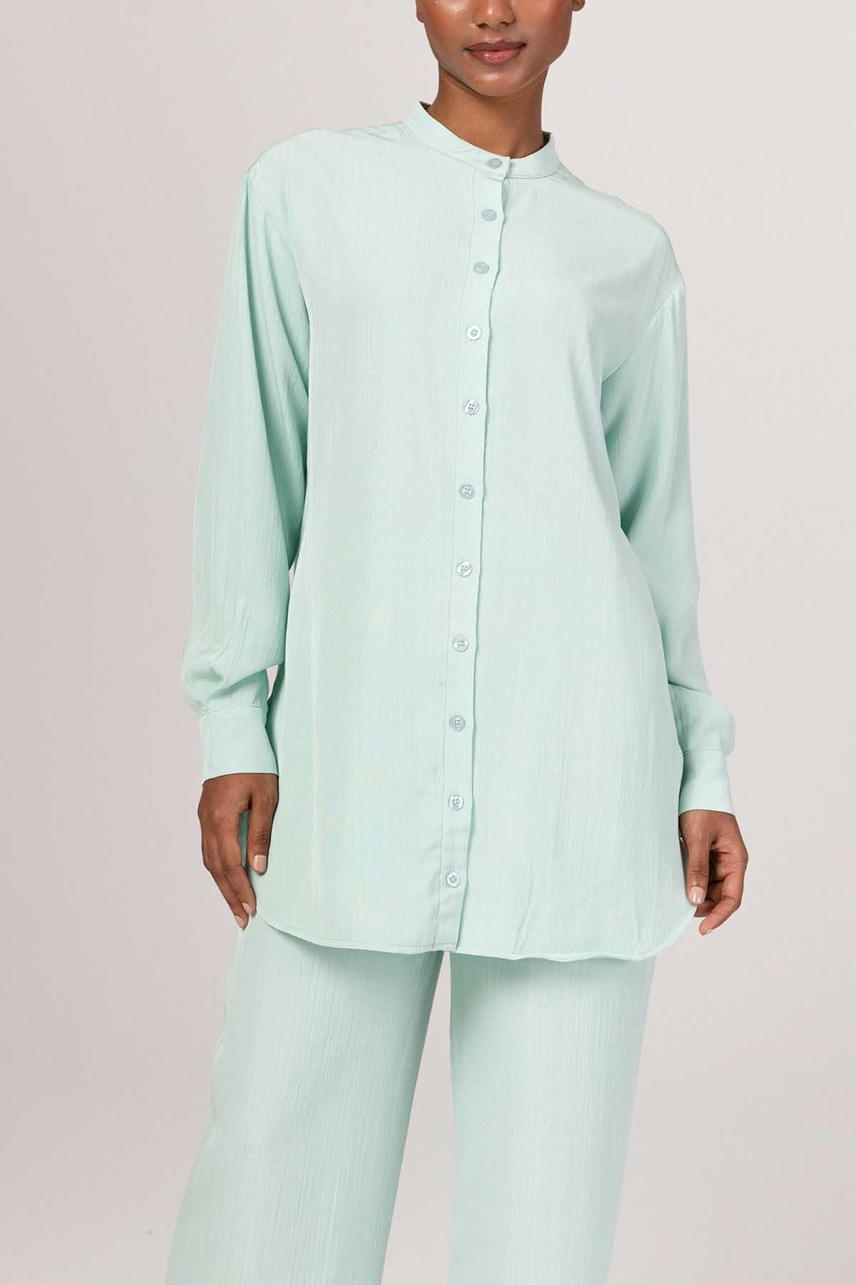 Nashwa Textured Rayon Button Down Tunic - Mint Green