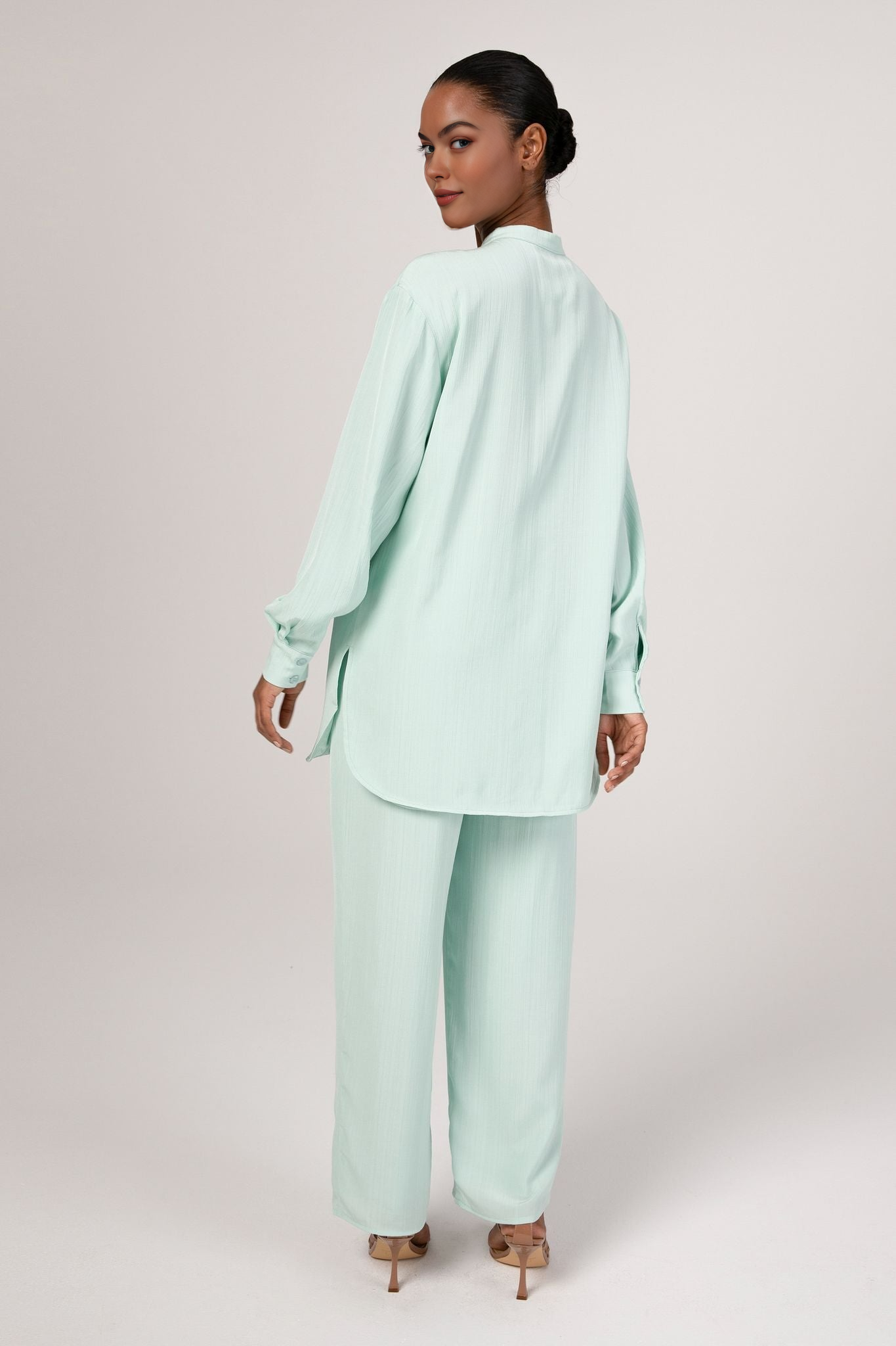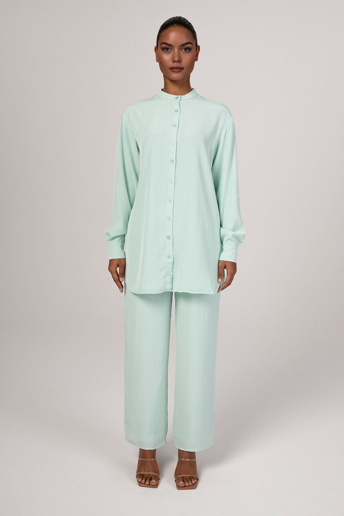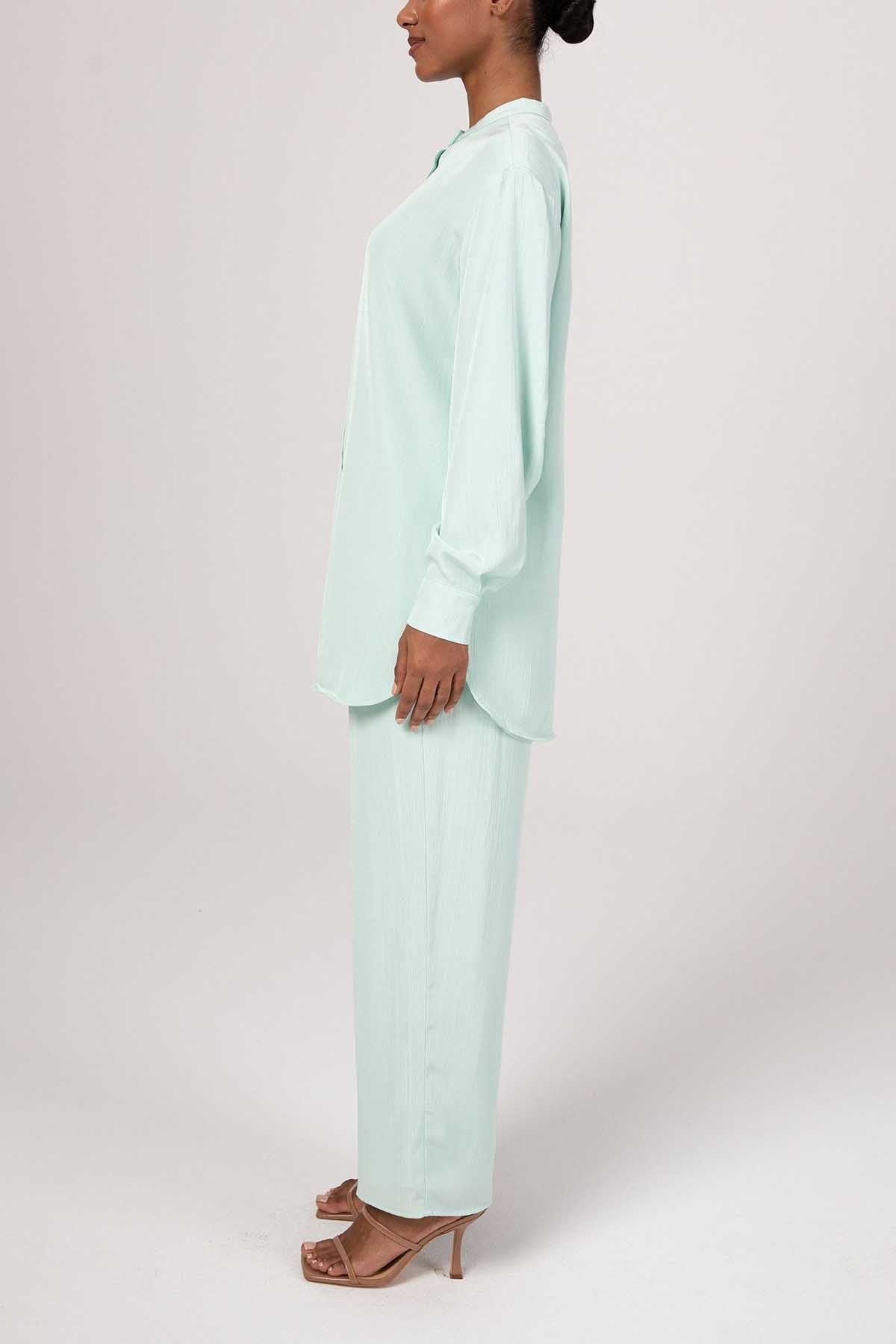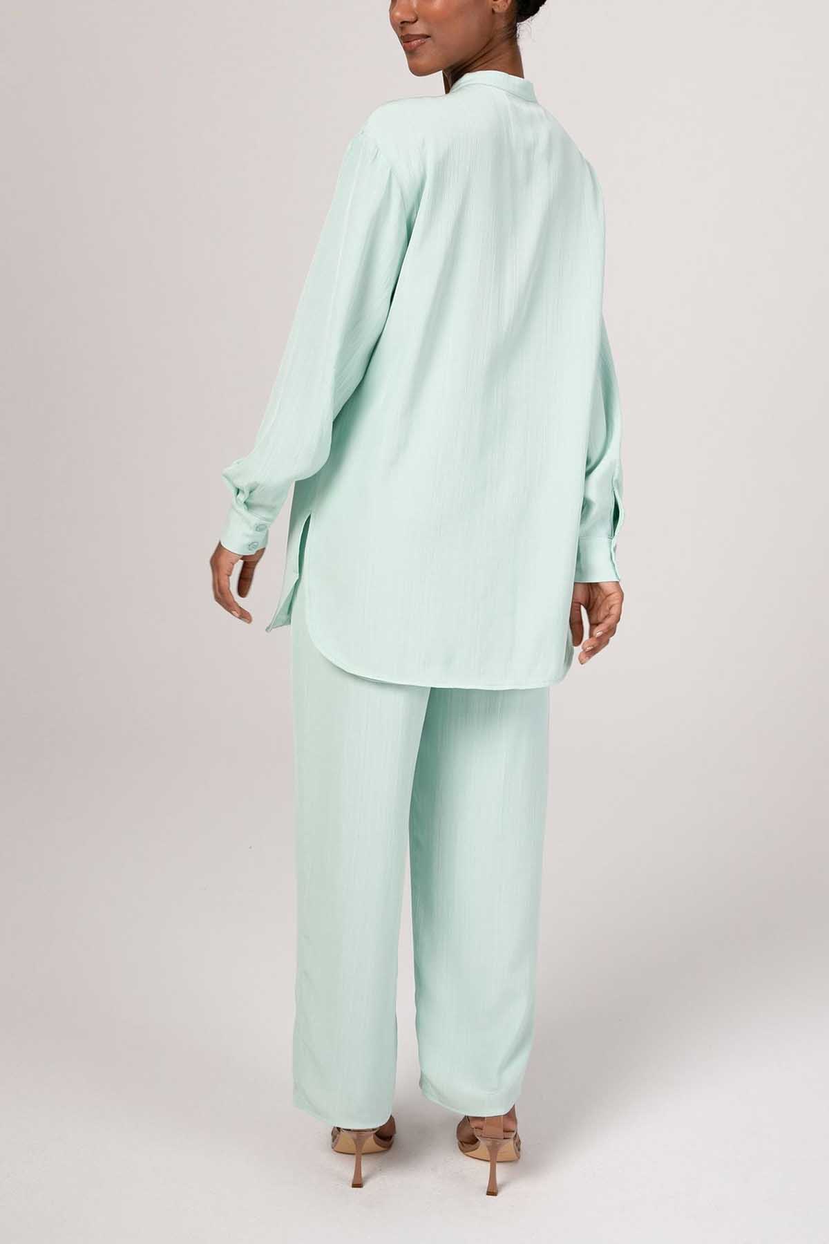 Nashwa Textured Rayon Button Down Tunic - Mint Green