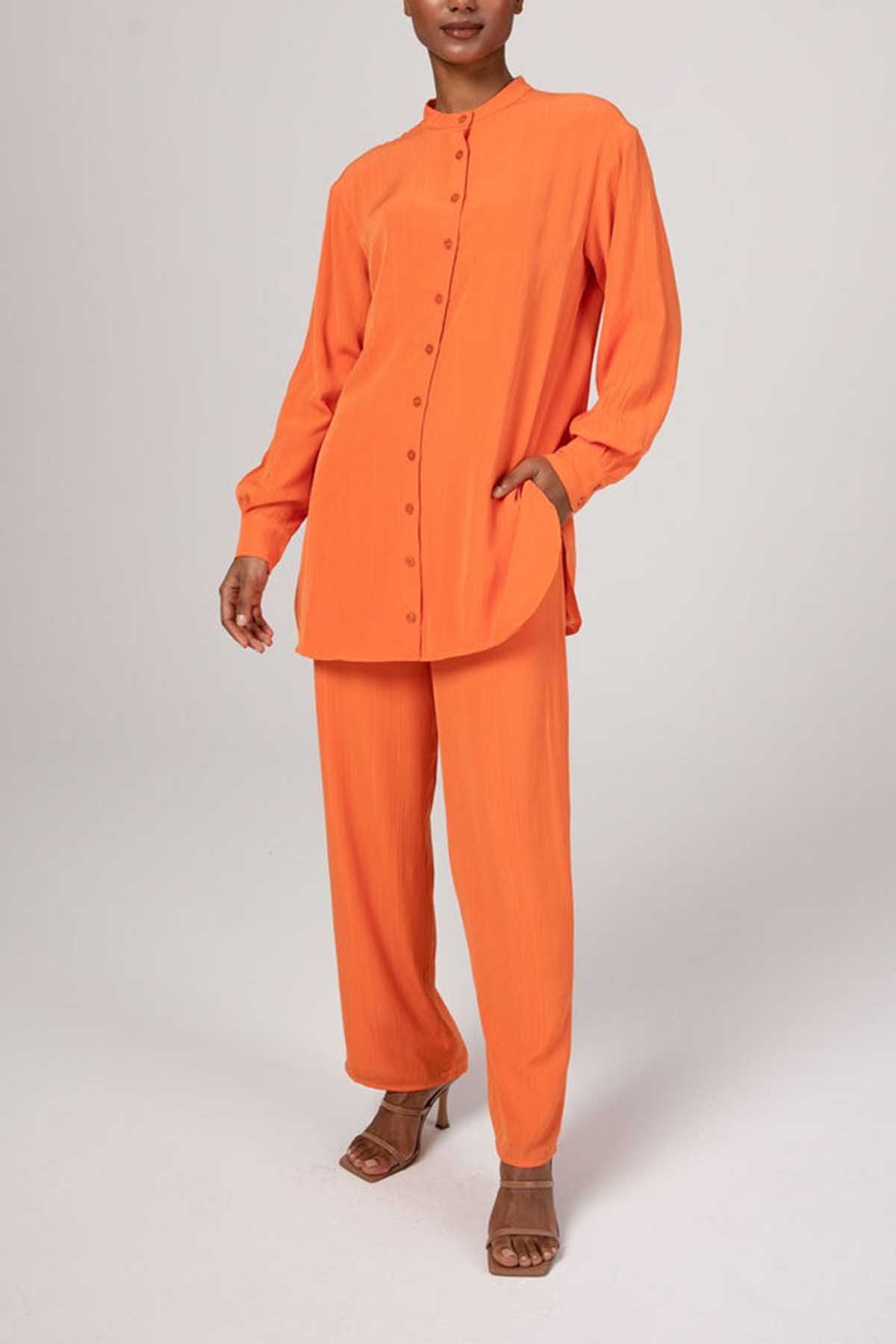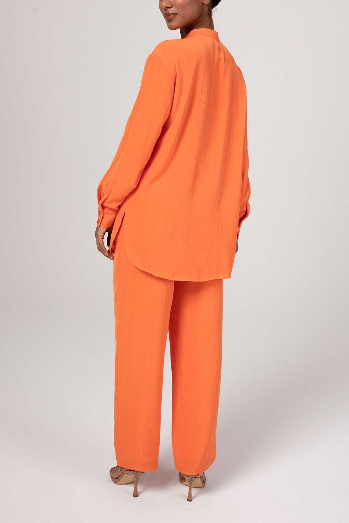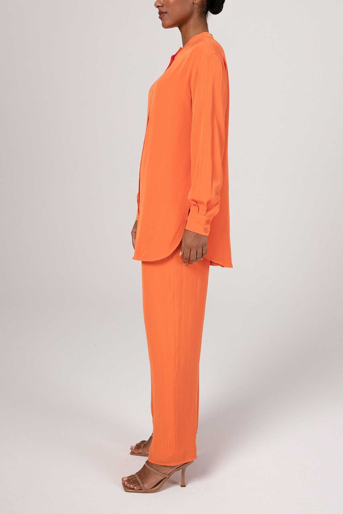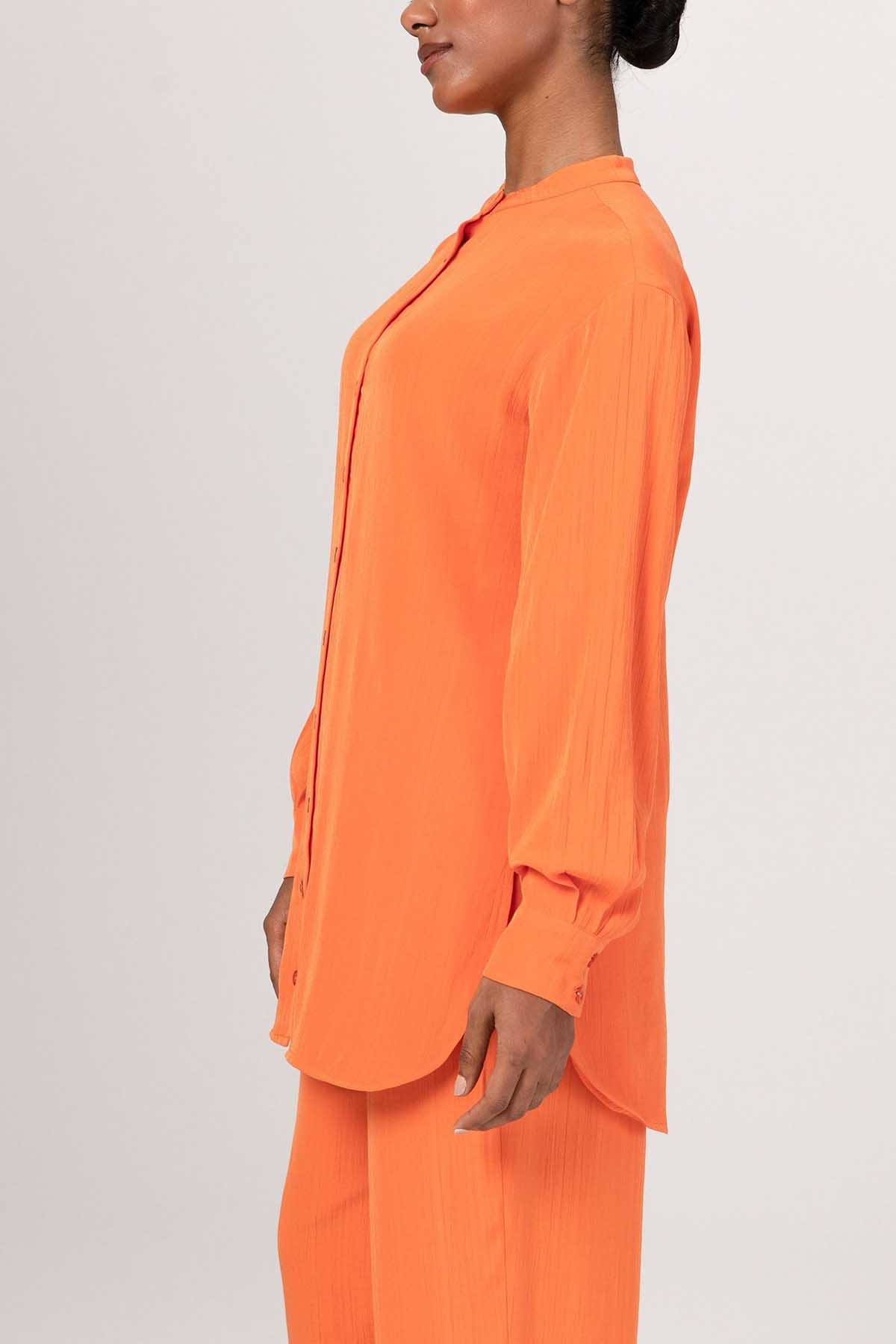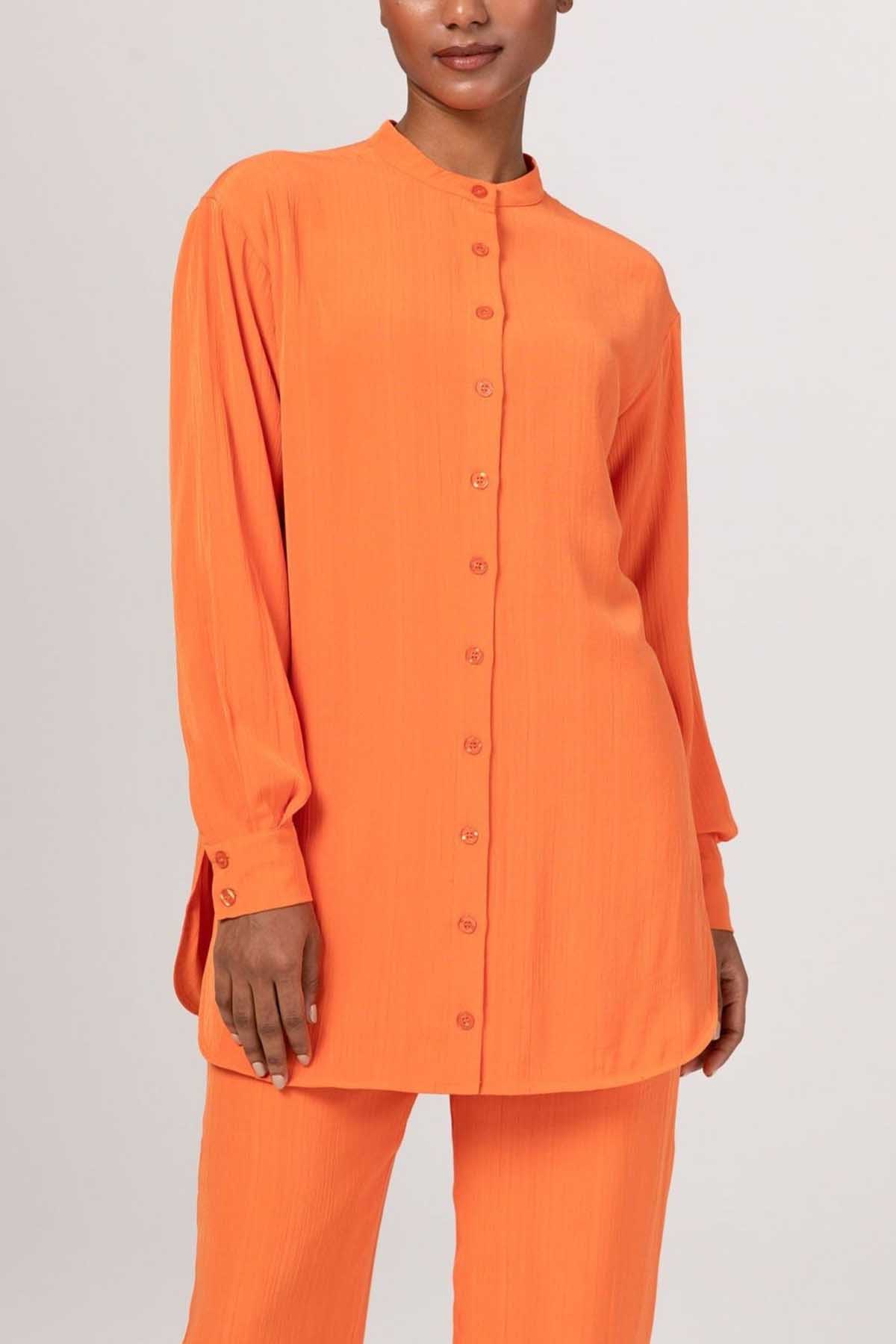 Nashwa Textured Rayon Button Down Tunic - Papaya