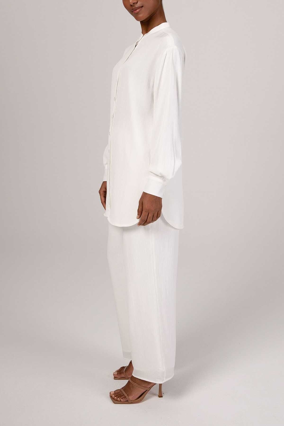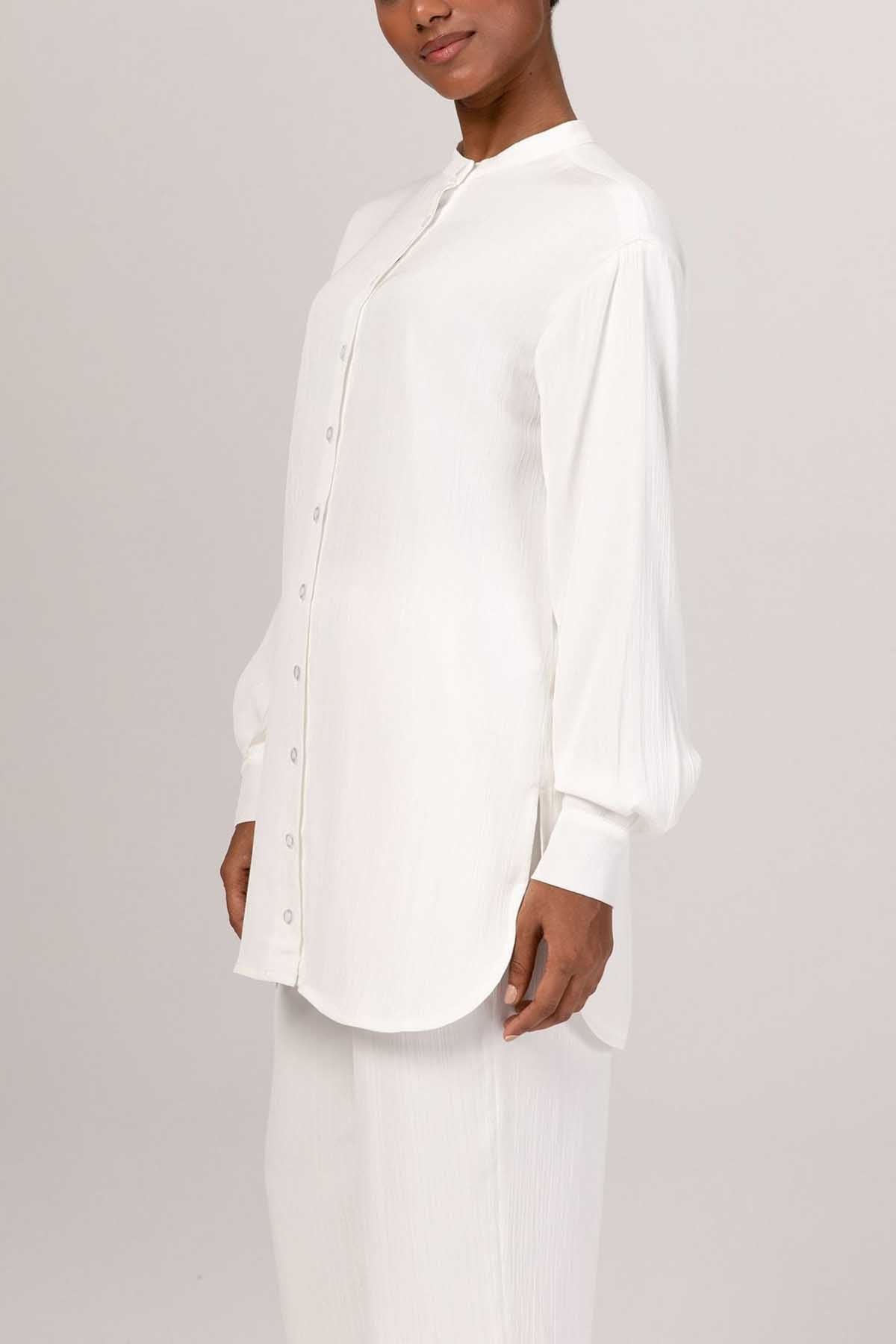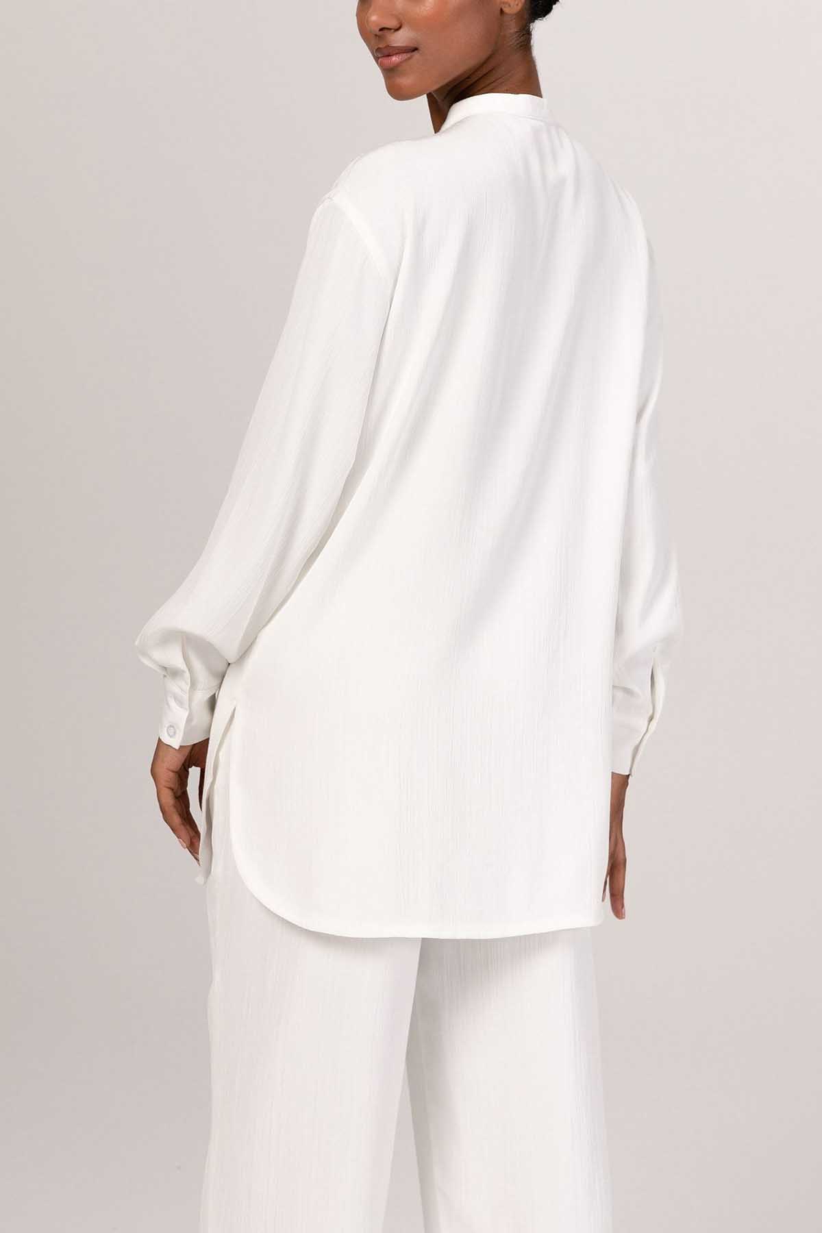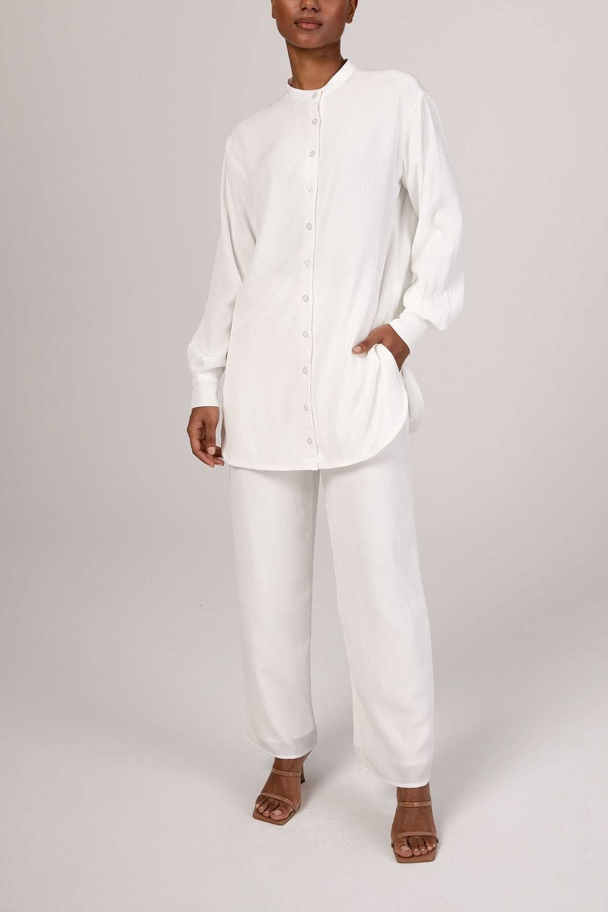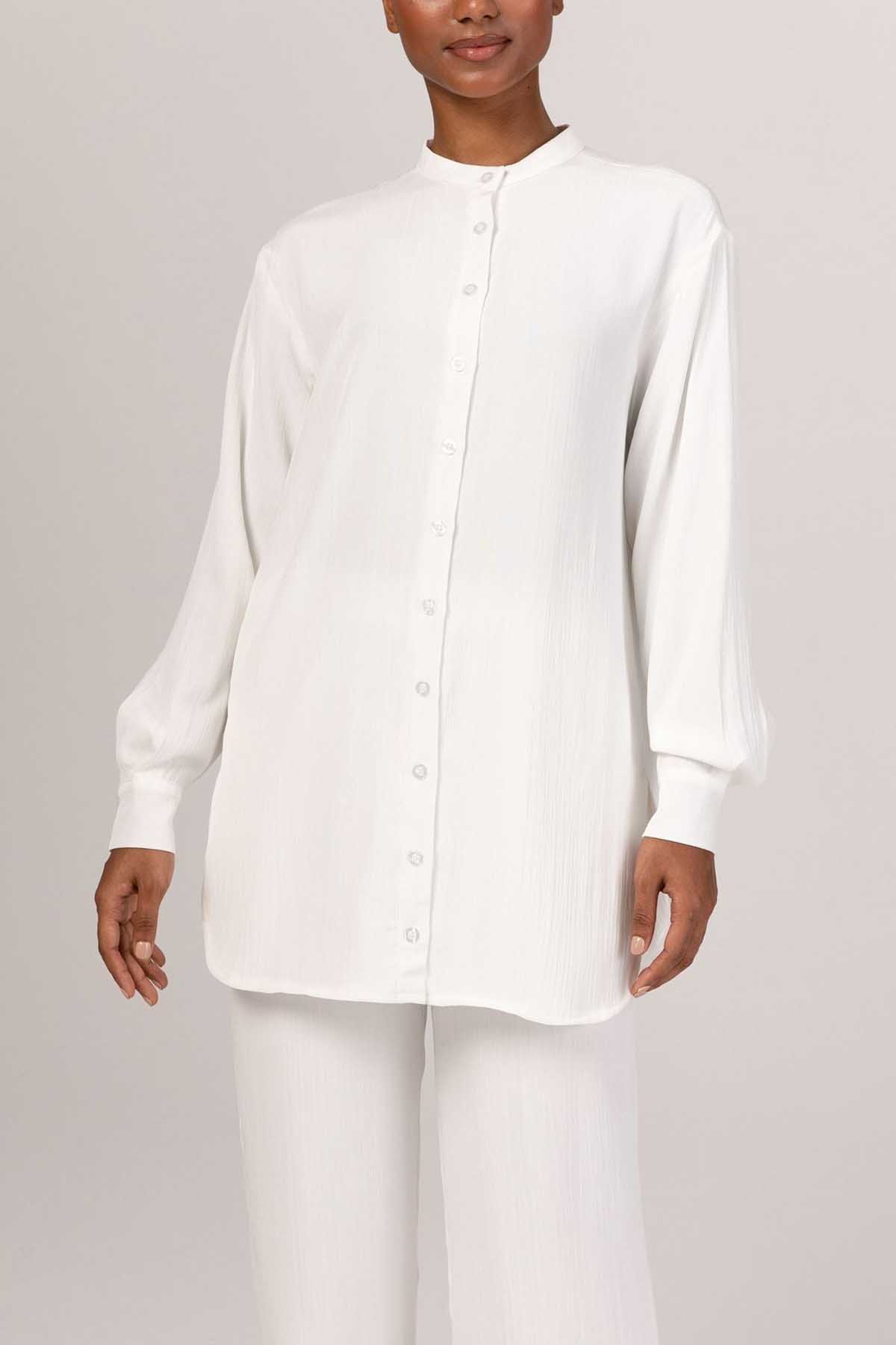 Nashwa Textured Rayon Button Down Tunic - White