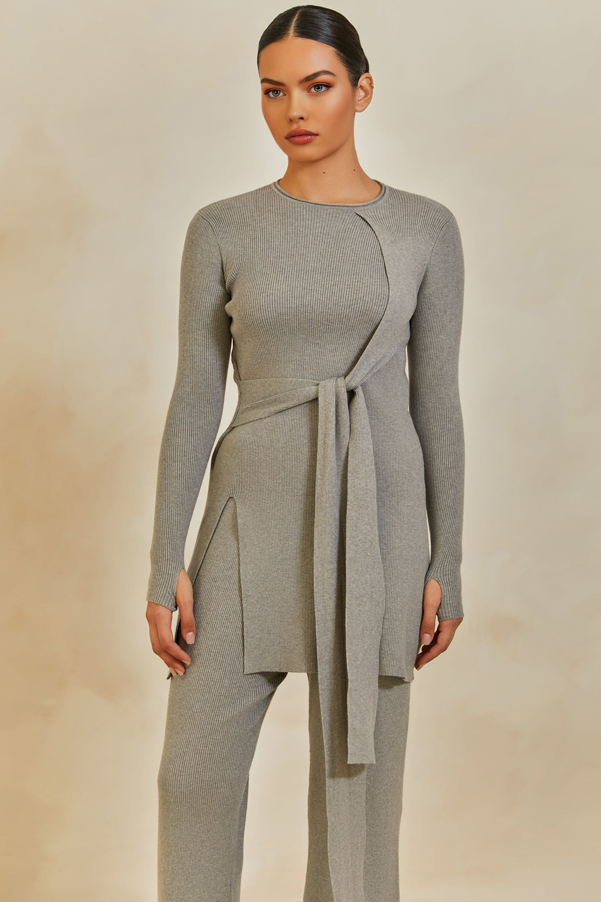 The Asymmetric sweater top is knitted from a viscose blend that’s notably soft and warm. The sleeves feature thumb holes for extra comfort and warmth and the hem is split to accentuate the relaxed silhouette. This top is a slim fit.