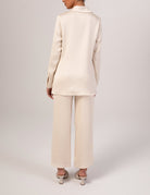 The Katia top features a silky slightly textured fabric that is smooth to touch and has some slight sheen. The fabric is double layered to increase opacity while keeping the same flow and fit.