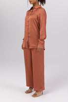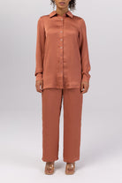 Katia Textured Button Down Top - Terracotta