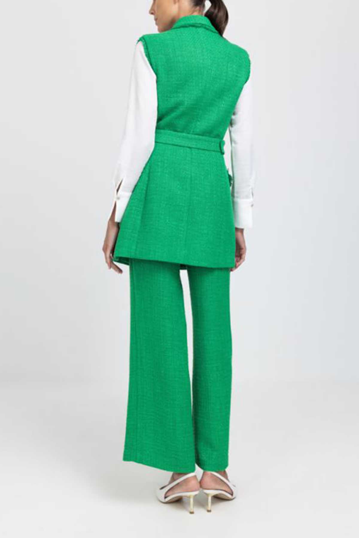 A classic Tweed look with modern touches, this double breasted Jacket will be a chic addition to your Collection. Style: Jacket Neckline: Notched Collar Sleeve Length: Sleeveless Occasion: Casual Design: Double Breasted, Solid, Flap Pockets, Attached Lining, Belted, Tweed Closure: Front Opening With Buttons Length: Above Knee length Model Measurements: Height: 177cm, Waist: 60cm Model is Wearing: Small