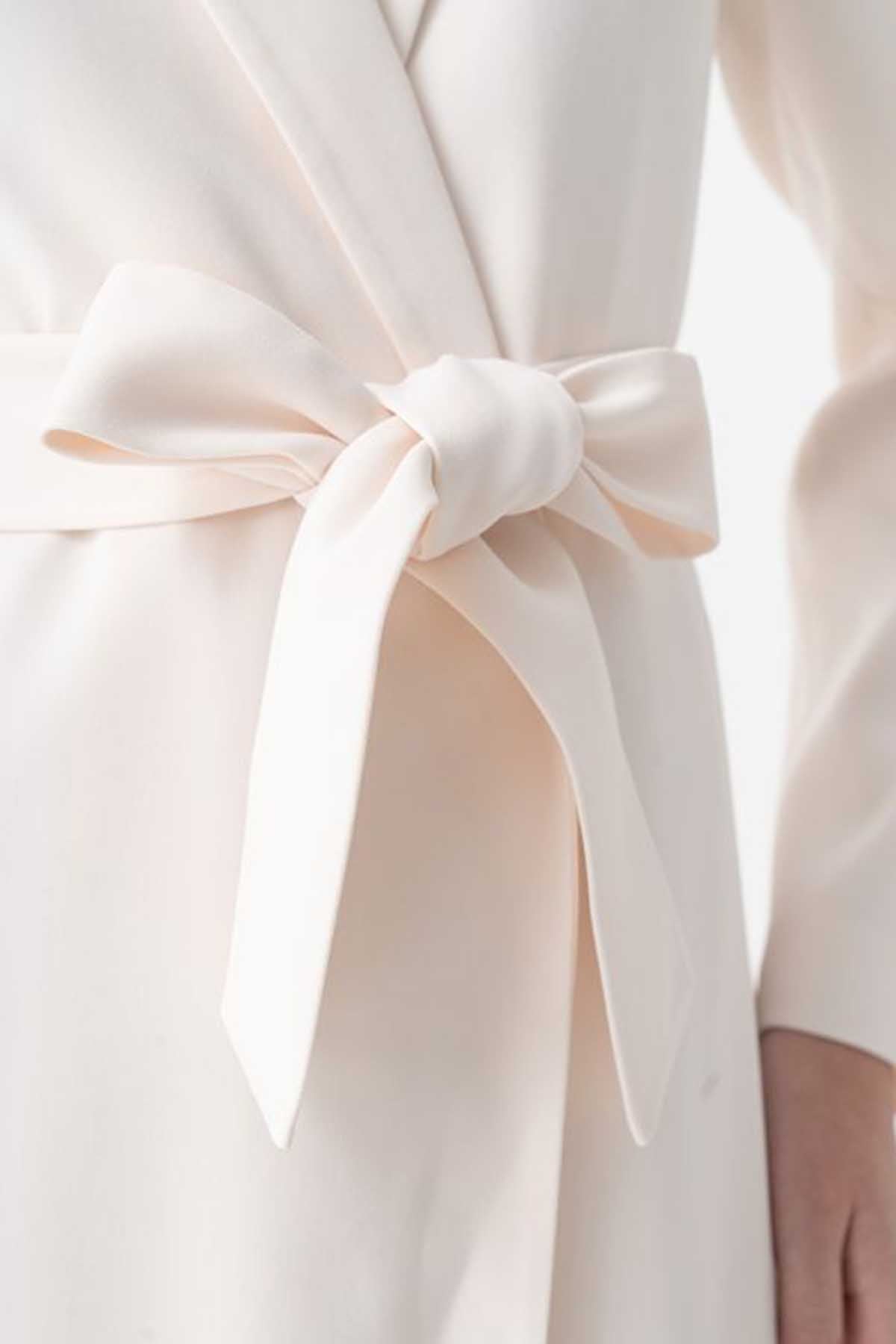 Let your stylish side be on display at your next event with this Maxi Jacket Style: Jacket Neckline: Notched Collar Sleeve Length: Long Sleeves Occasion: Casual, Ramadan, Evening, Party Design: Solid, Double Breasted, Self Fabric Belt, Soft Attached Lining Closure: Front Button Length: Maxi