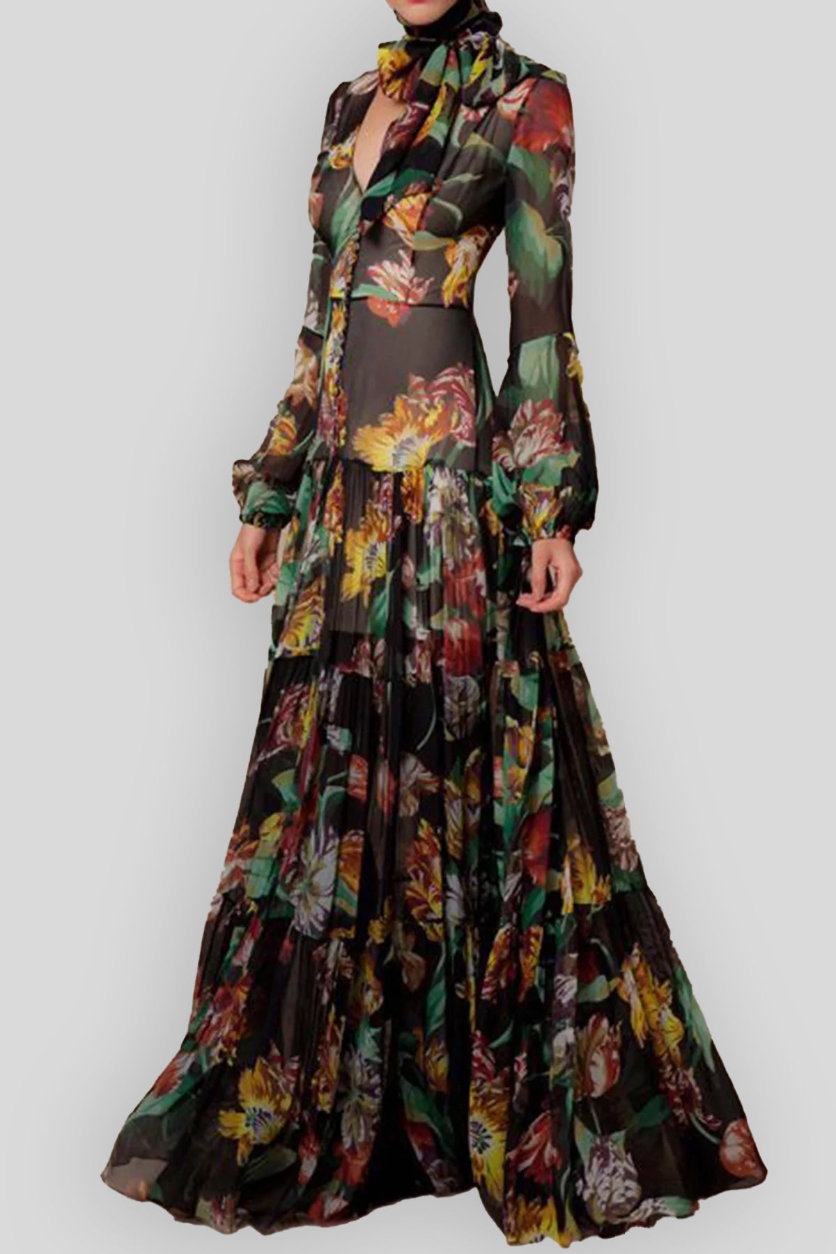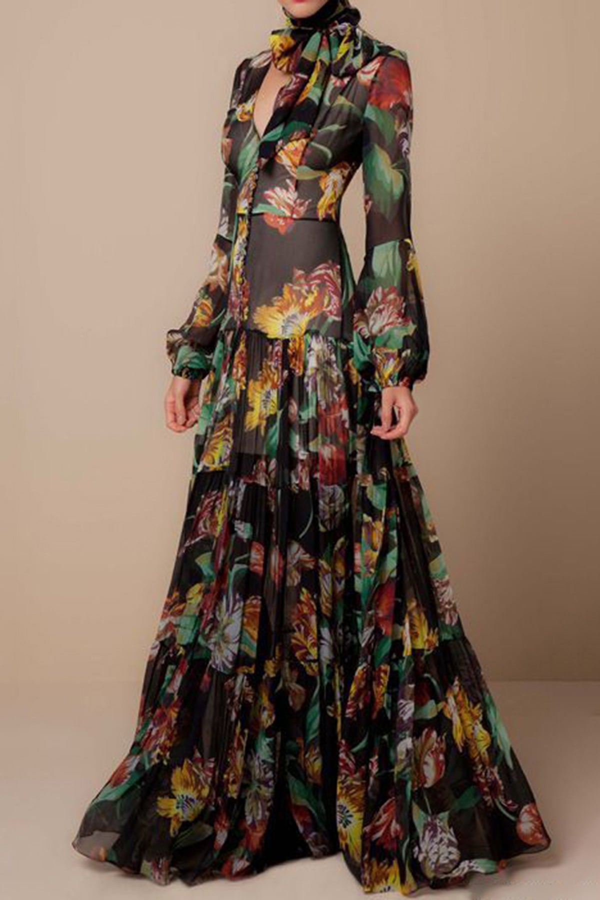 Dalia Green Floral Tiered Maxi Dress