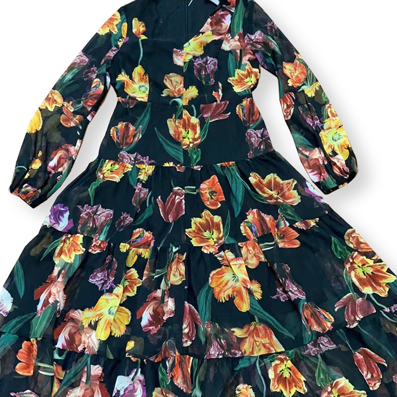 Color Oil Painting Two Layer Hem Dress