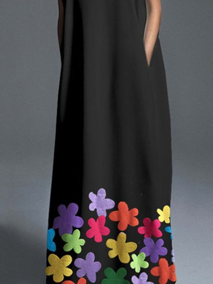 Fashion Floral Crew Neck Sleeveless Maxi Tank Dress
