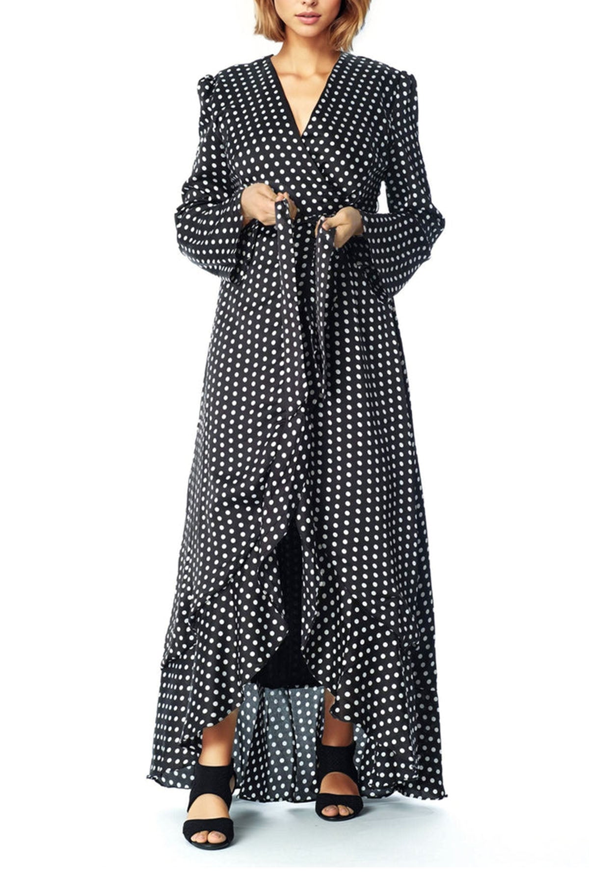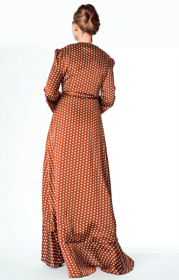 Satin Polka dots wrap Kimono dress