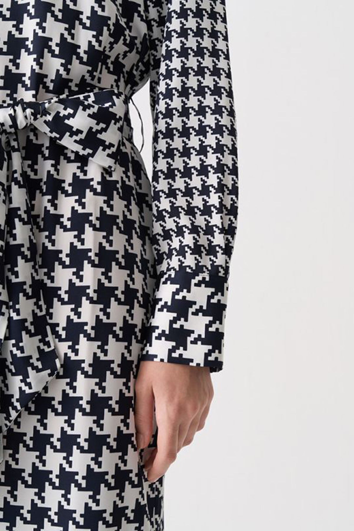 Feel Comfortable and Stylish with this Houndstooth- Patterned Shirt Dress. It features Long Sleeves and Shirt Collar. Style: Shirt Dress Neckline: Shirt Collar Sleeve Length: Long Sleeves Occasion: Casual, Evening Design: Houndstooth-Patterned, Self Fabric Belt, Pocket, Inverted Pleat At Back Closure: Front Buttons Length: Maxi Material: 100% Polyester Model Measurements: Height: 175cm, Waist: 59cm Model is Wearing: Small