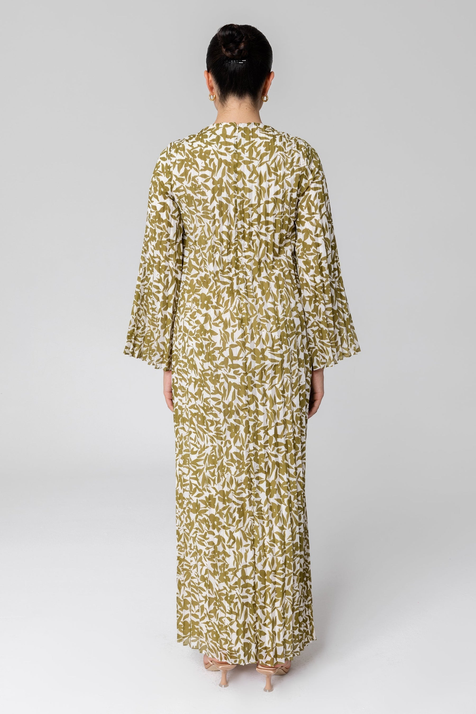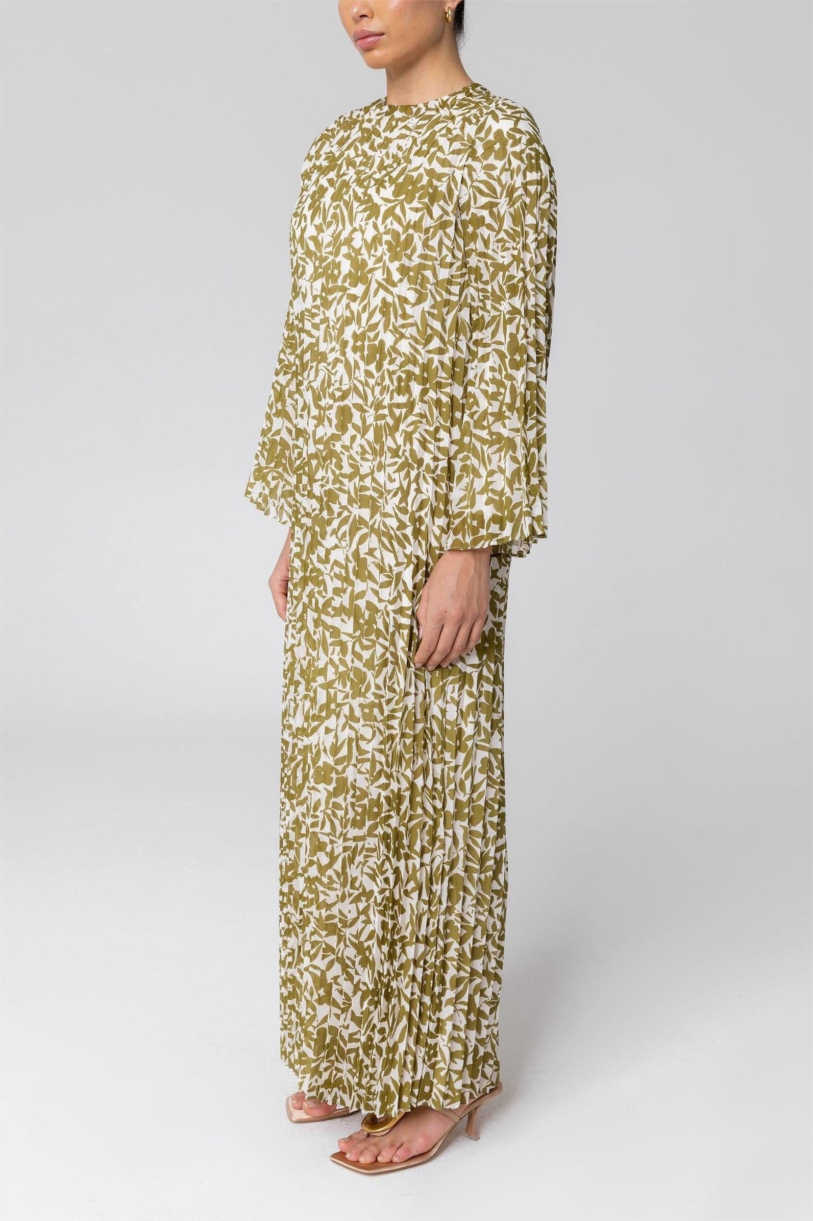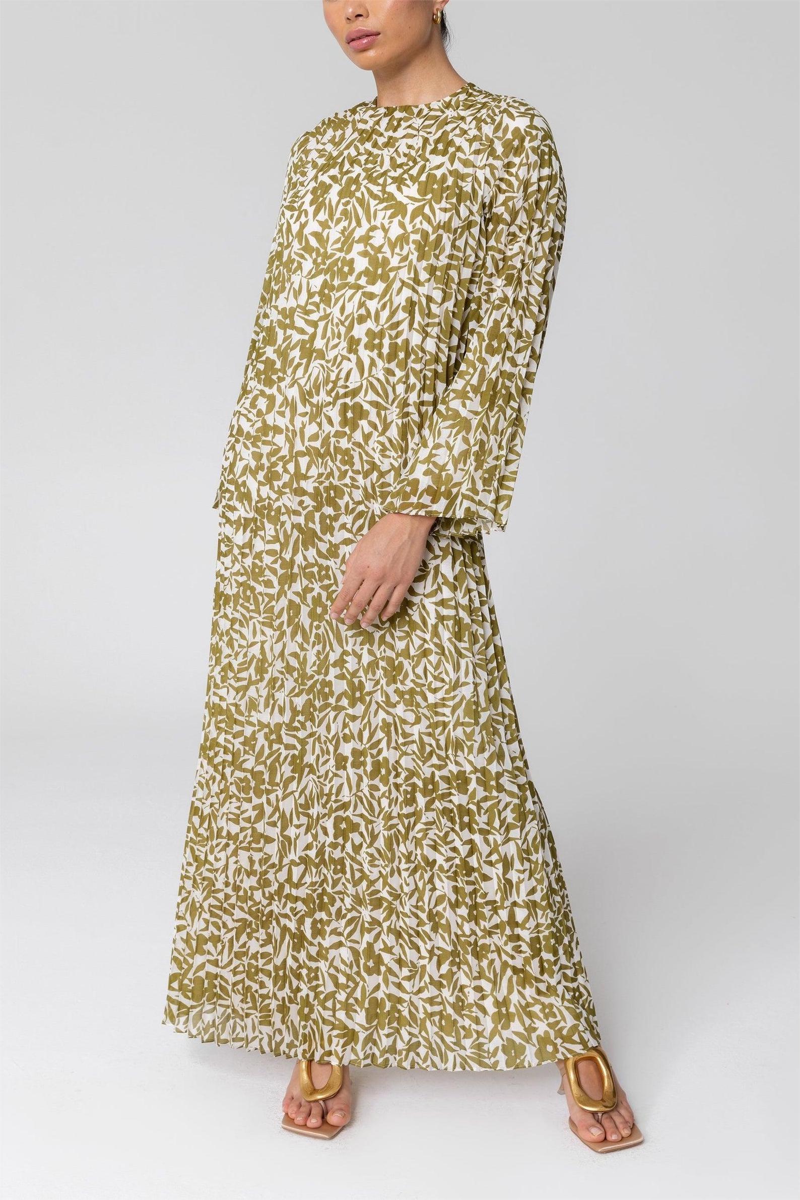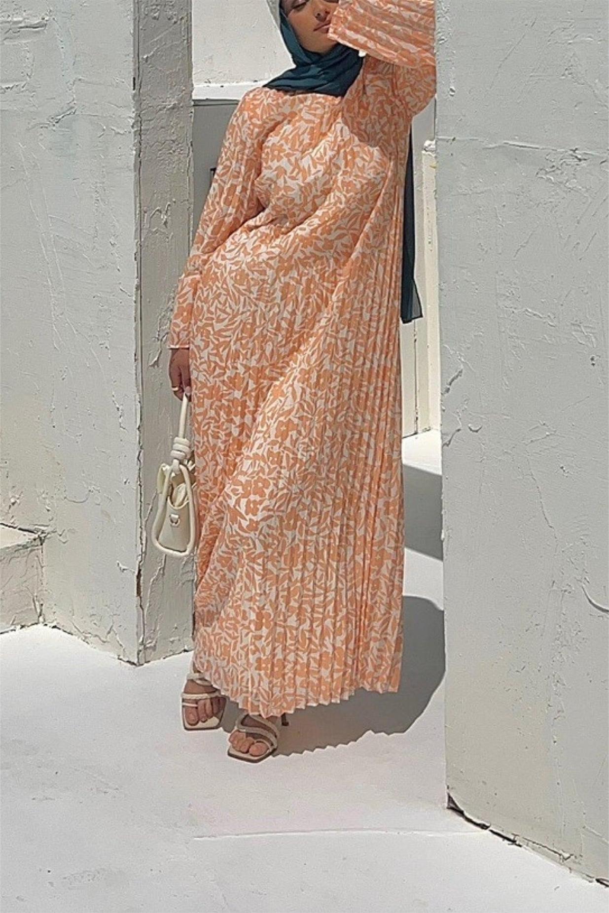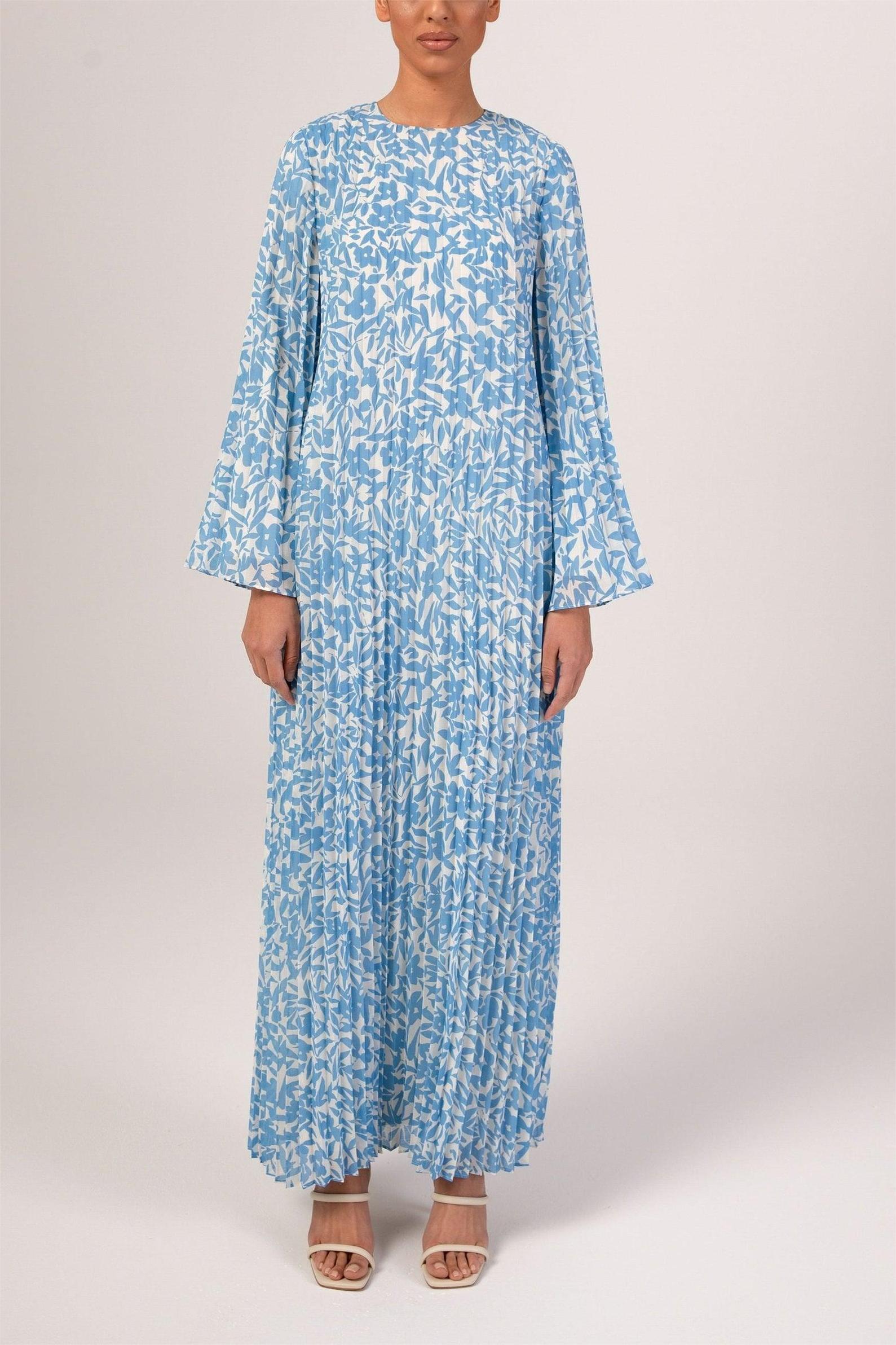 The Pleated Shift dress features a delicate pleated chiffon fabric, with a modest casual-fit bodice and feminine floral pattern for the perfect summer dress.