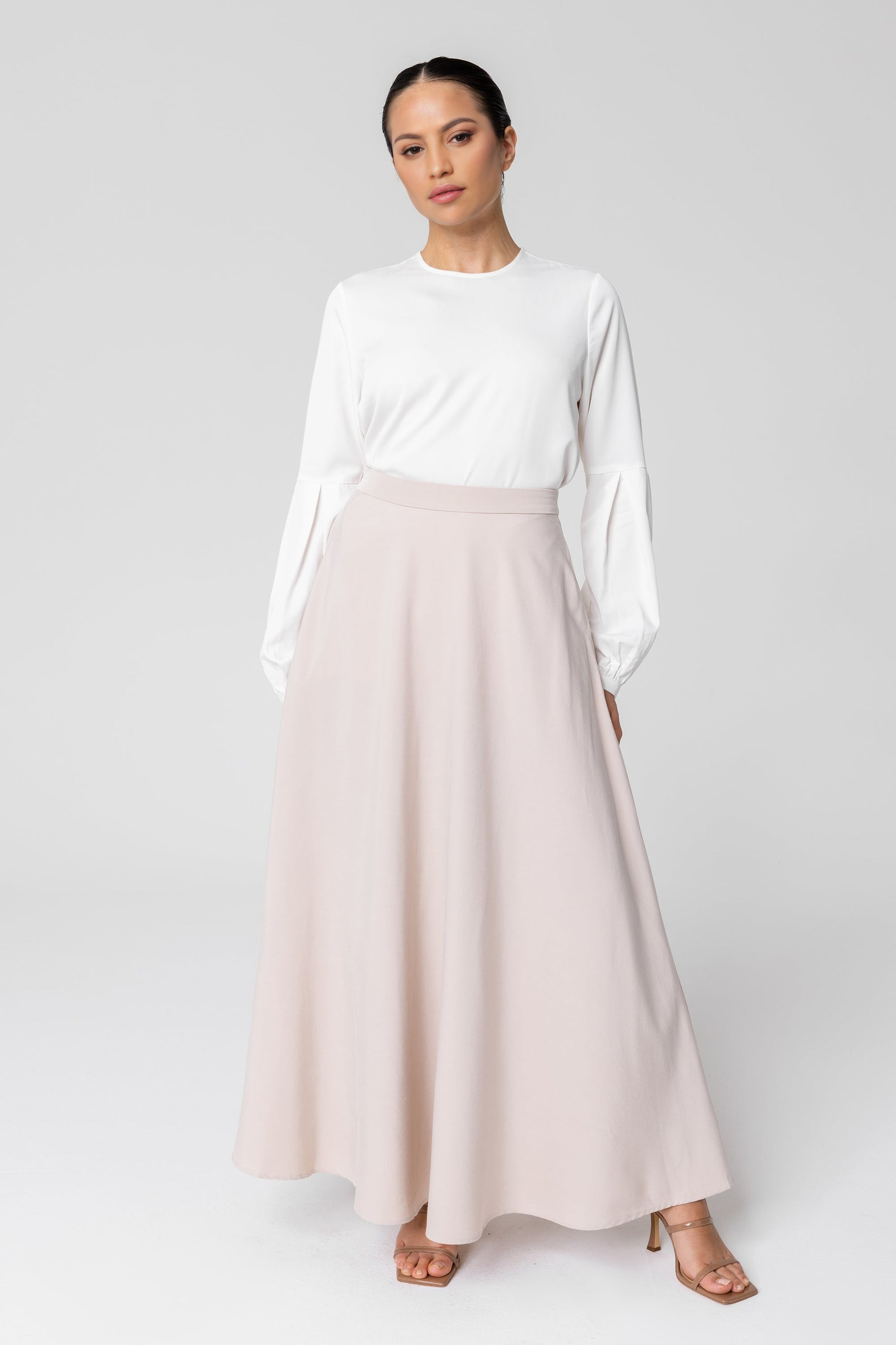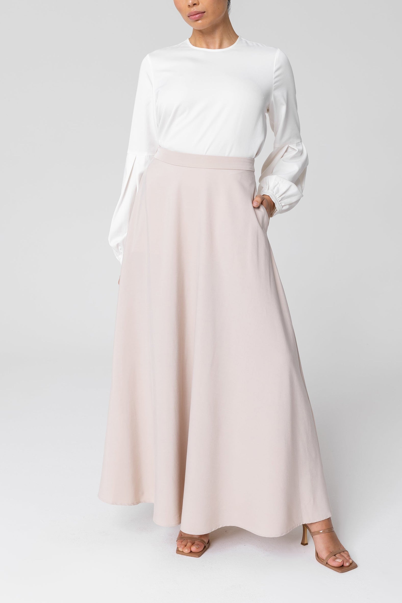 This a-line skirt features an ultra soft and comfortable cotton blend fabric, mid to high rise, and convenient pockets perfect for every day.