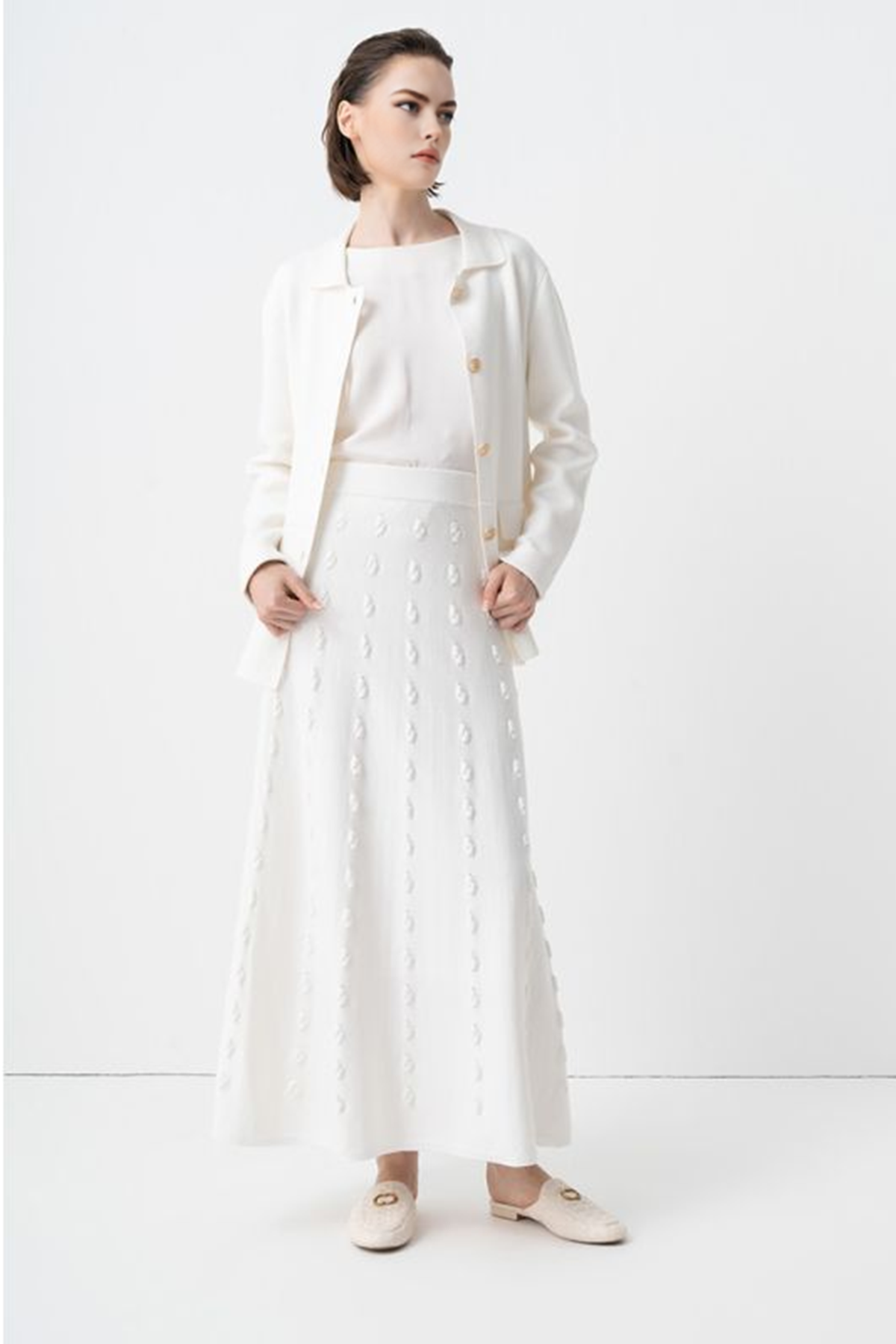 Update your wardrobe with this stylish knitted Skirt that will surely keep you on the fashion radar. Style: Skirt Occasion: Casual, Evening, Party Design: Single Tone, Textured, knitted, Attached Lining, Flared Closure: Elastic Waistband Length: Mid-Calf Length