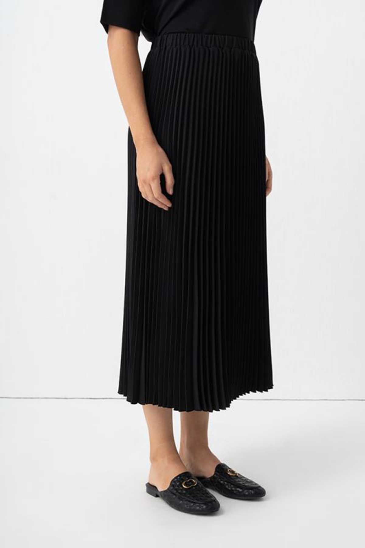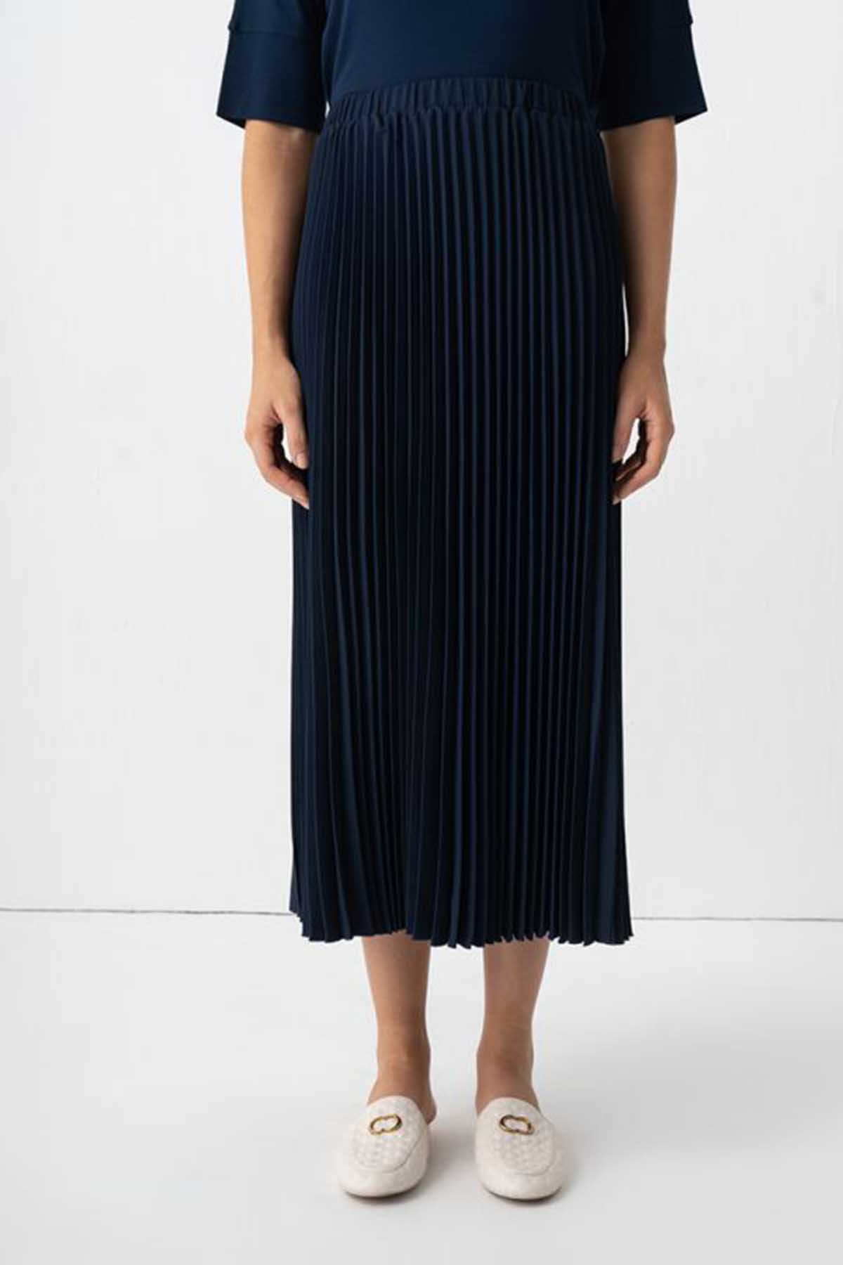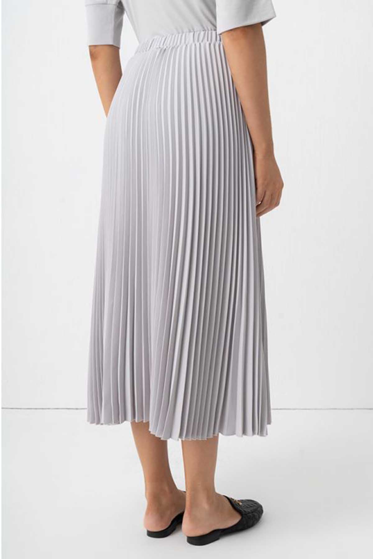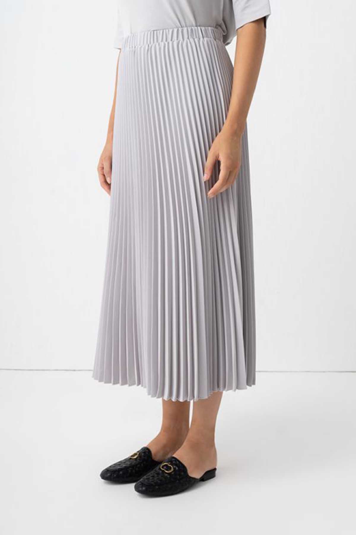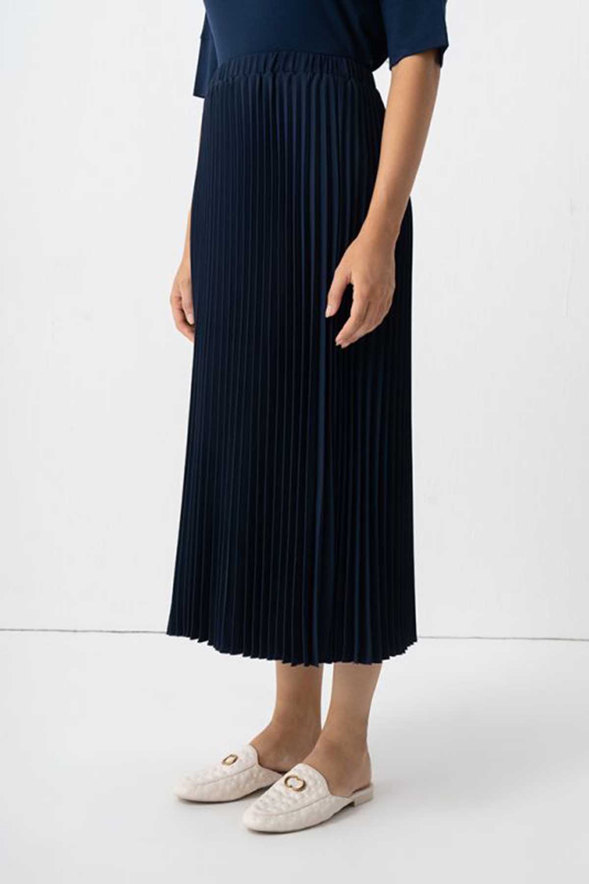 Lend yourself a classy look this season with this Skirt. It will keep you comfortable and relaxed throughout the day. Style: Skirt Occasion: Casual, Evening, Party Design: Solid, Pleated Closure: Elastic Waistband Length: Mid-Calf Length Material: 95% Polyester, 5% Elastane
