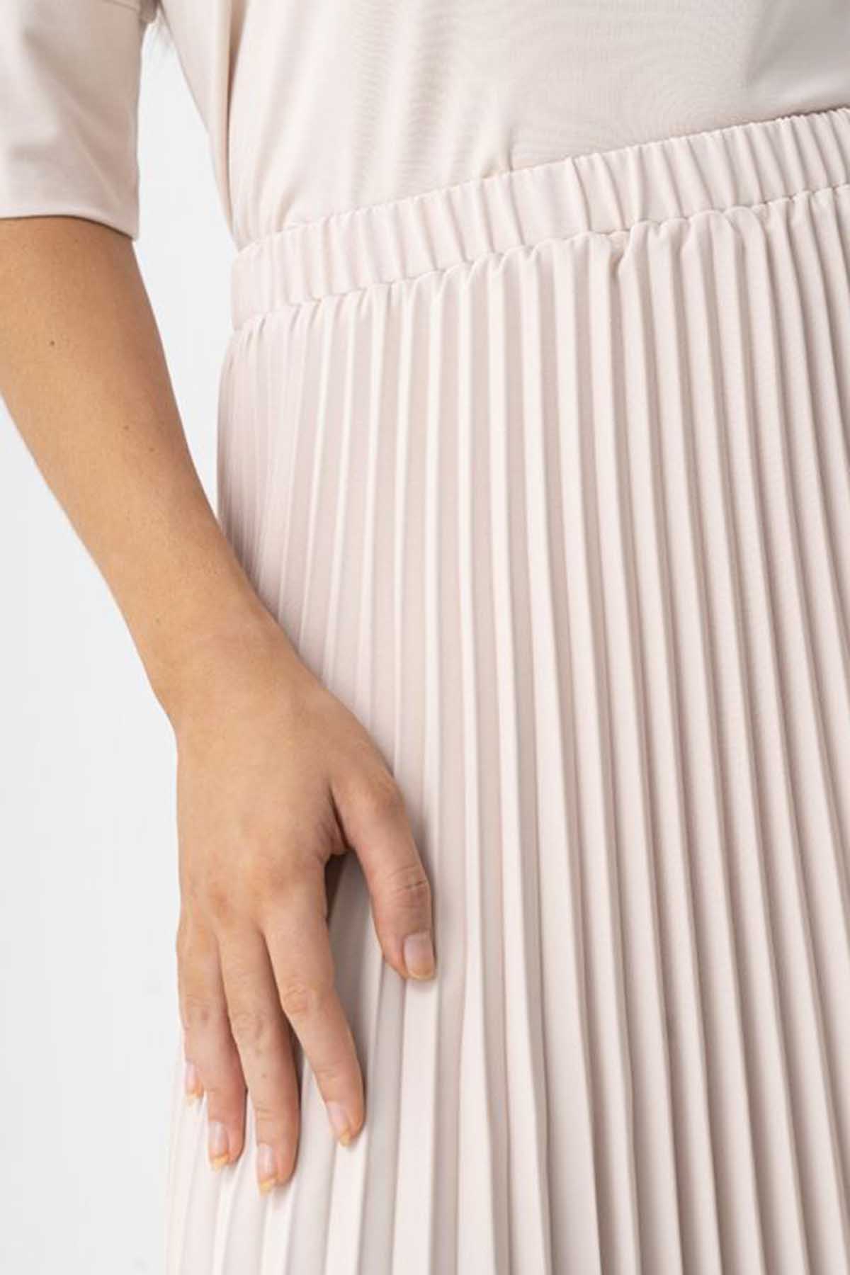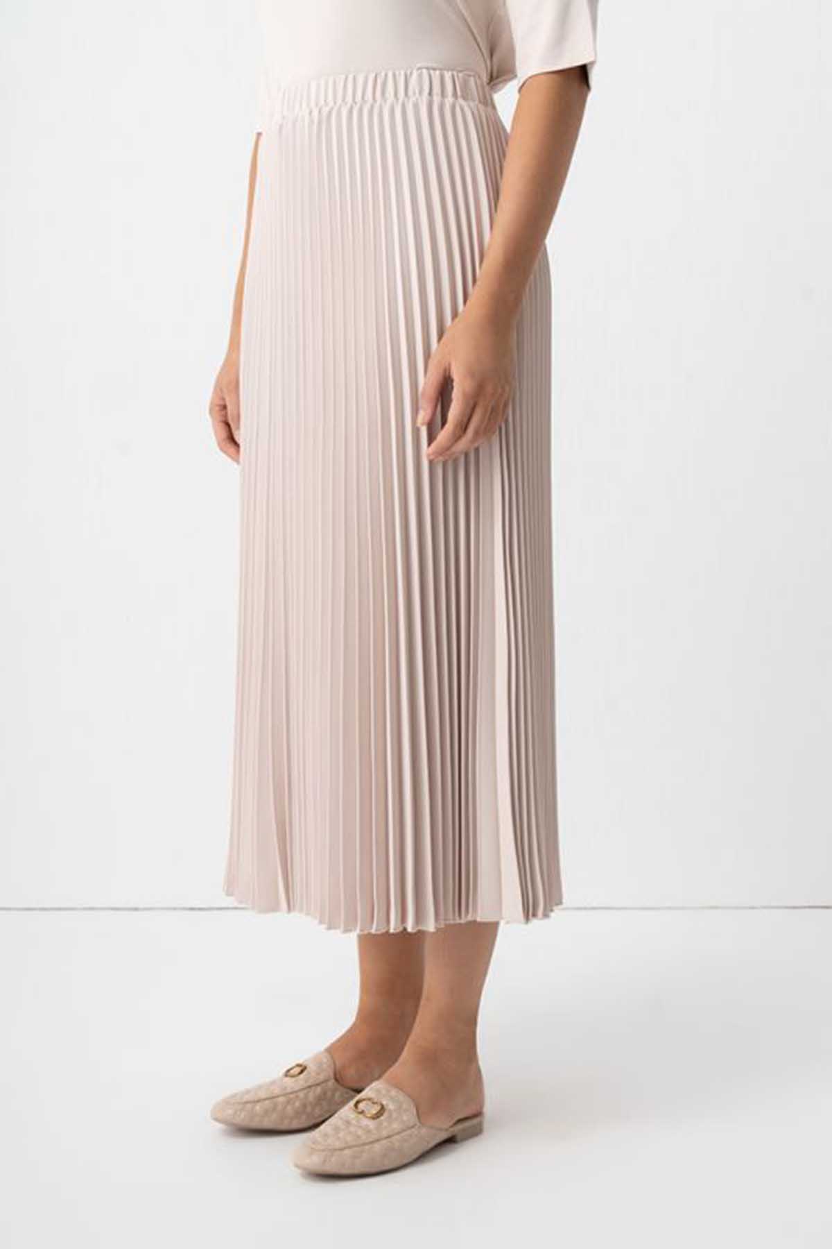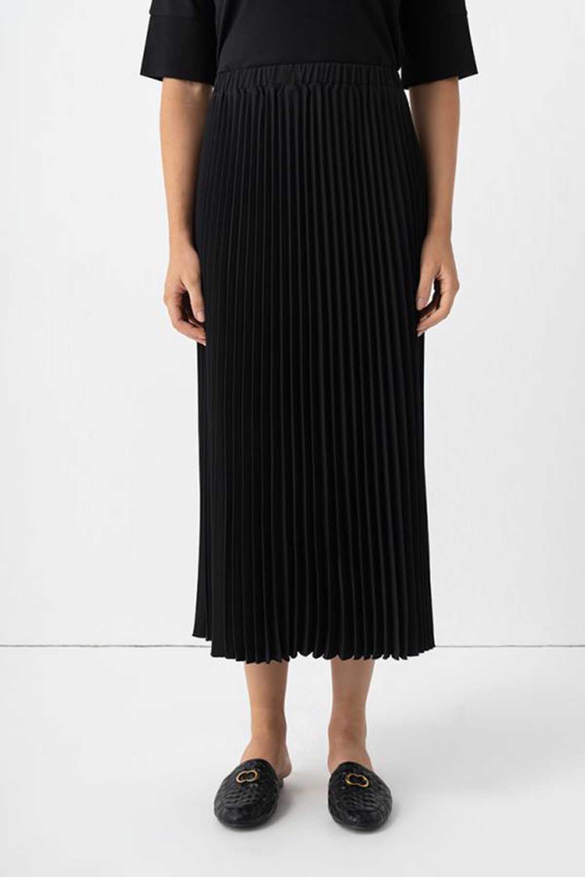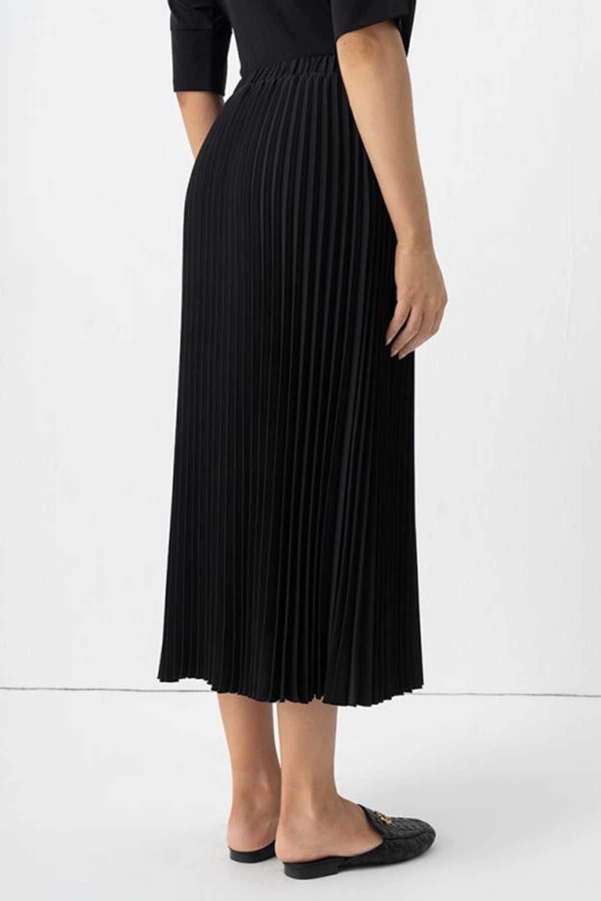 Lend yourself a classy look this season with this Skirt. It will keep you comfortable and relaxed throughout the day. Style: Skirt Occasion: Casual, Evening, Party Design: Solid, Pleated Closure: Elastic Waistband Length: Mid-Calf Length Material: 95% Polyester, 5% Elastane